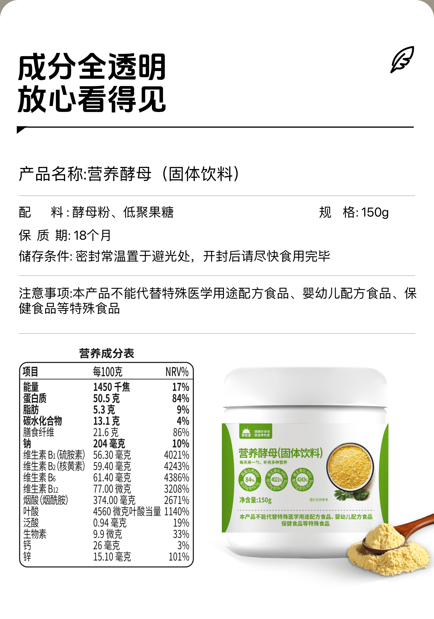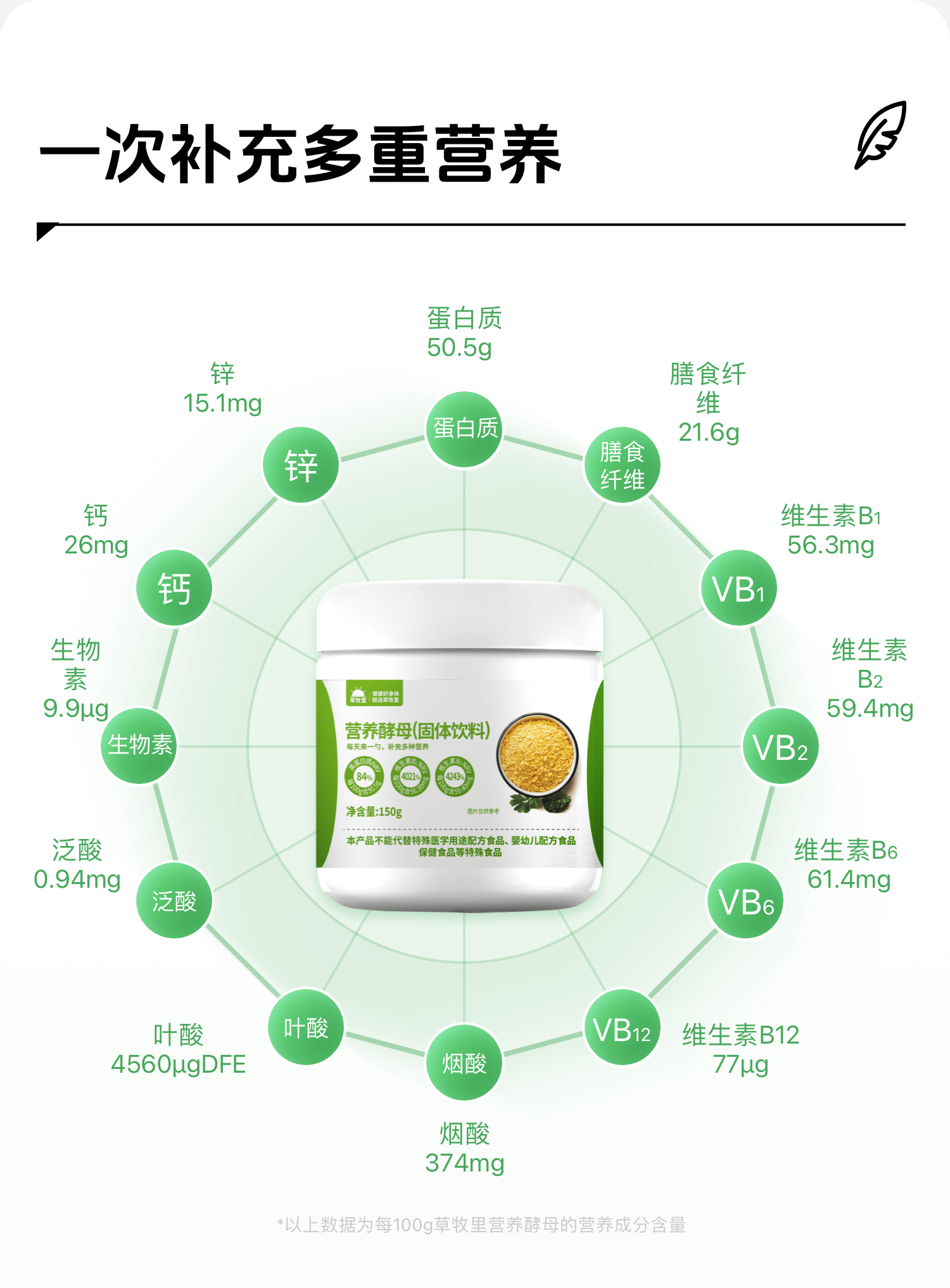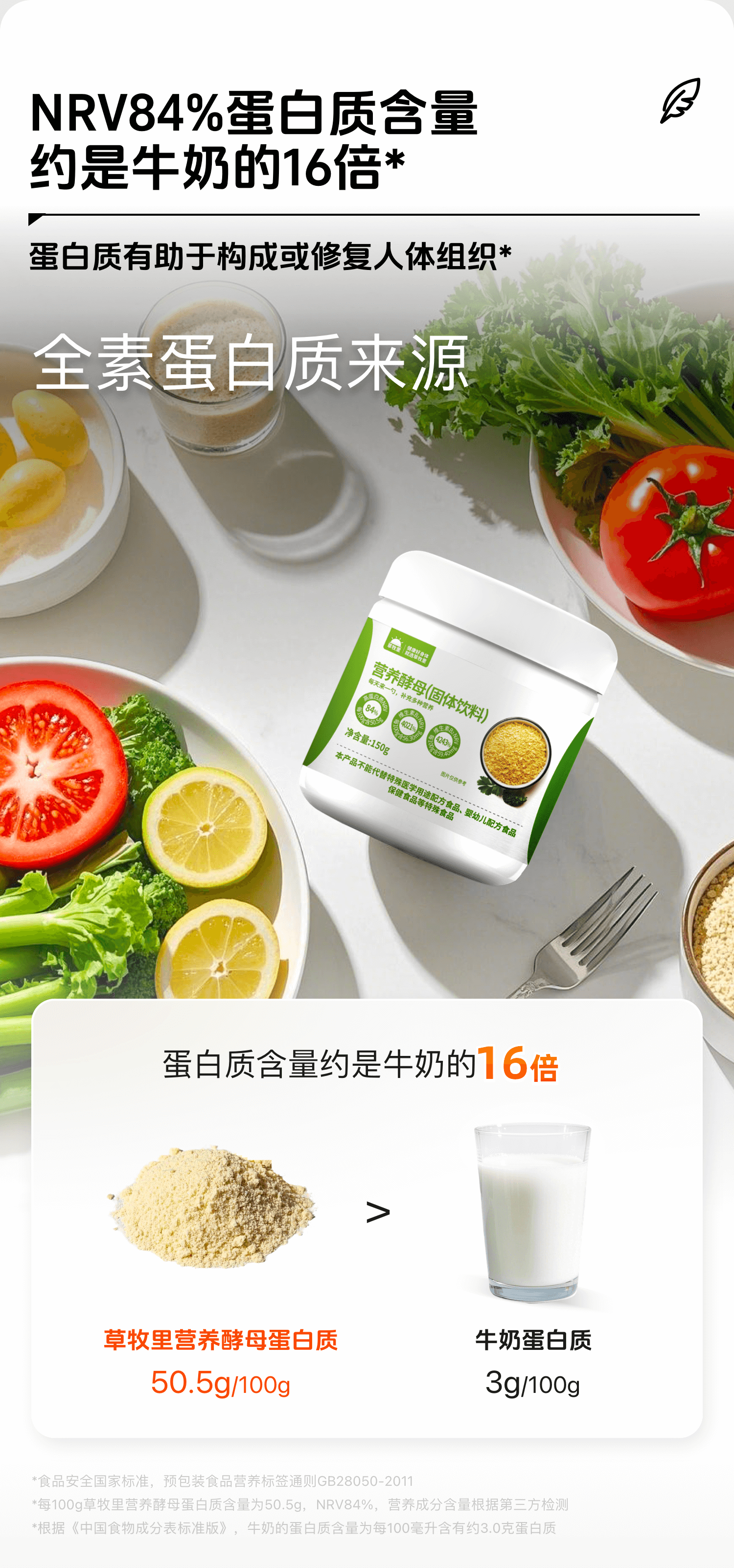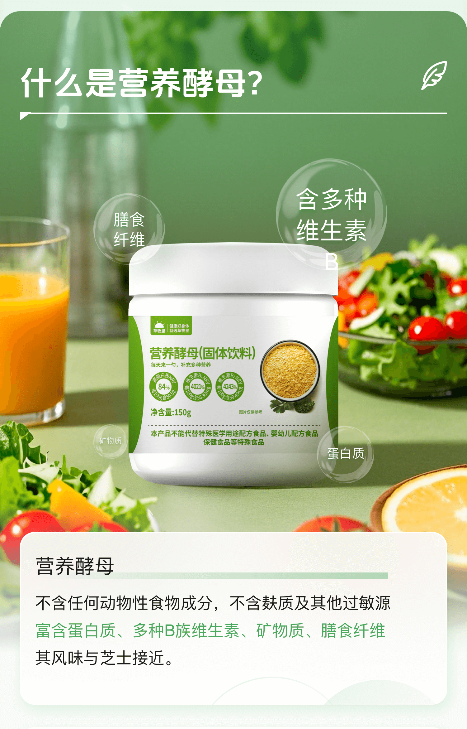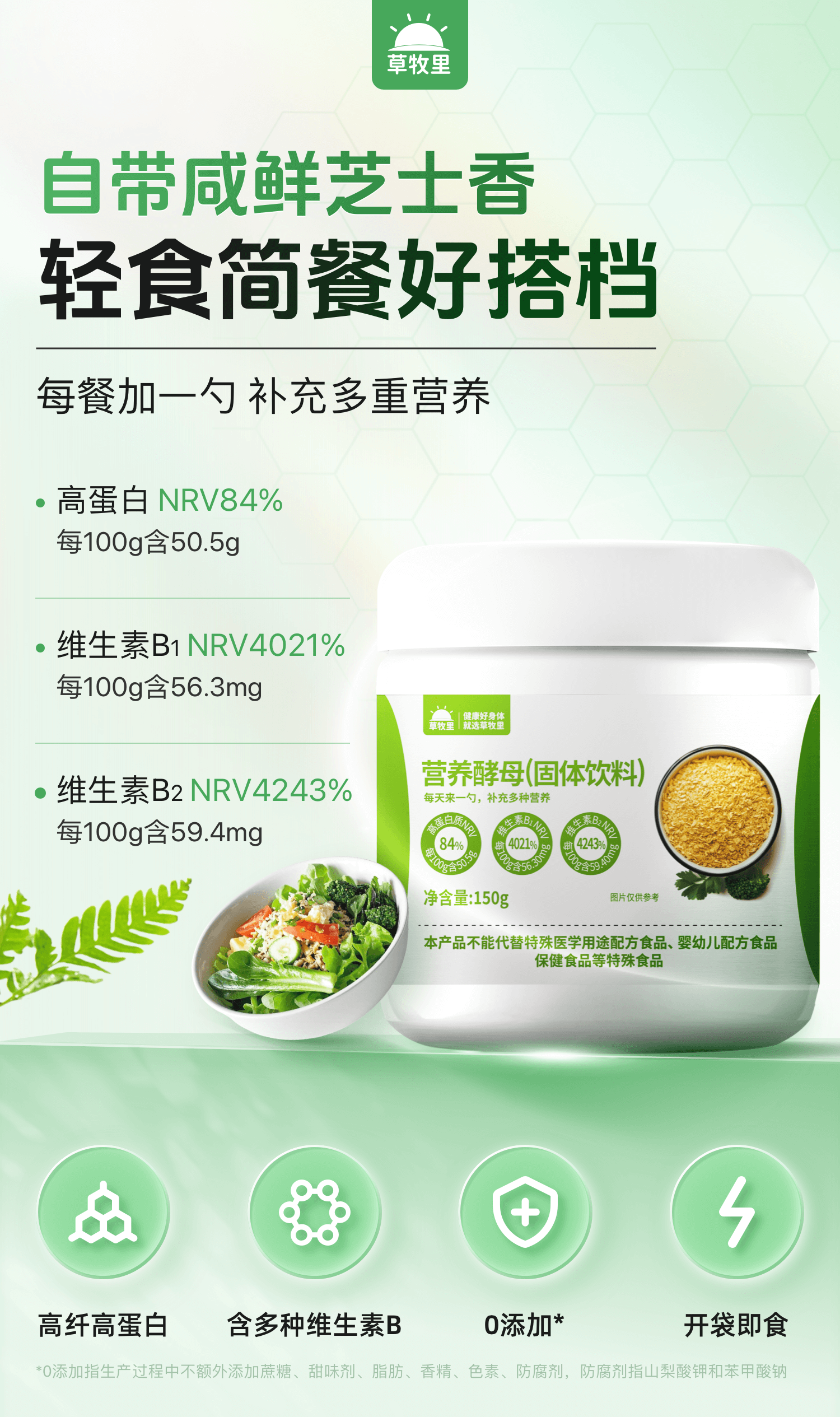 【轻食简餐好搭档】草牧里 营养酵母(固体饮料)150g/罐 每餐加一勺补充多重营养