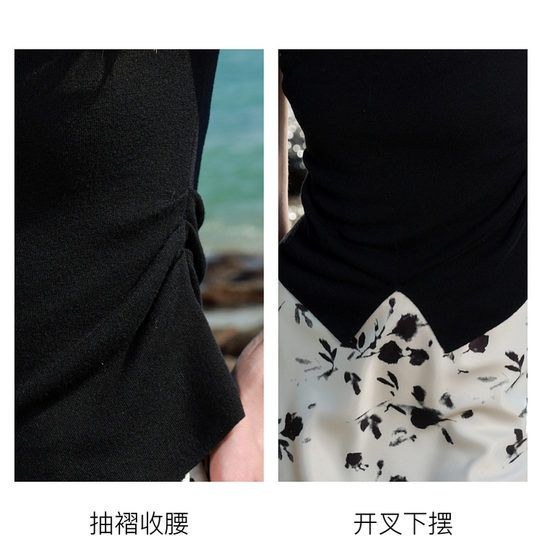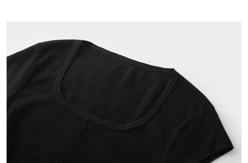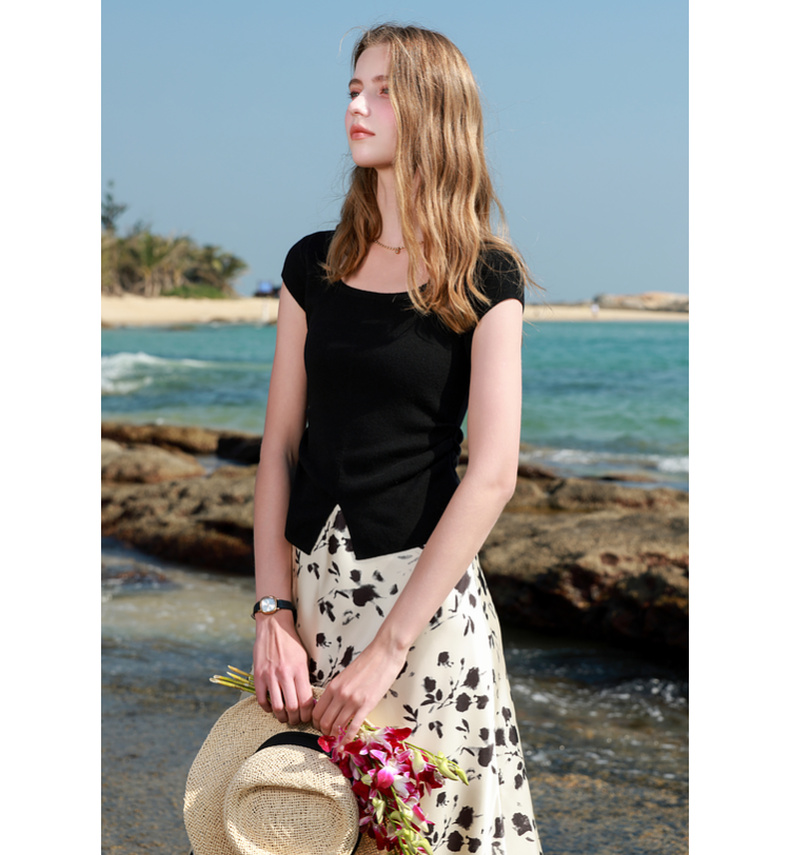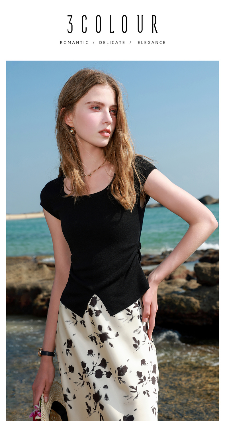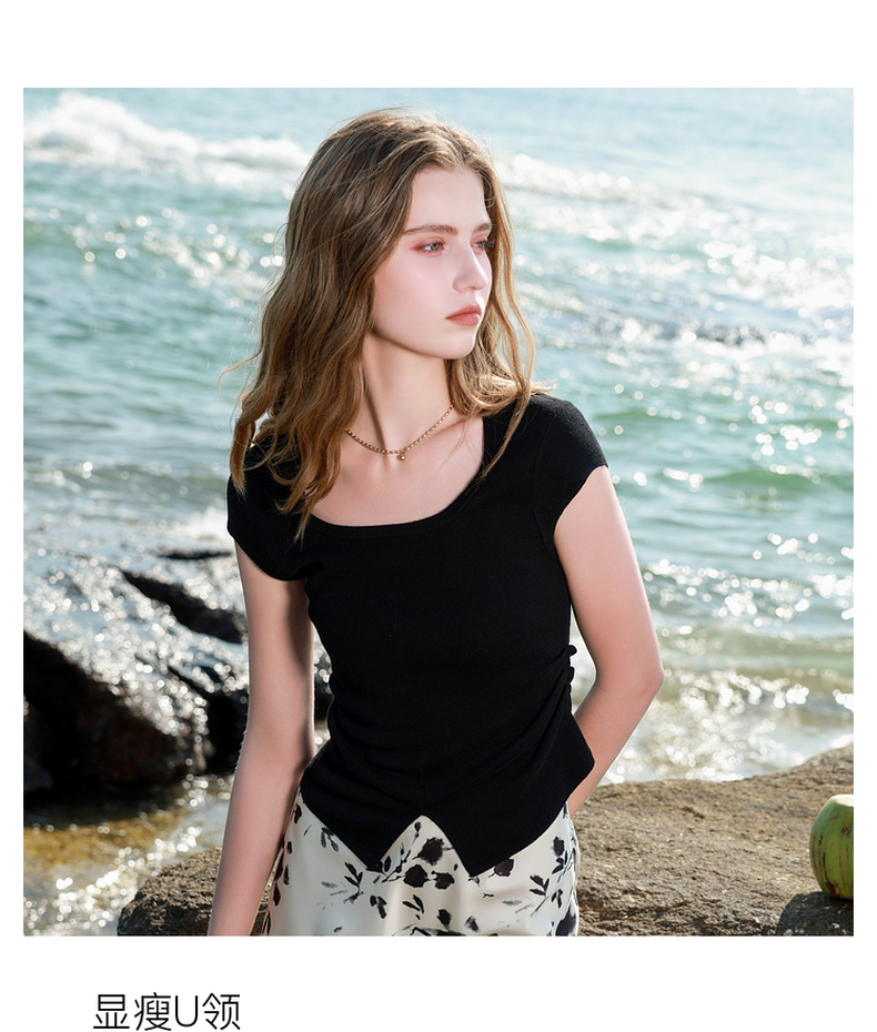三彩2025春季新款修身短款套头针织衫收腰开叉短袖毛衫M
