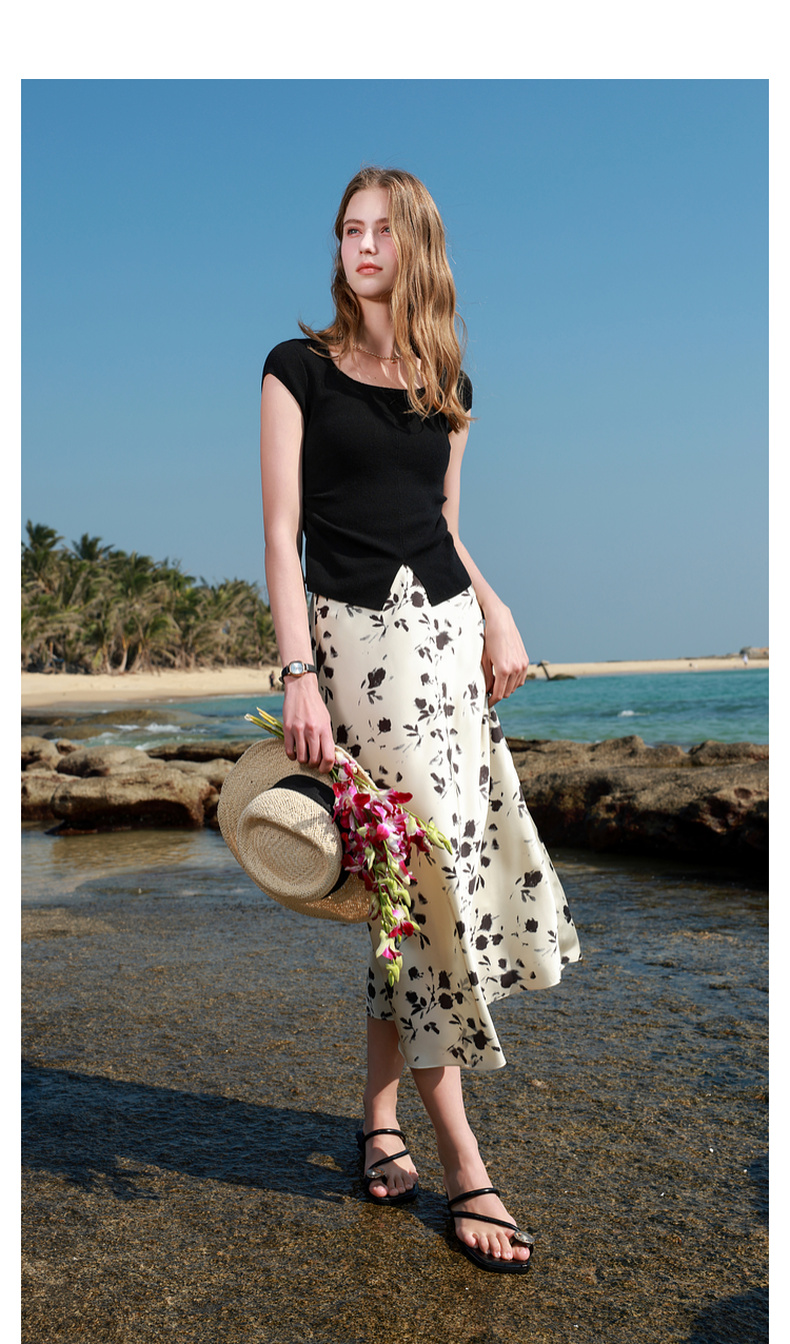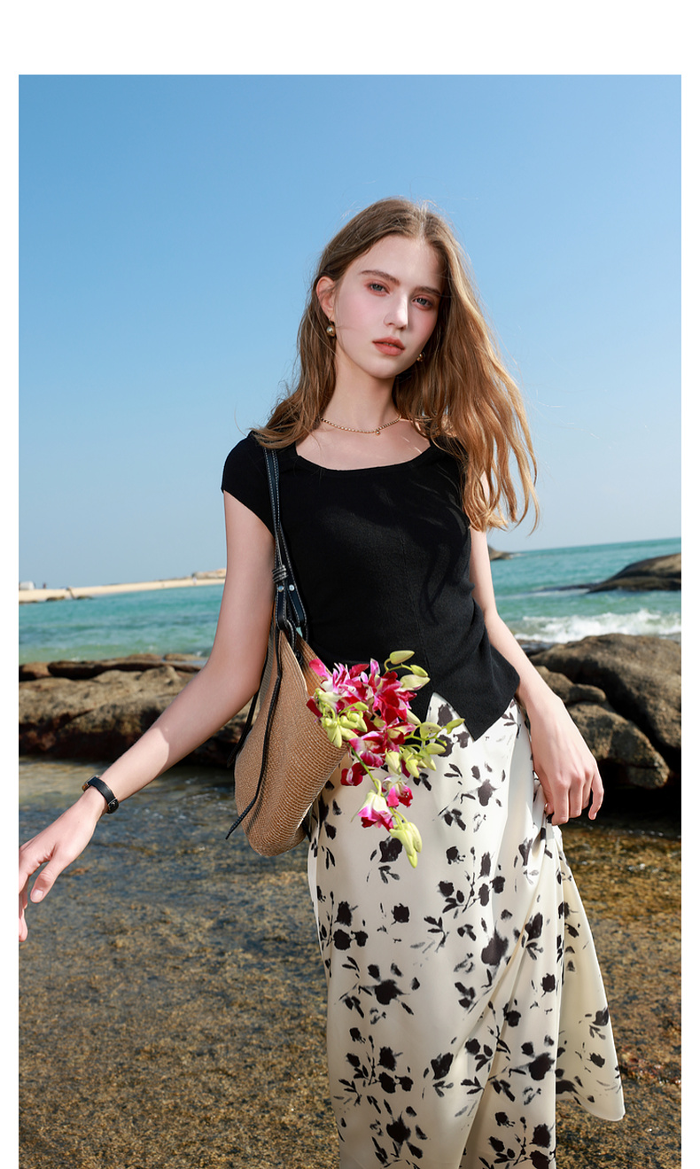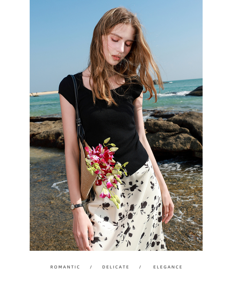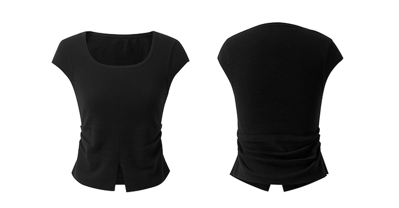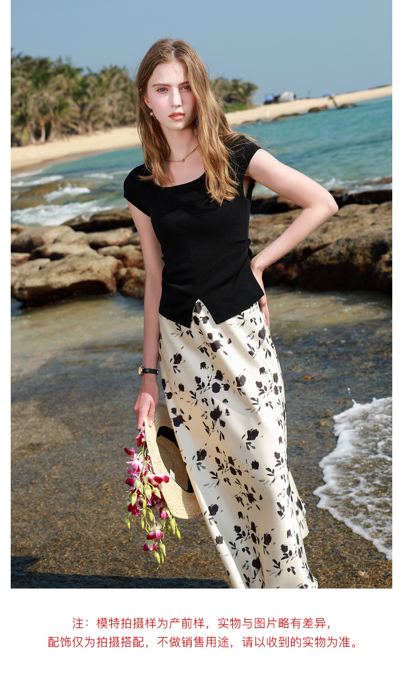 三彩2025春季新款修身短款套头针织衫收腰开叉短袖毛衫M