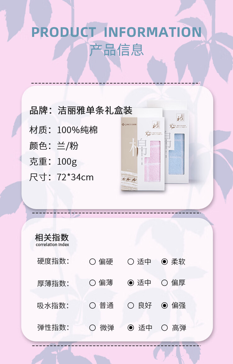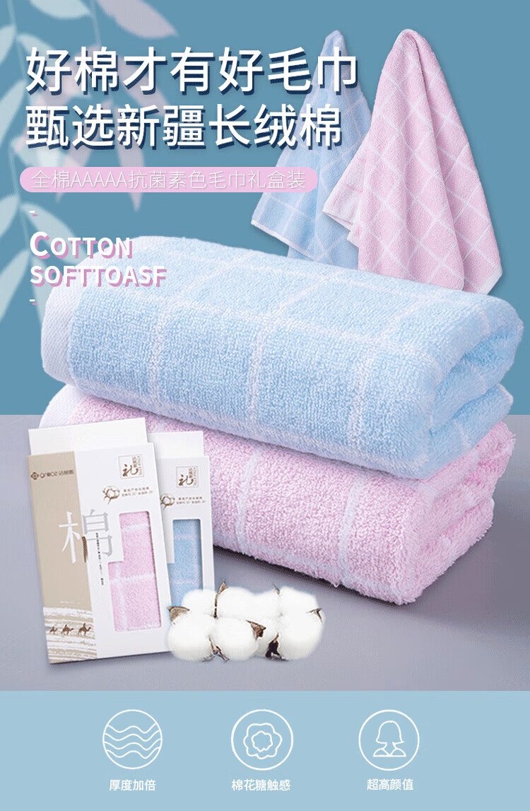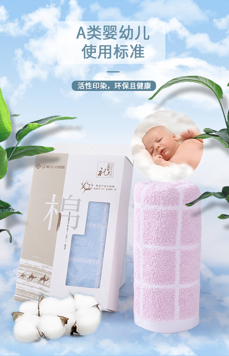 洁丽雅(Grace)新疆长绒棉抗菌毛巾礼盒单条装W2192