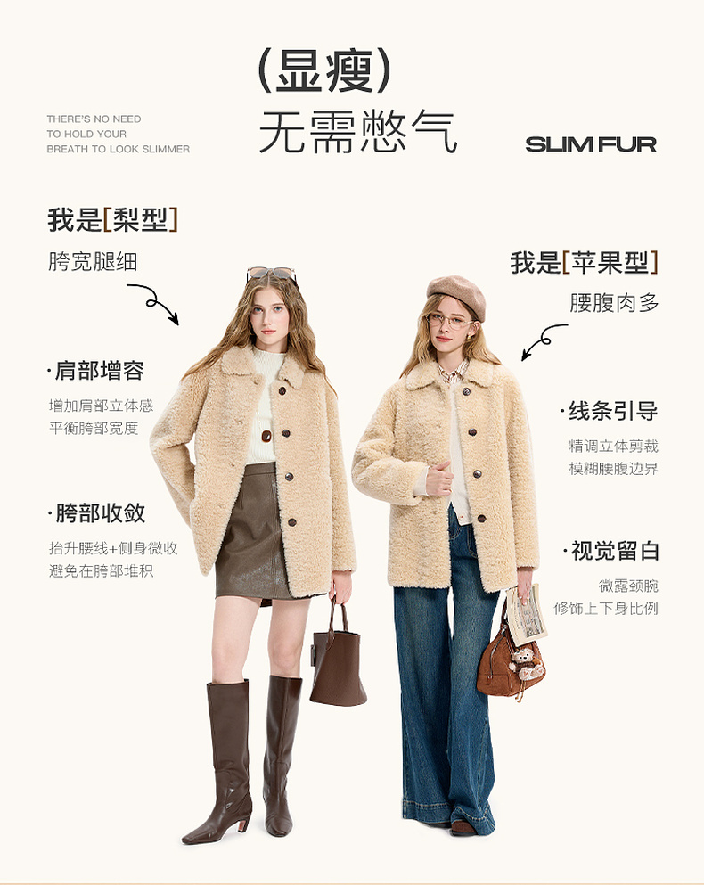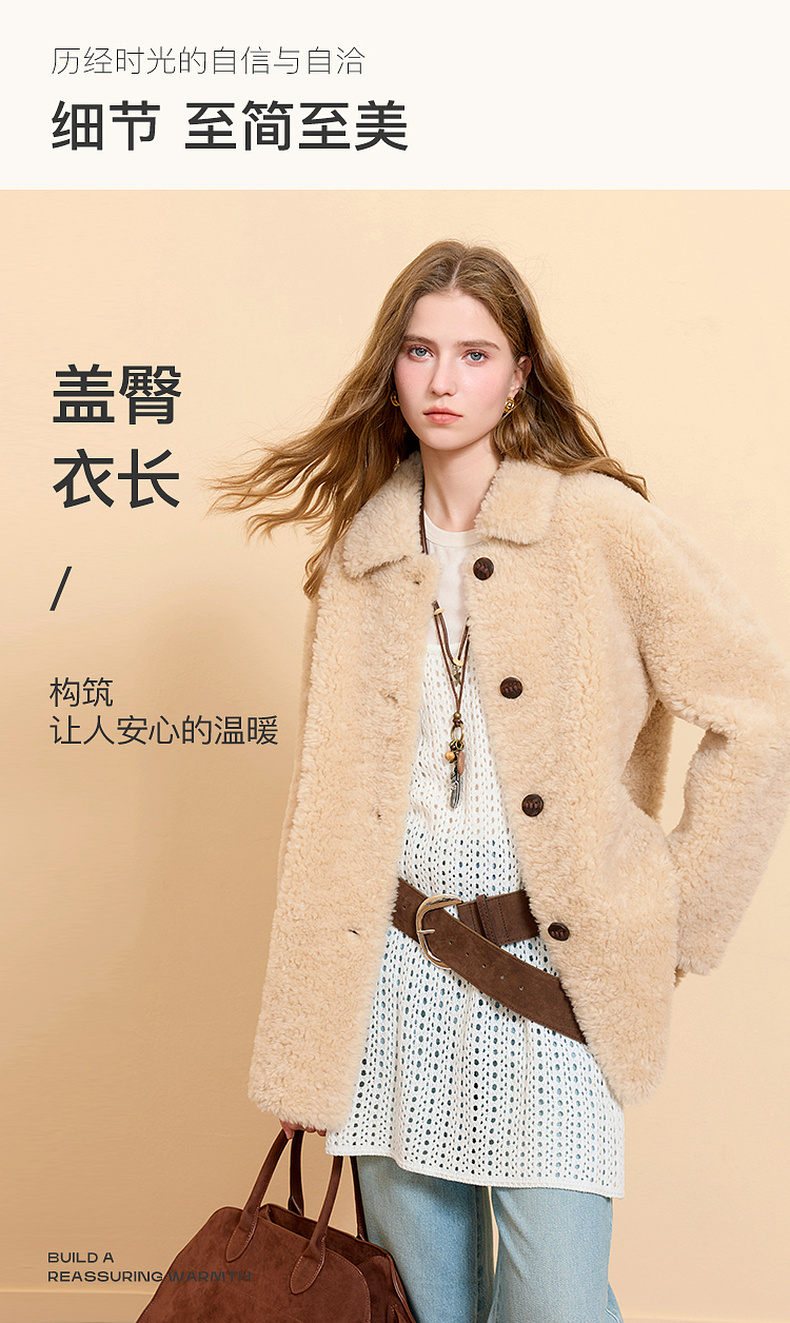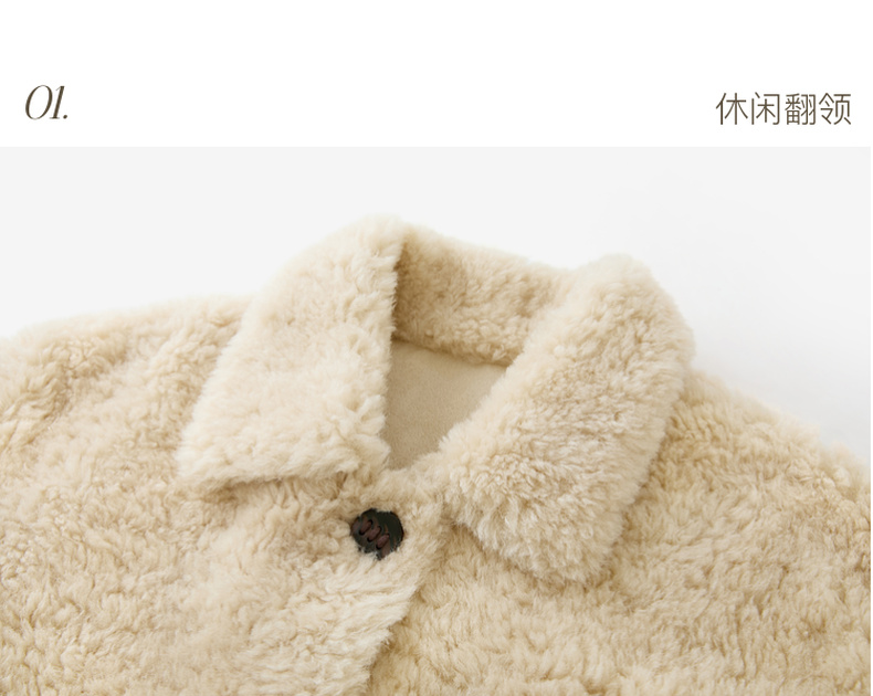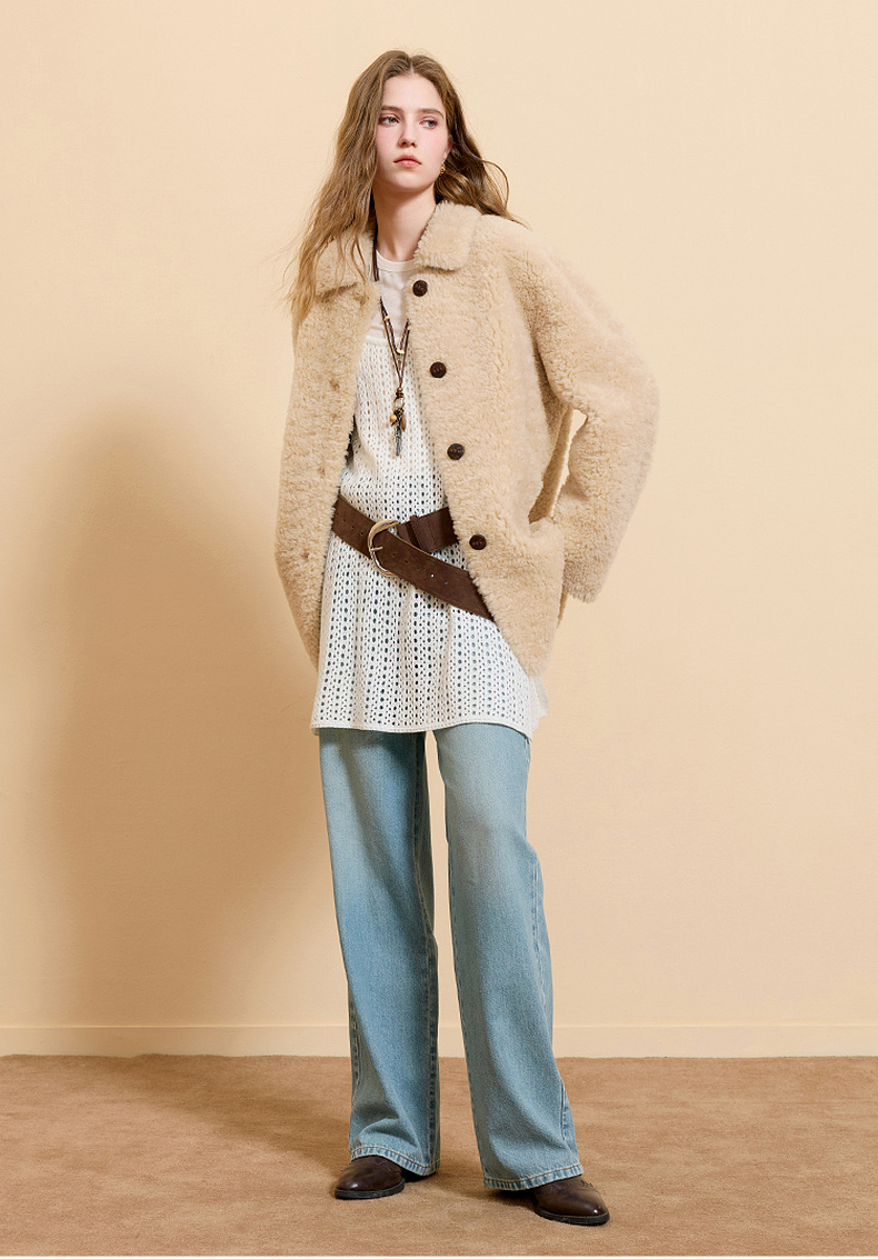 【100绵羊毛瘦瘦皮草】三彩2025冬季新款翻领毛毛外套中长简约M