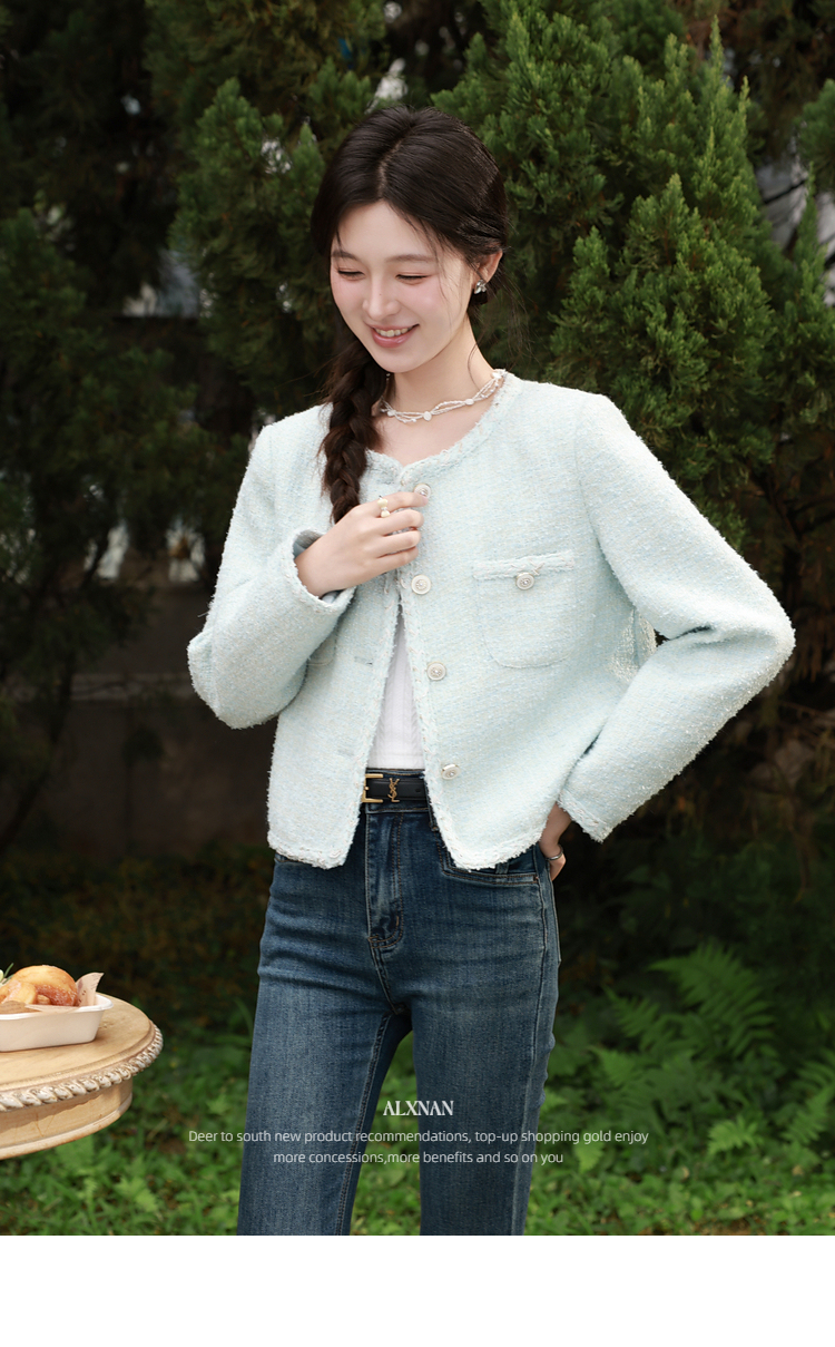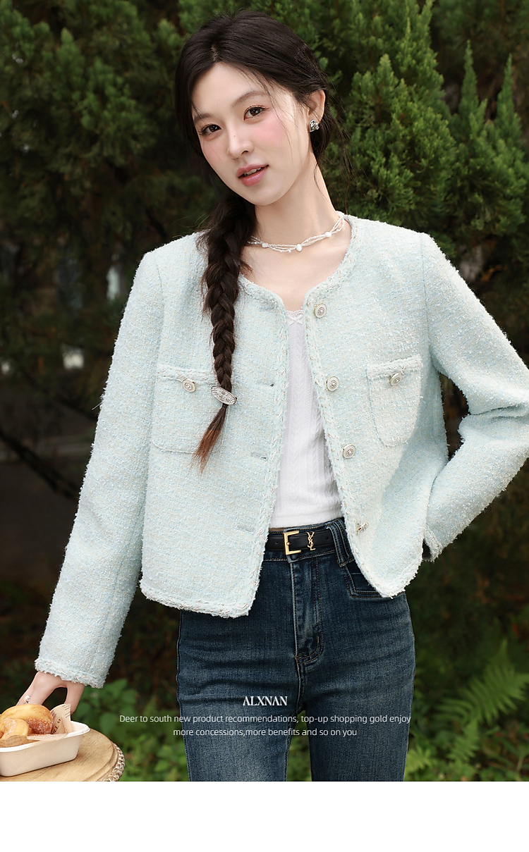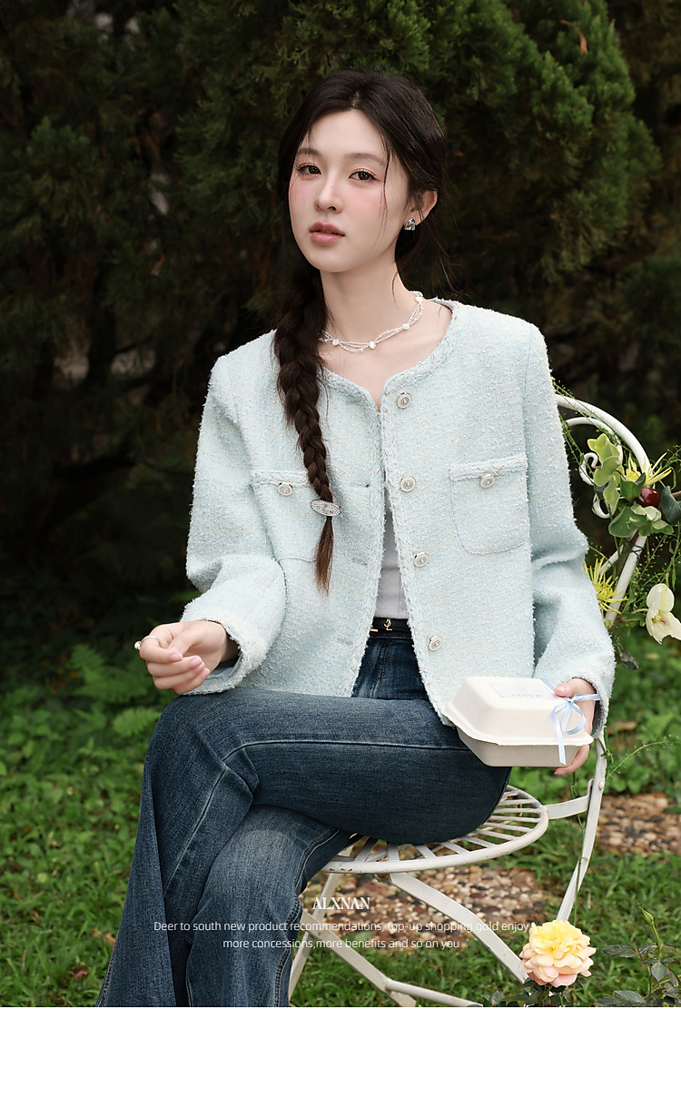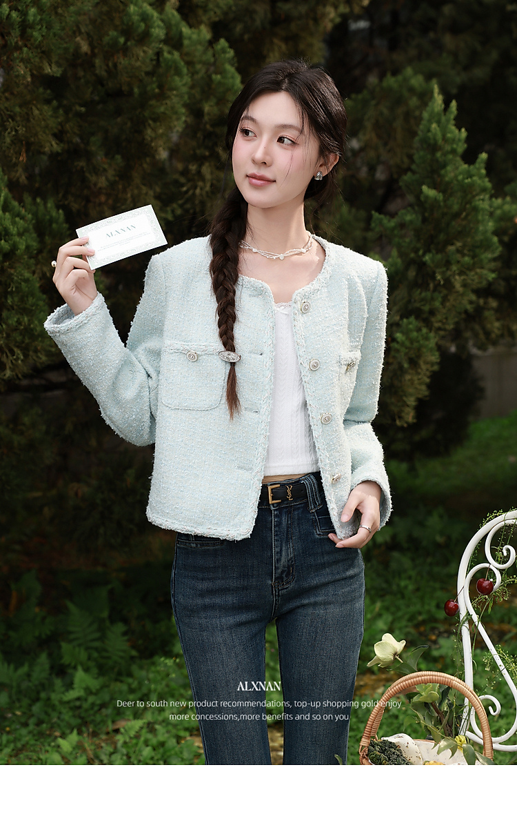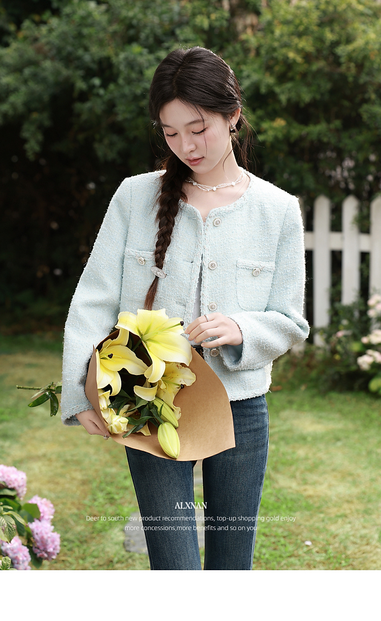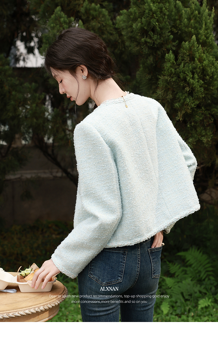 鹿向南「春日香颂」小香风浅蓝色短外套女春季小个子气质开衫上衣