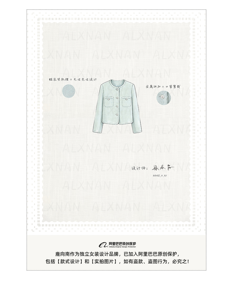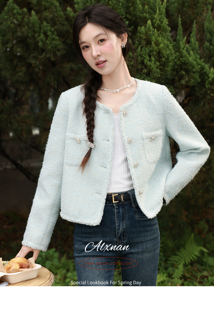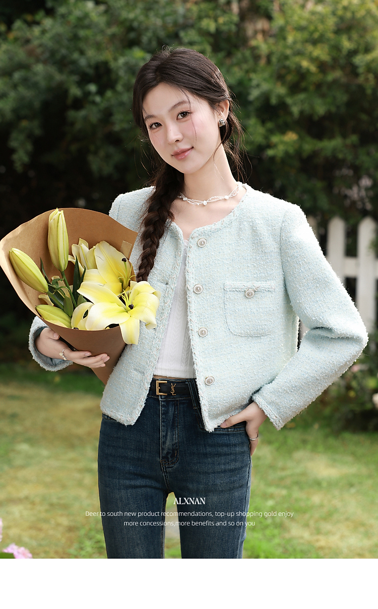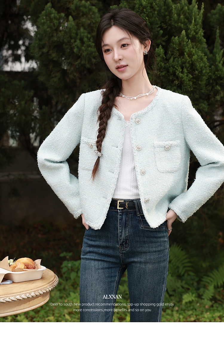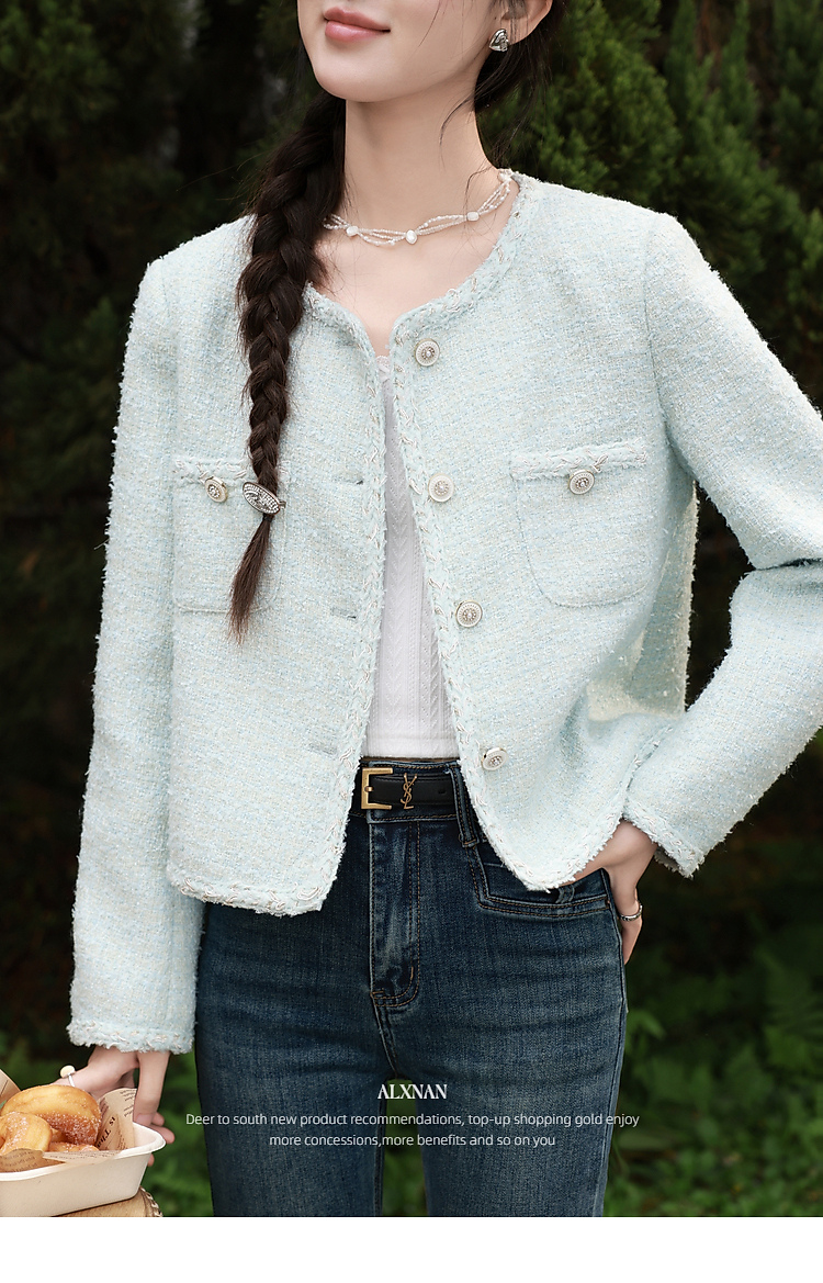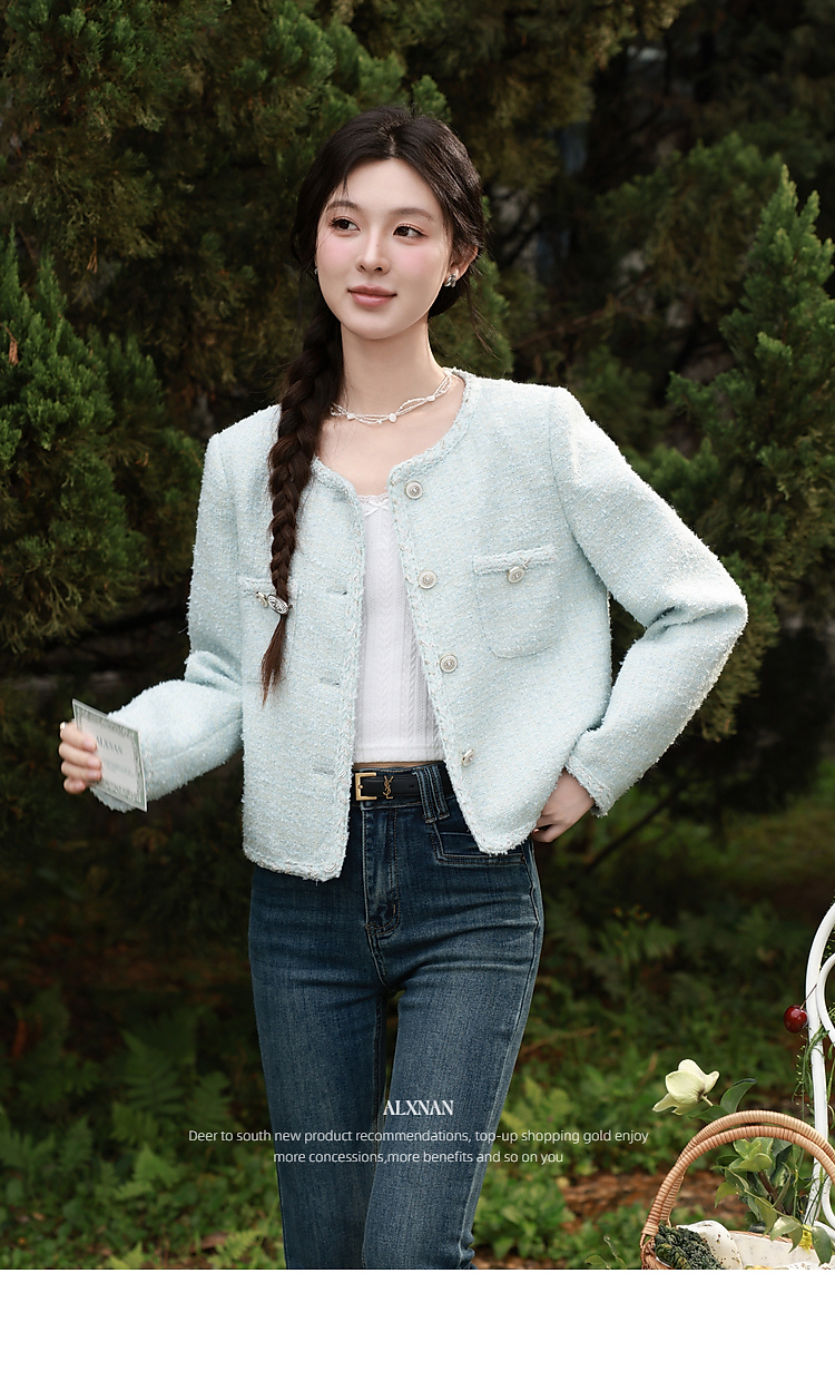 鹿向南「春日香颂」小香风浅蓝色短外套女春季小个子气质开衫上衣
