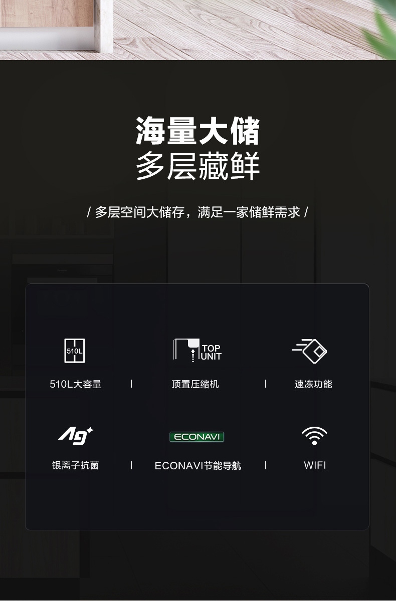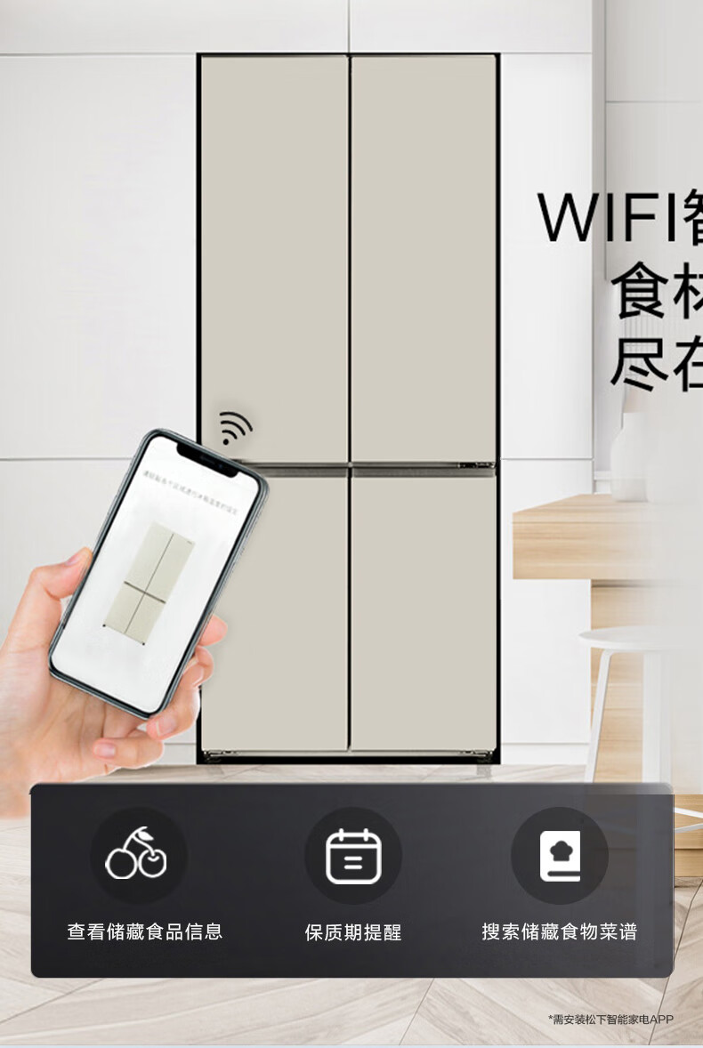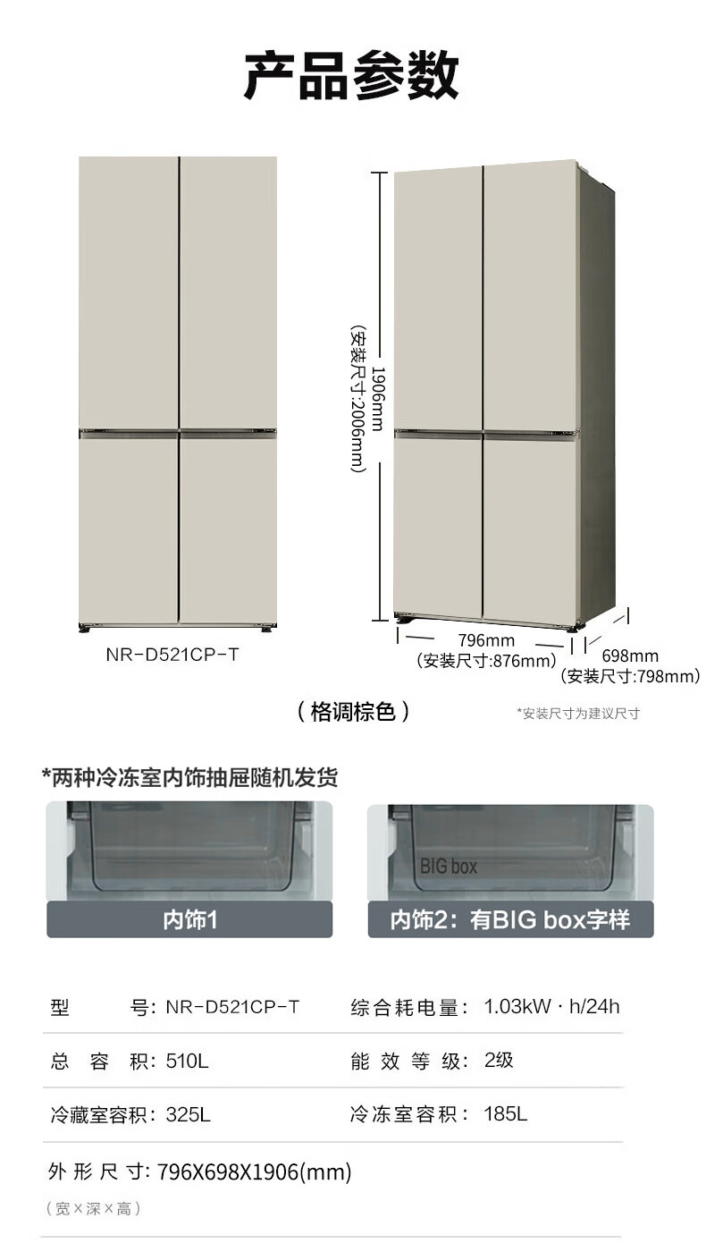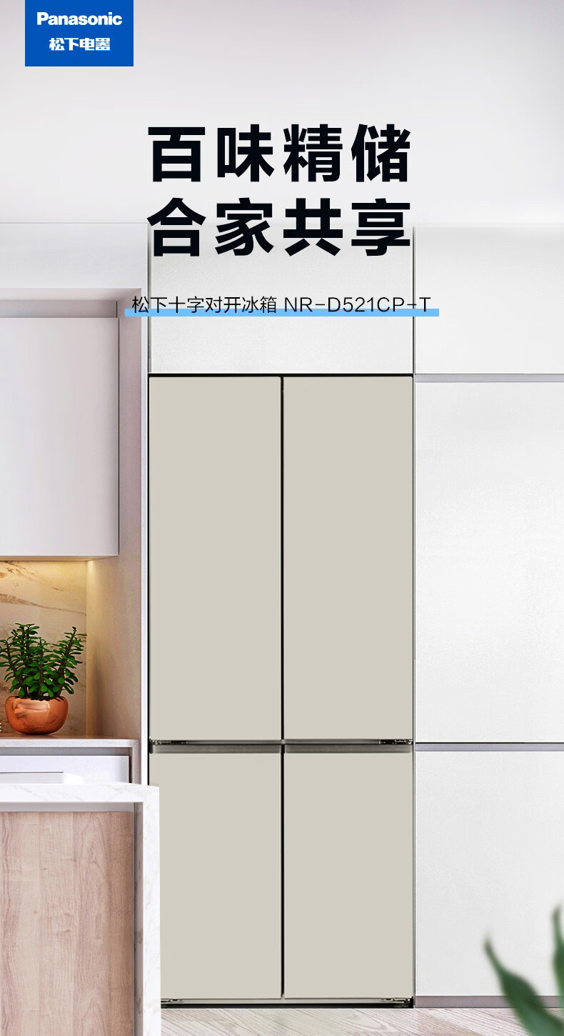 松下(Panasonic)510升十字门冰箱 APP智控 银离子kang菌 节能导航 风冷无霜家用NR-D521CP-T