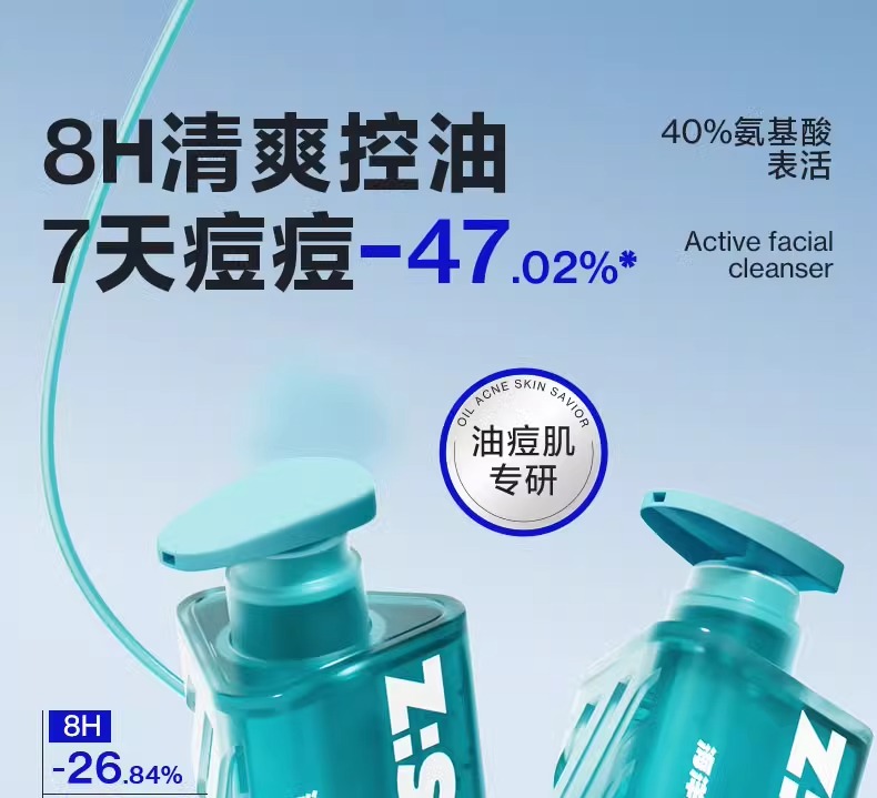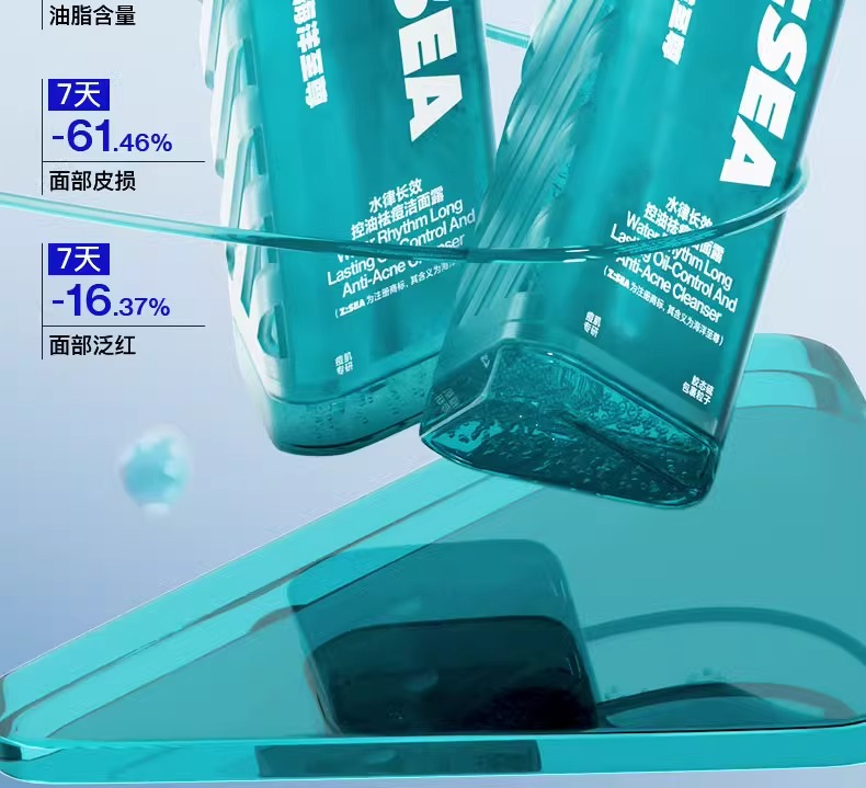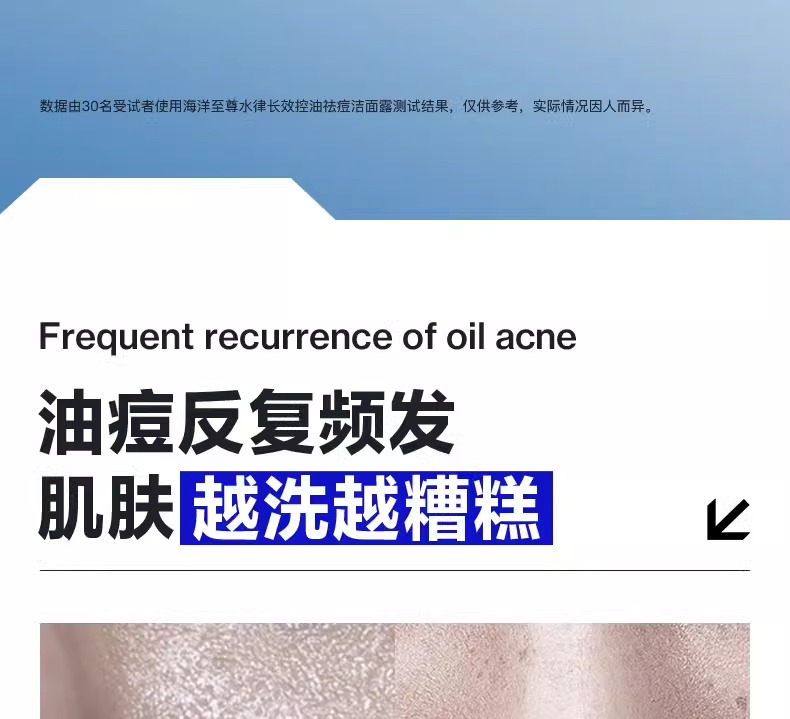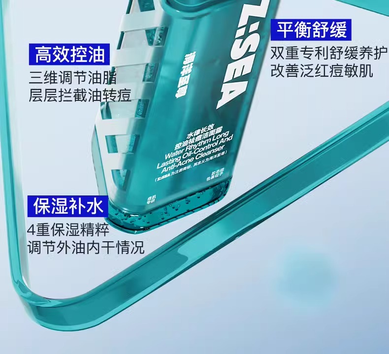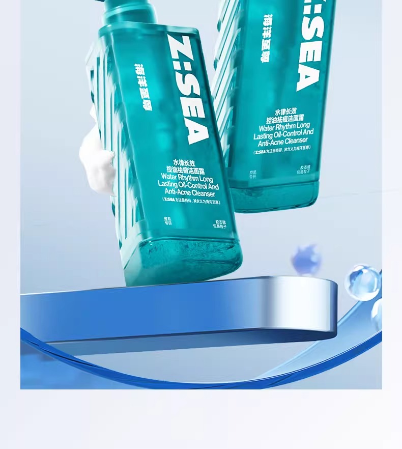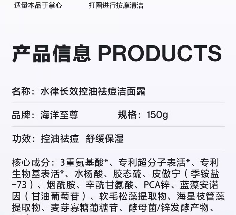 海洋至尊水律长效控油祛痘洁面露2瓶 赠送祛痘精华液3ml*2