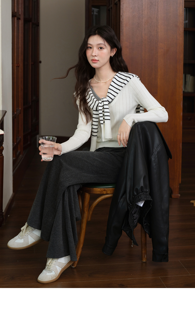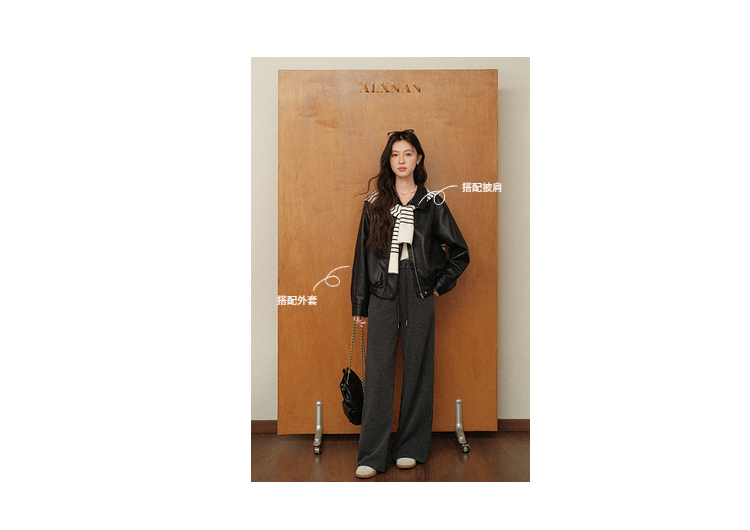 鹿向南「凭栏嗅香」灰色百搭休闲直筒裤秋季新款宽松通勤阔腿裤女