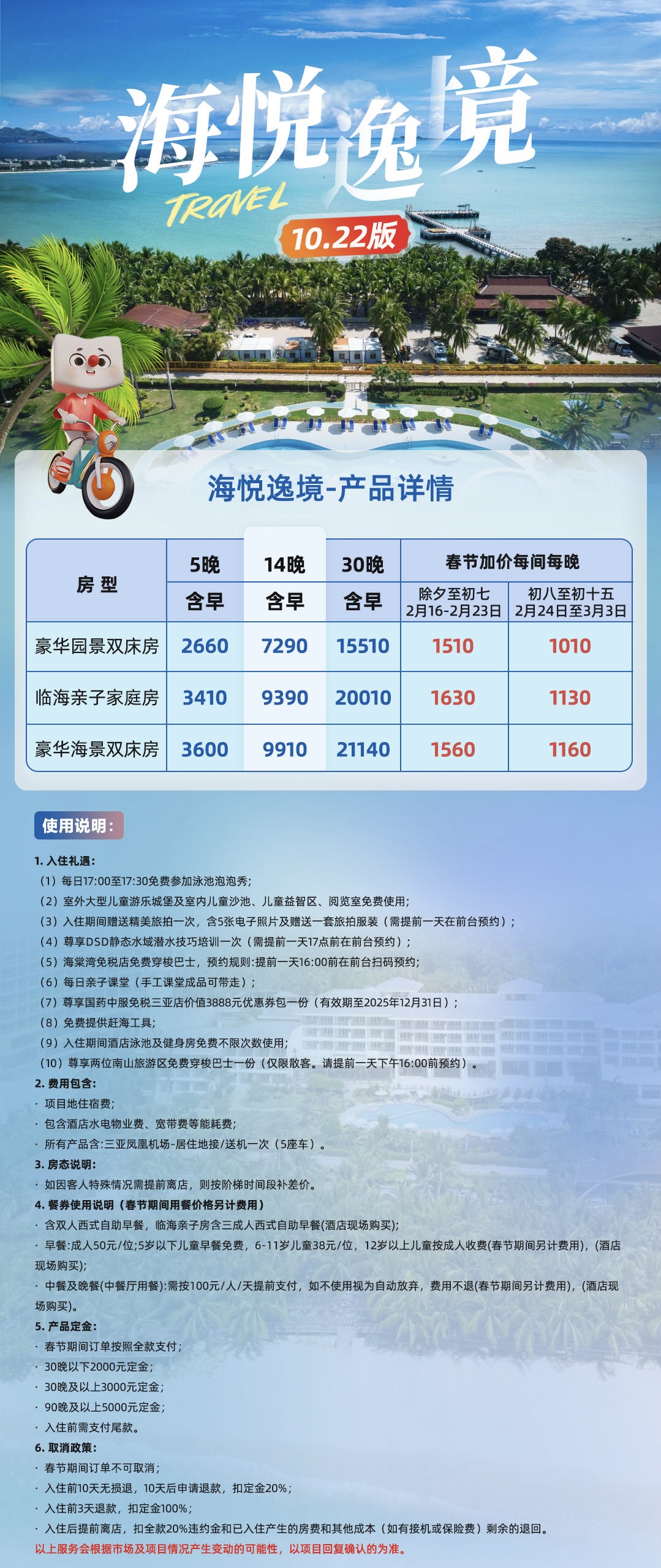 ③入住期间赠送精美旅拍一次,含5张电子照片及赠送一套旅拍服装(需提前一天在前台预约)