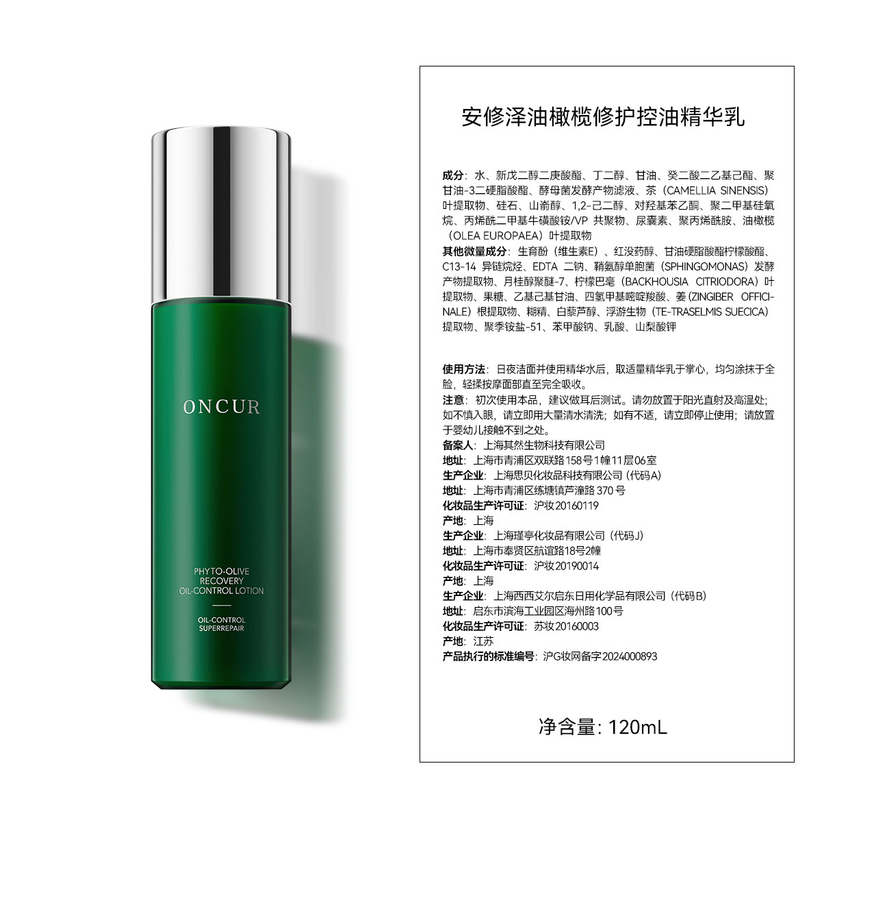 【新升级】安修泽 油橄榄修护控油精华乳/油橄榄修护舒润精华水 油橄榄水乳2.0