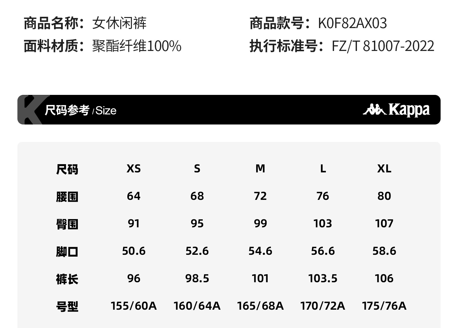 Kappa 新款女士运动裤 宽松直筒裤阔腿裤K0F82AX03