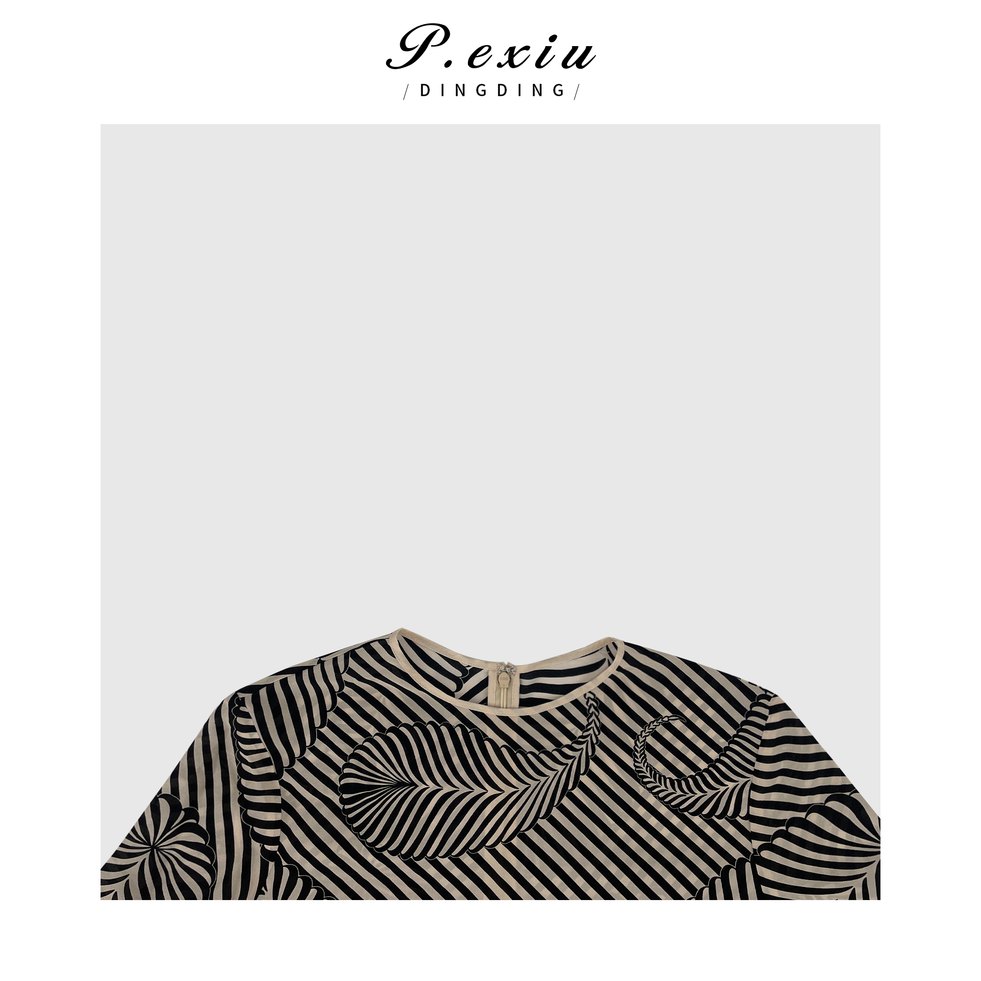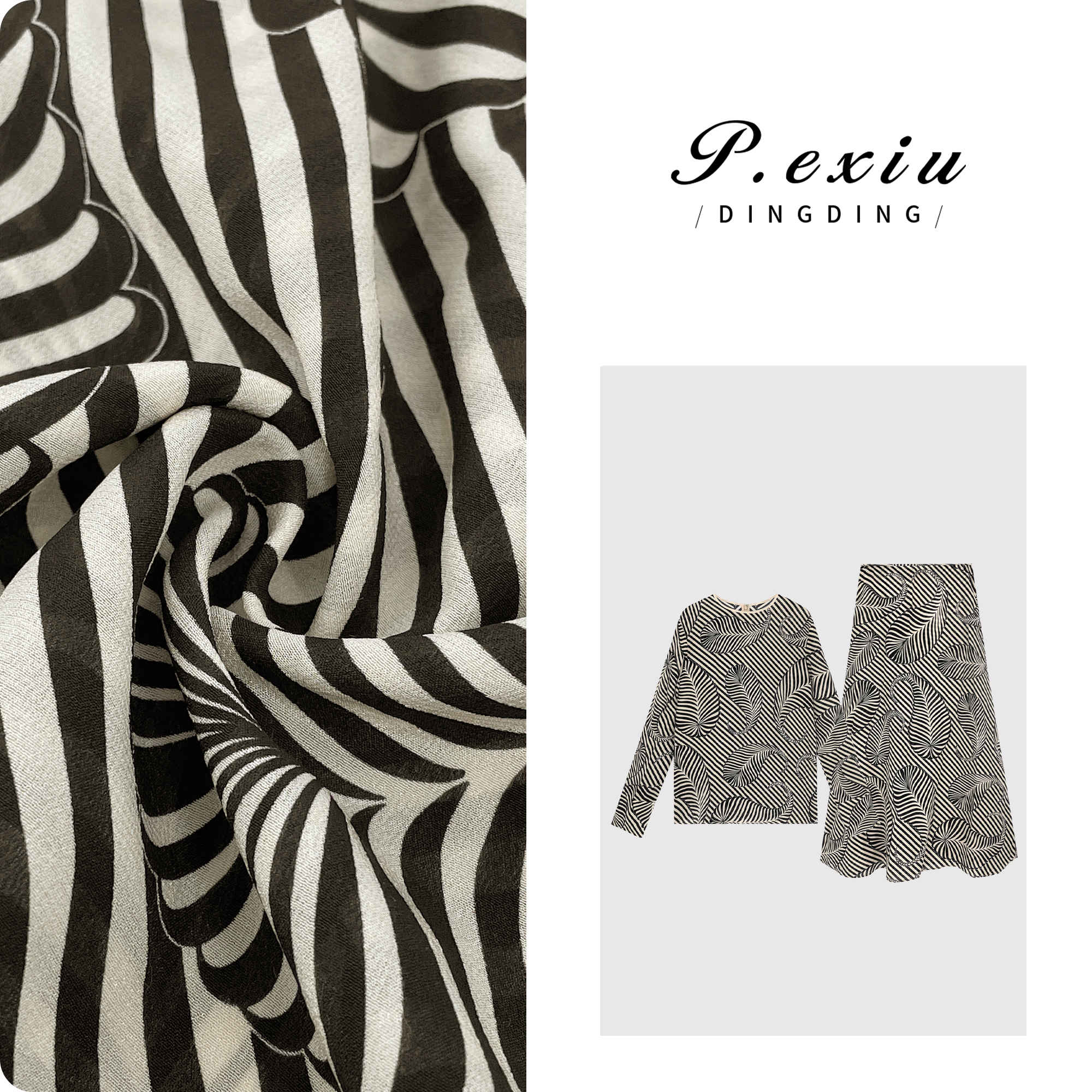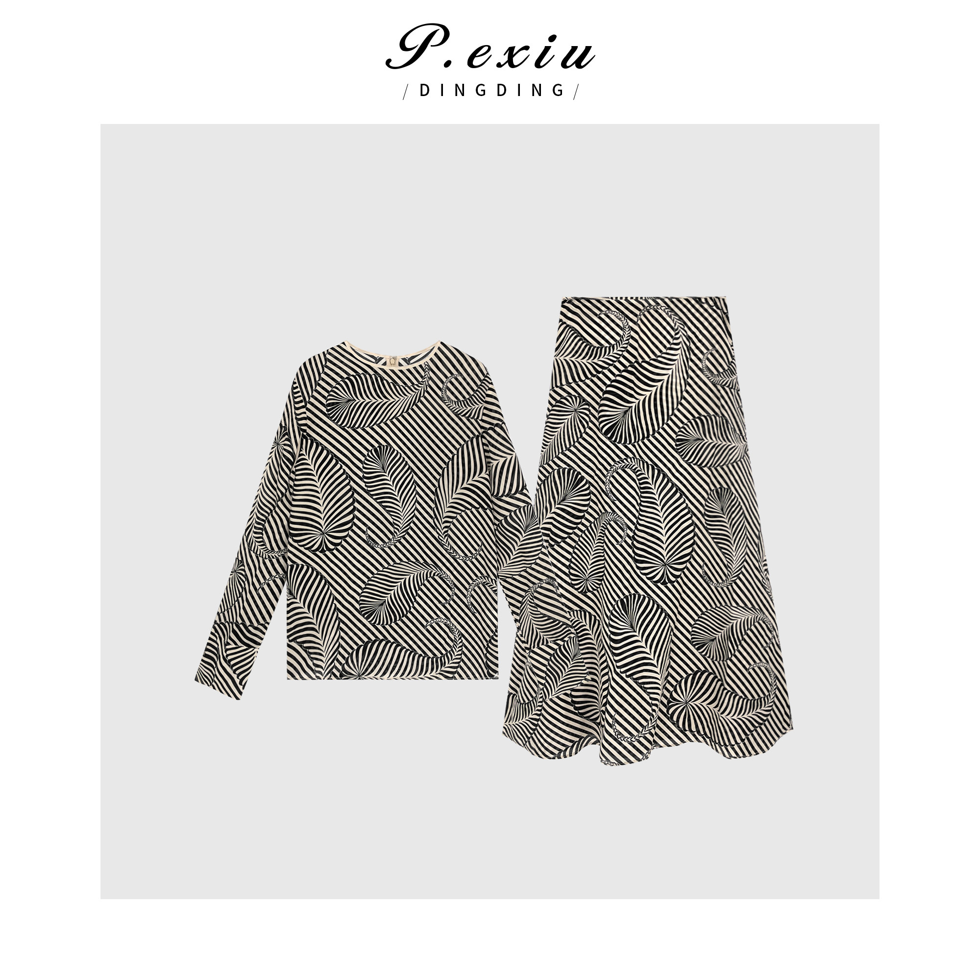 04-3潘依绣丁丁宠粉PanYiXiu/潘依绣100%桑蚕丝高级感几何条纹印花套装 W-61829