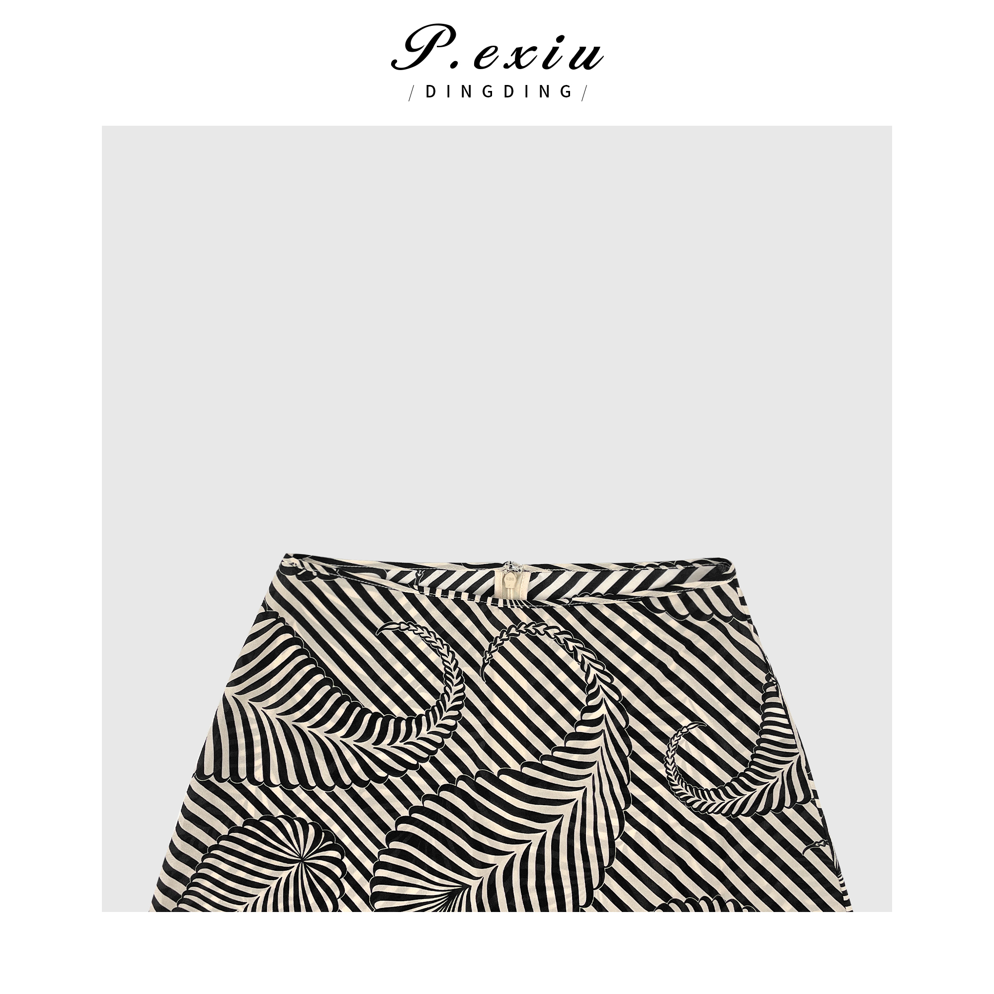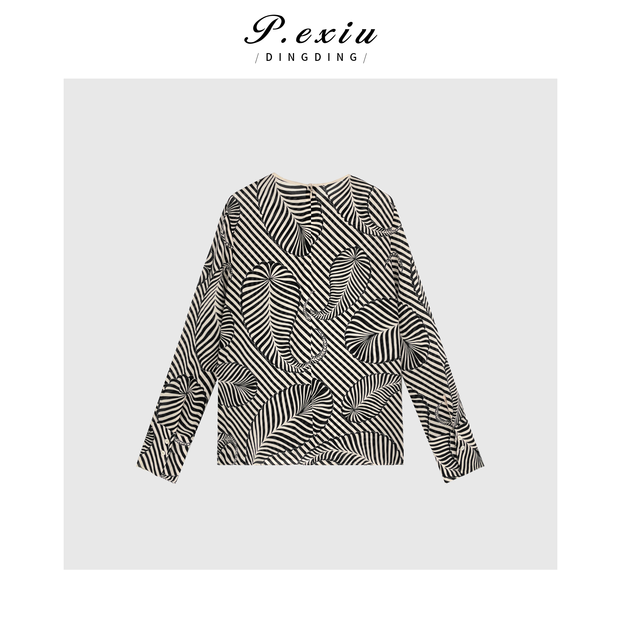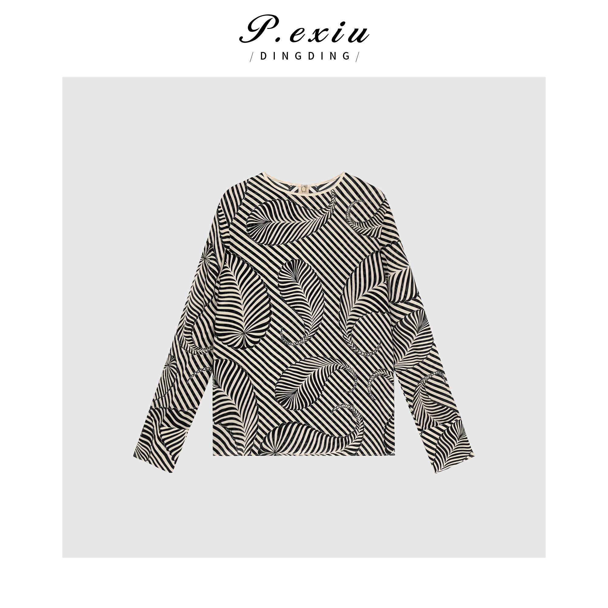 04-3潘依绣丁丁宠粉PanYiXiu/潘依绣100%桑蚕丝高级感几何条纹印花套装 W-61829