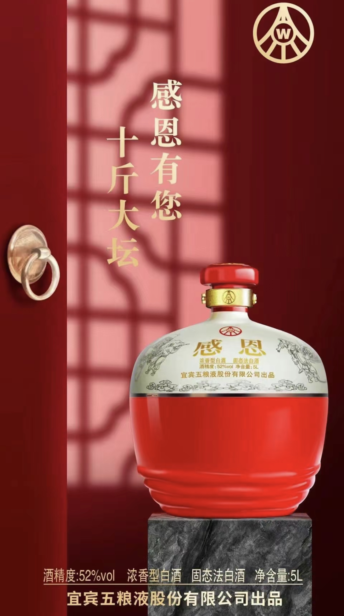 【稀缺大坛】五粮液(WULIANGYE)感恩有您 52度 浓香型白酒 5L*1坛