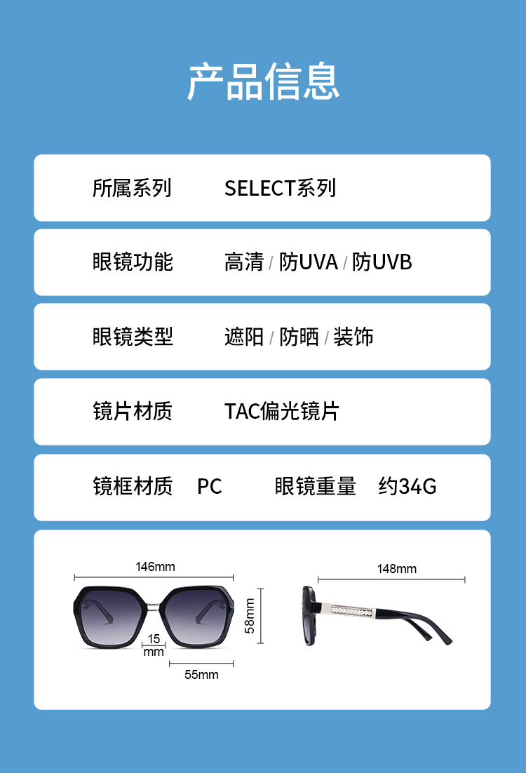 不仅外观时尚,防晒力也强,采用多层超微抗紫外线晶体科技材料,形成稳定的抗UV粒子防晒夹层,有效隔绝UVA、UVB带来99.9%*UV防护,升级高清偏光镜片,遮阳更有效,视觉更清晰。