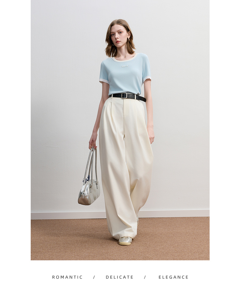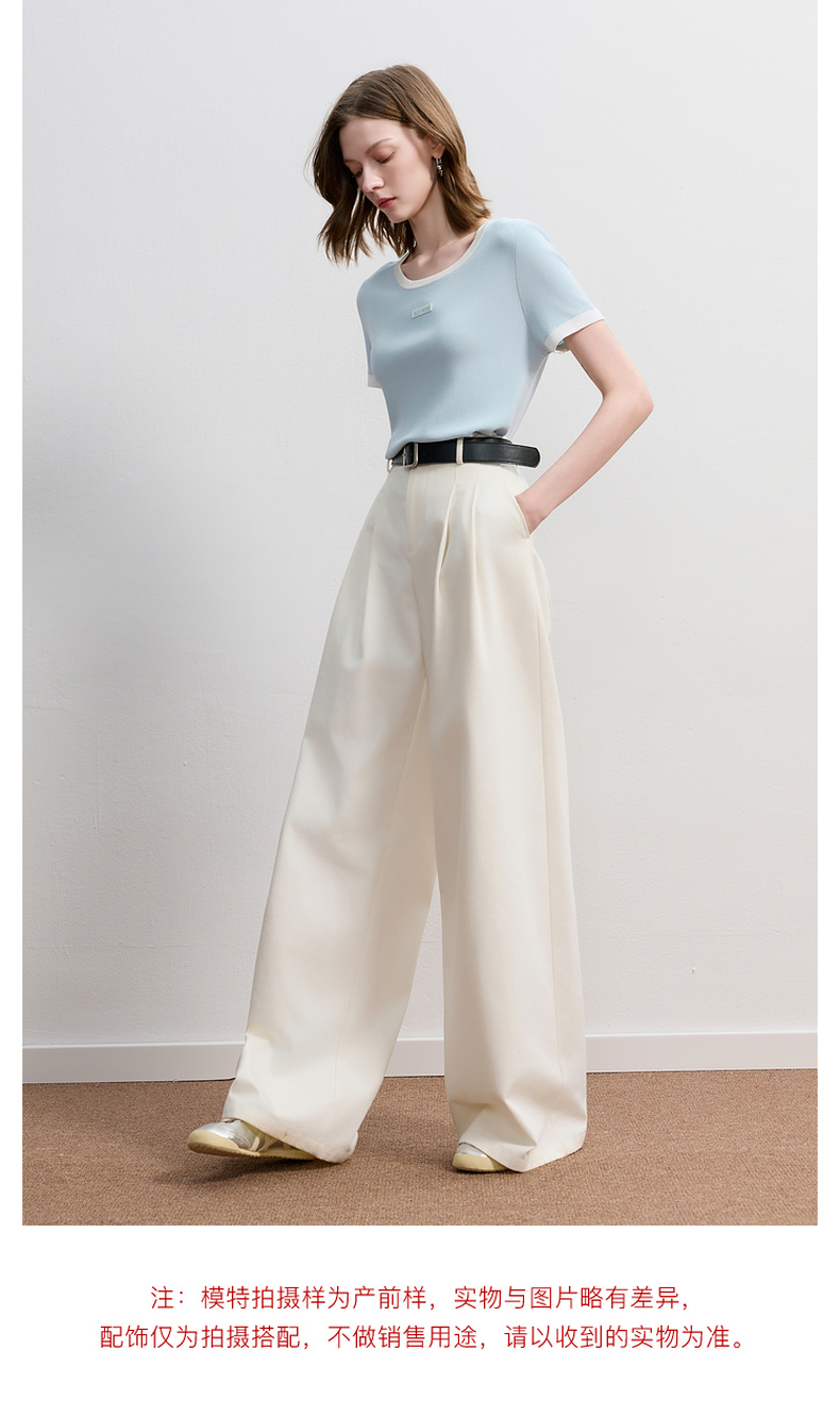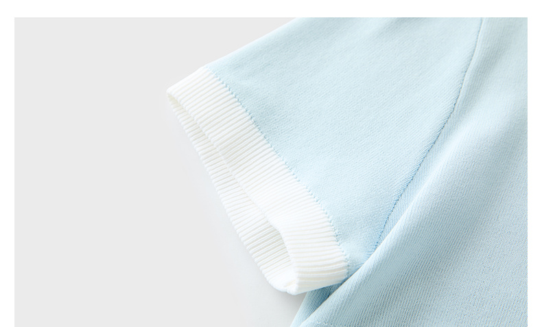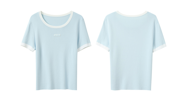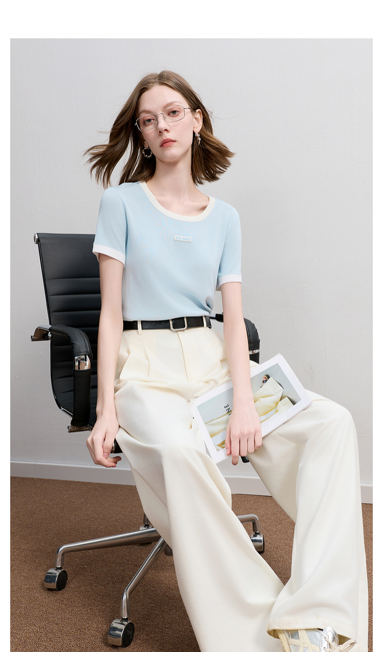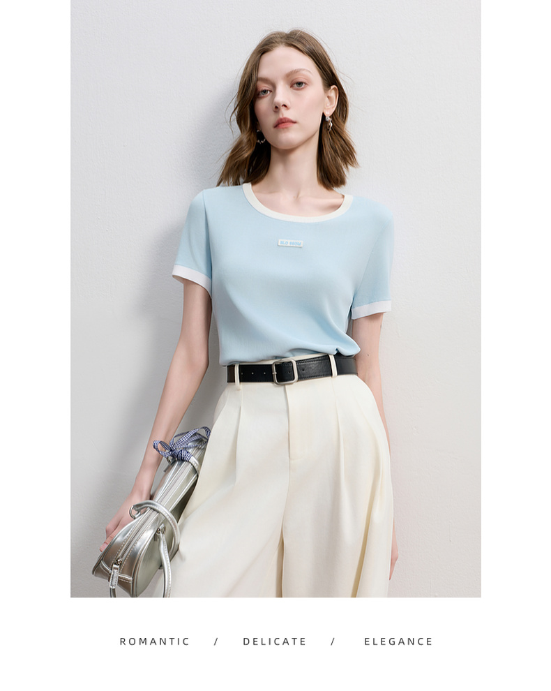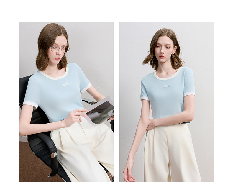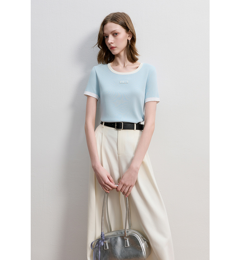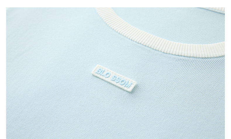 三彩2025秋季新款撞色针织衫圆领毛衫正肩短袖上衣套头M
