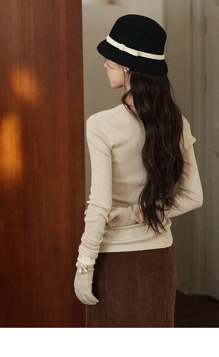 鹿向南「清怀映月」长袖燕麦色针织衫女秋显瘦打底衫气质内搭上衣