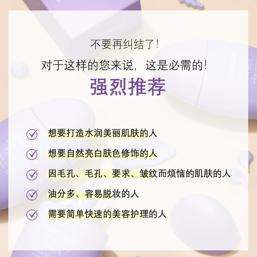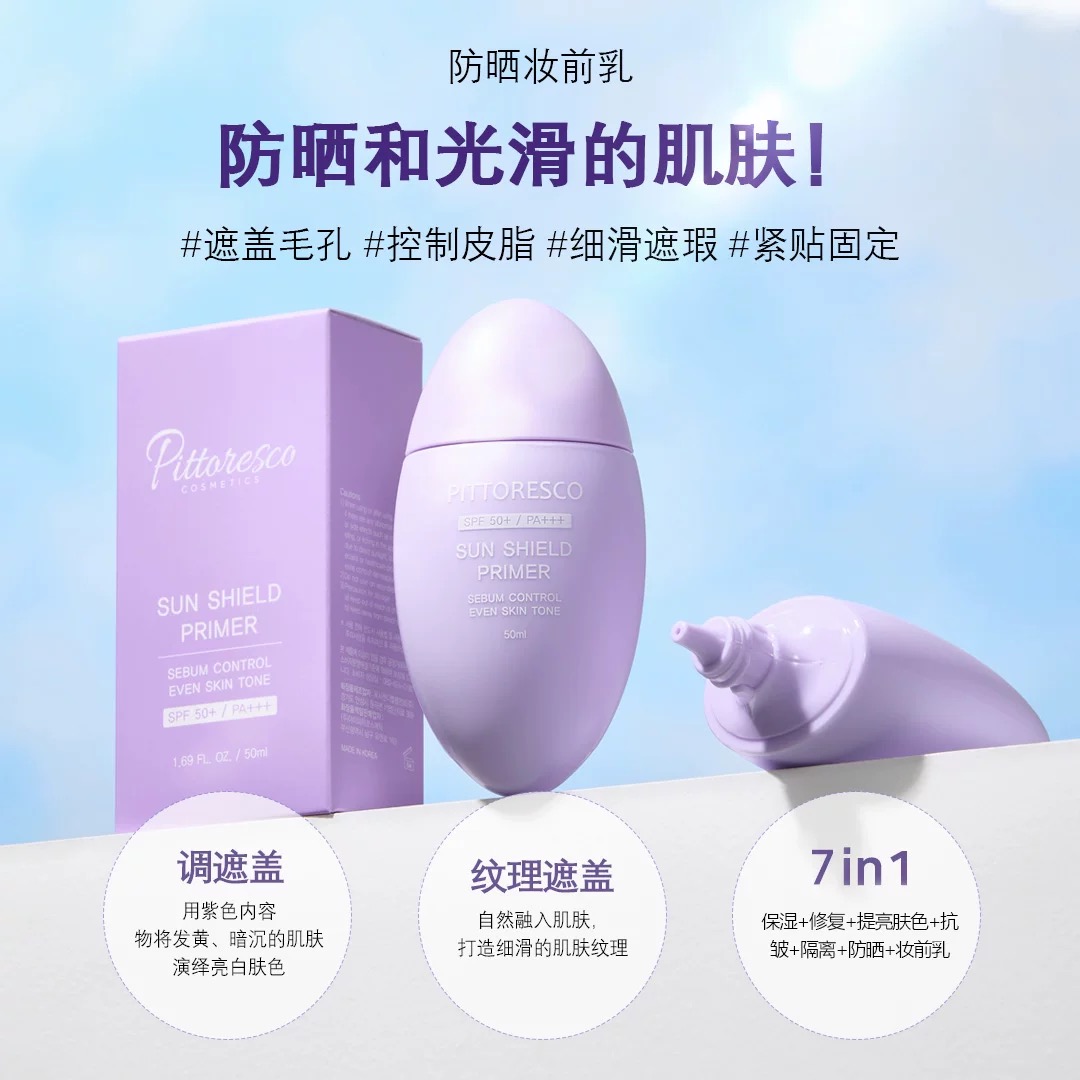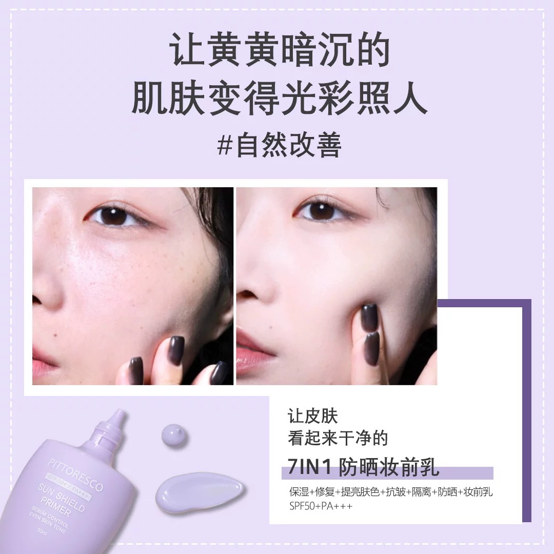 黄皮防晒!Pittoresco7合一防晒妆前乳防晒霜紫隔离SPF50+/PA+++