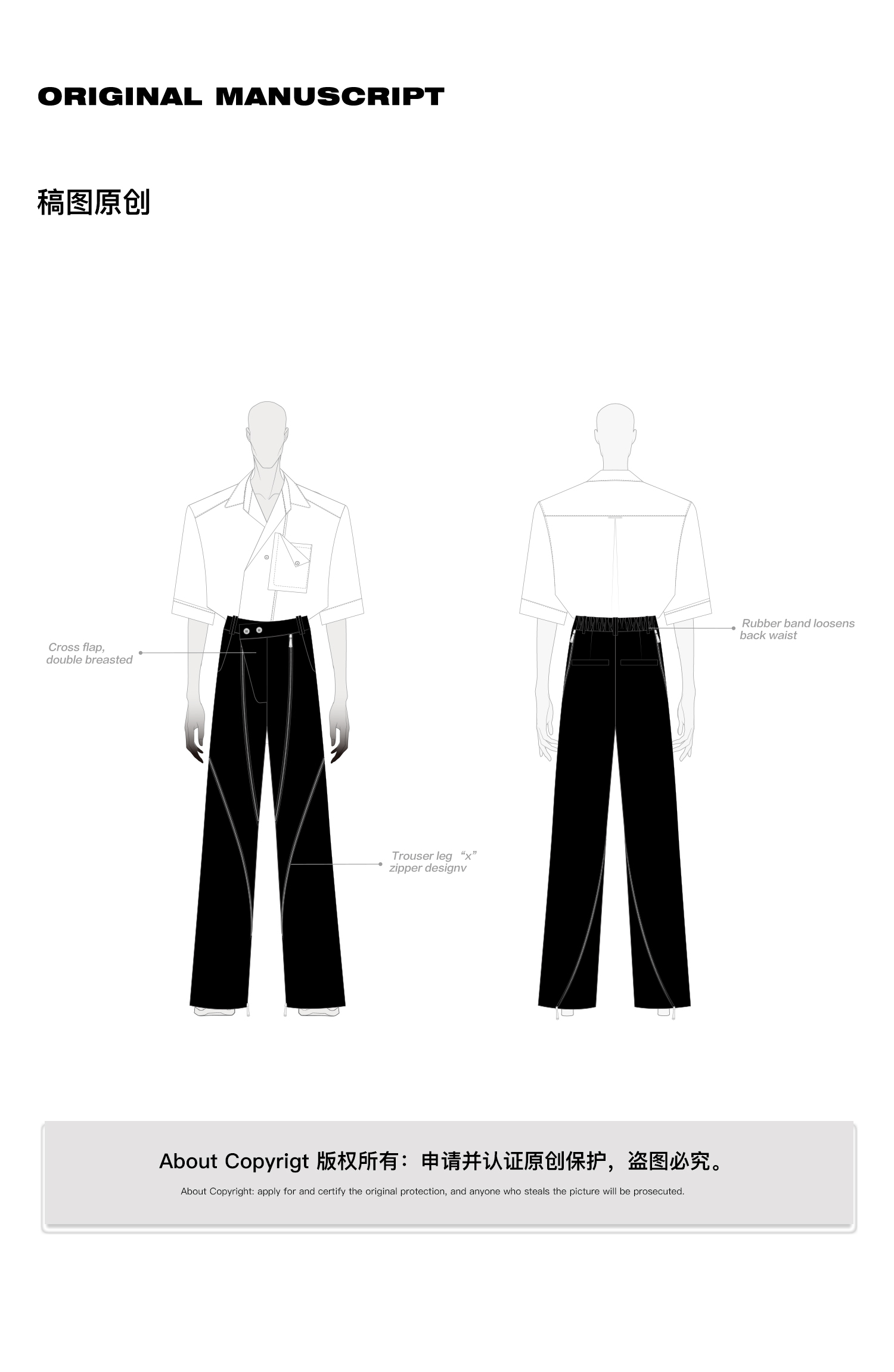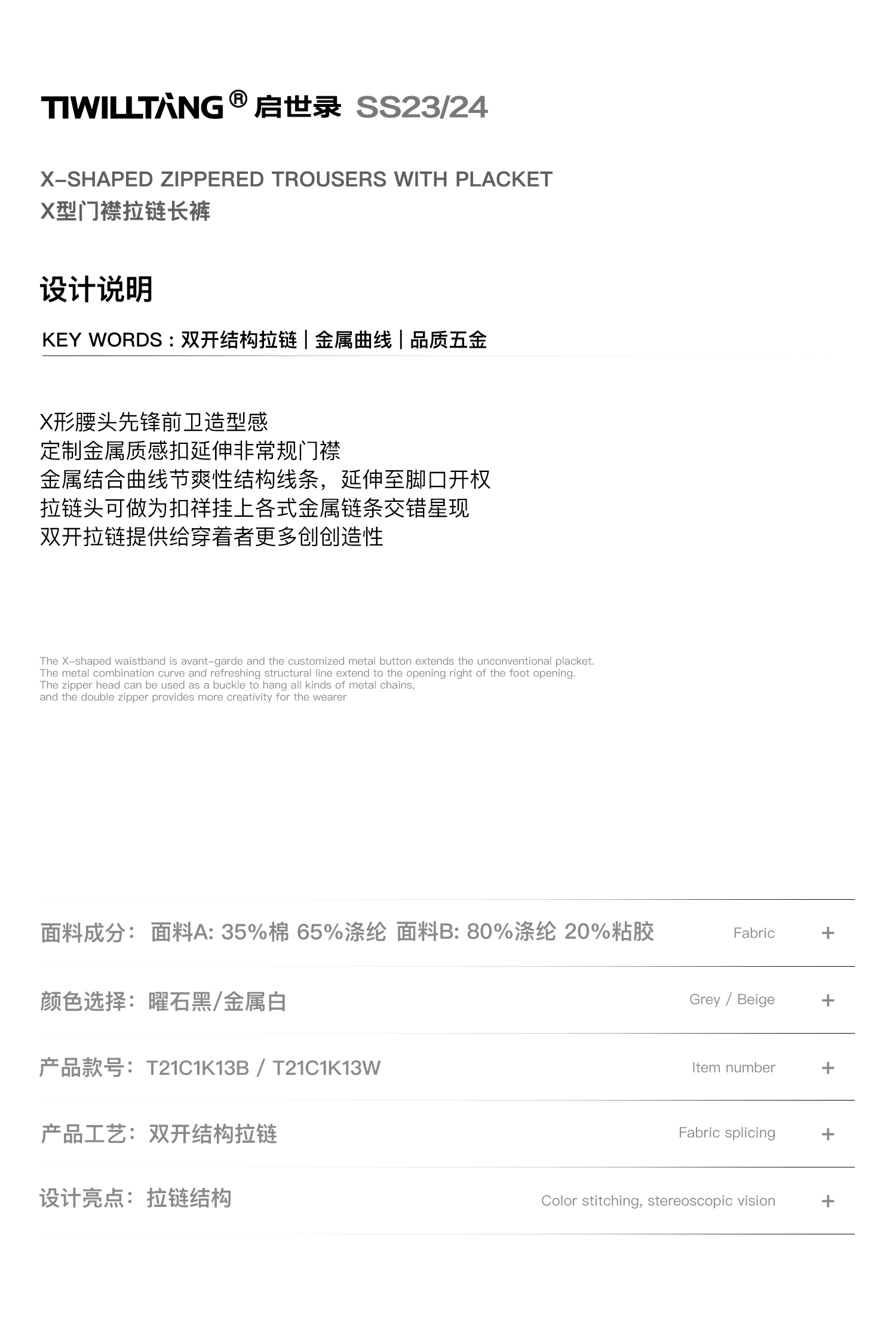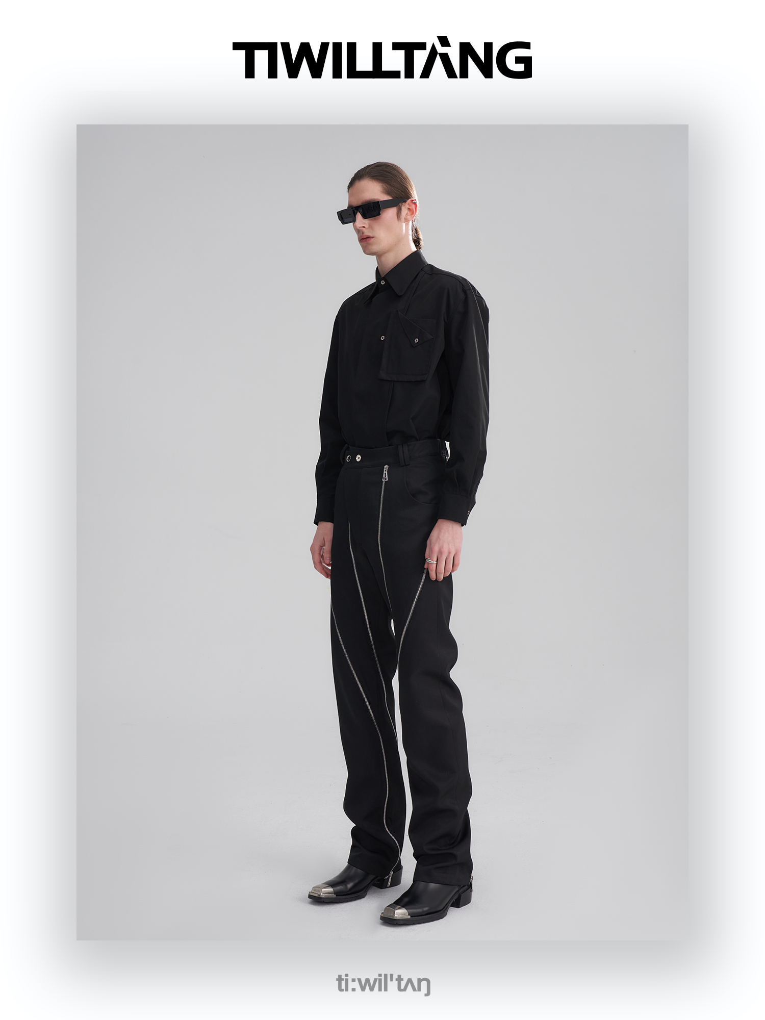 TIWILLTANG启世录 EXTENSION X型门襟休闲拉链长裤修身