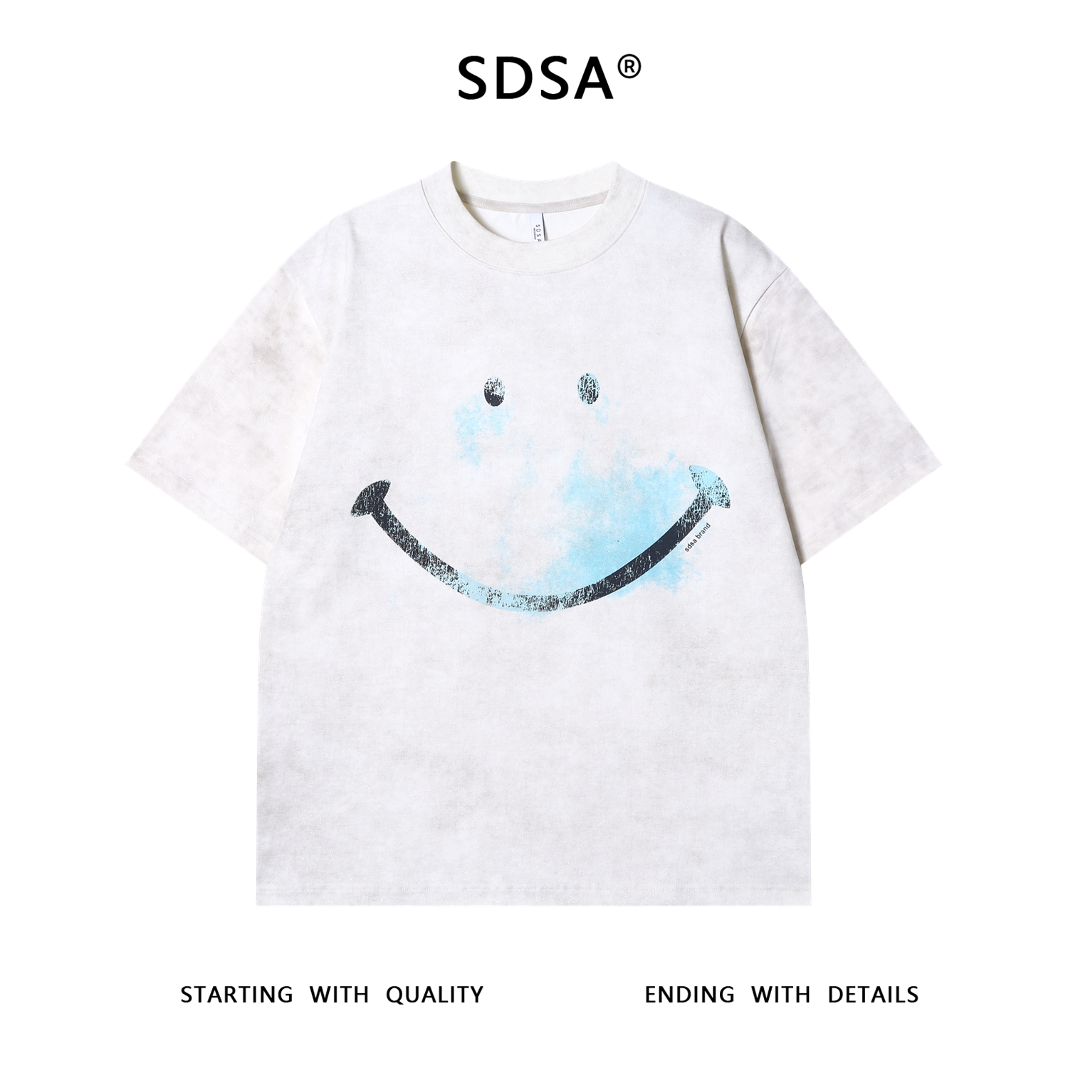 T3497夏季高级感新款男士满天星笑脸印花圆领短袖T恤情侣时尚简约上衣