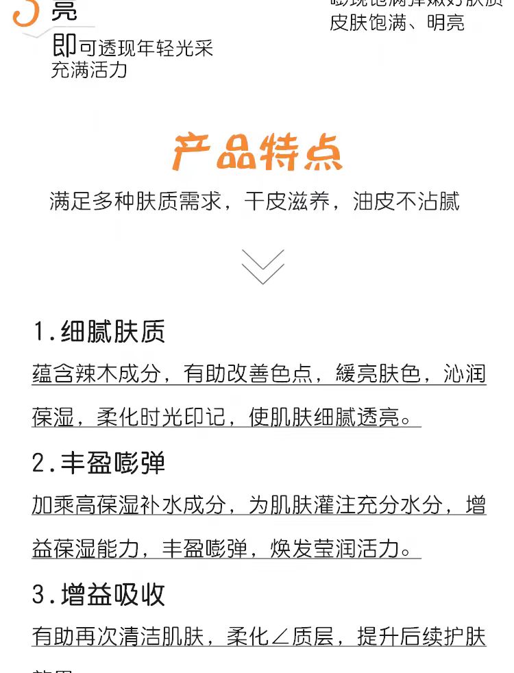 1.护肤品成分各有不同,敏感性肌肤的人士请先在耳后进行测试后再使用。