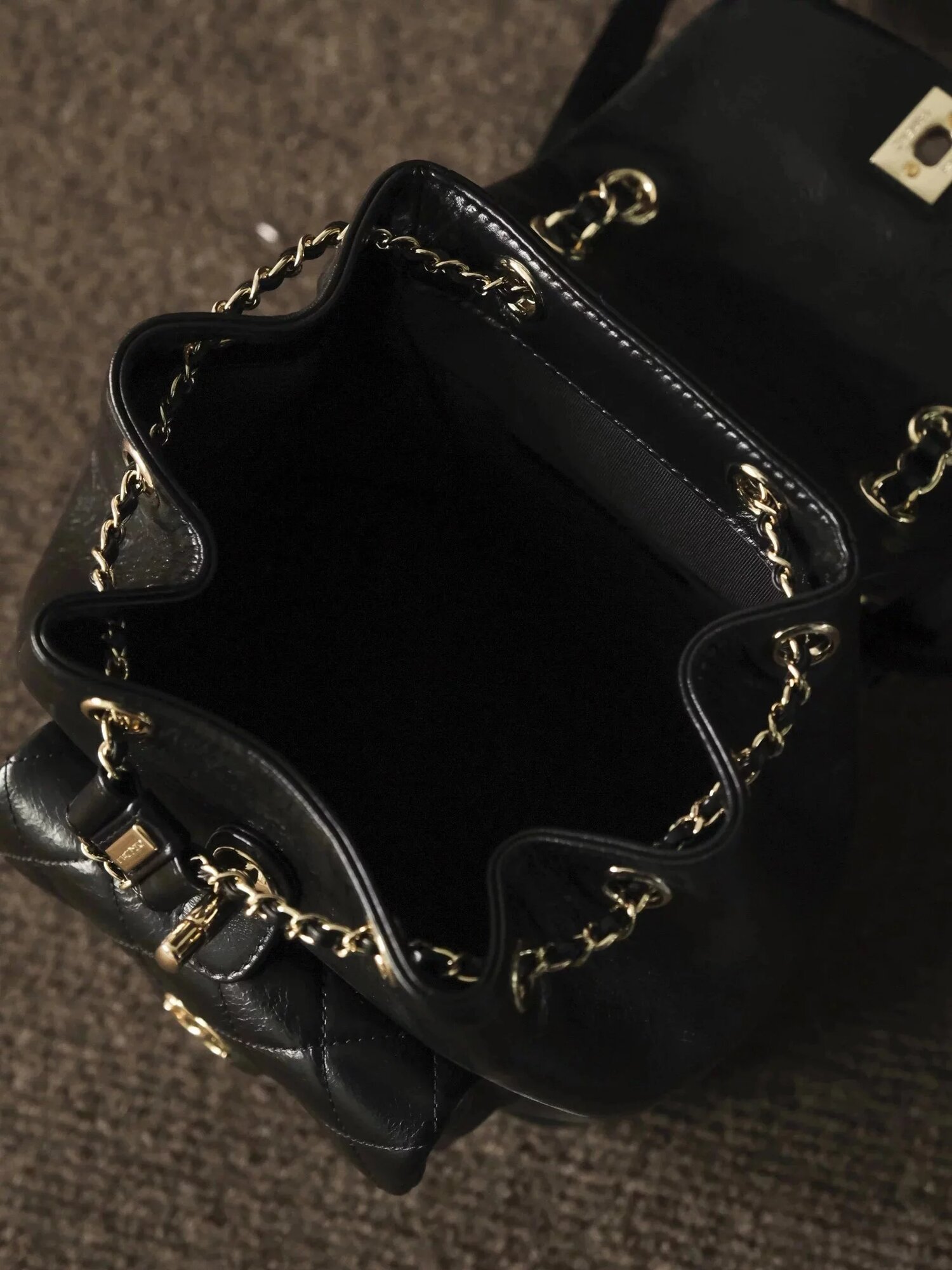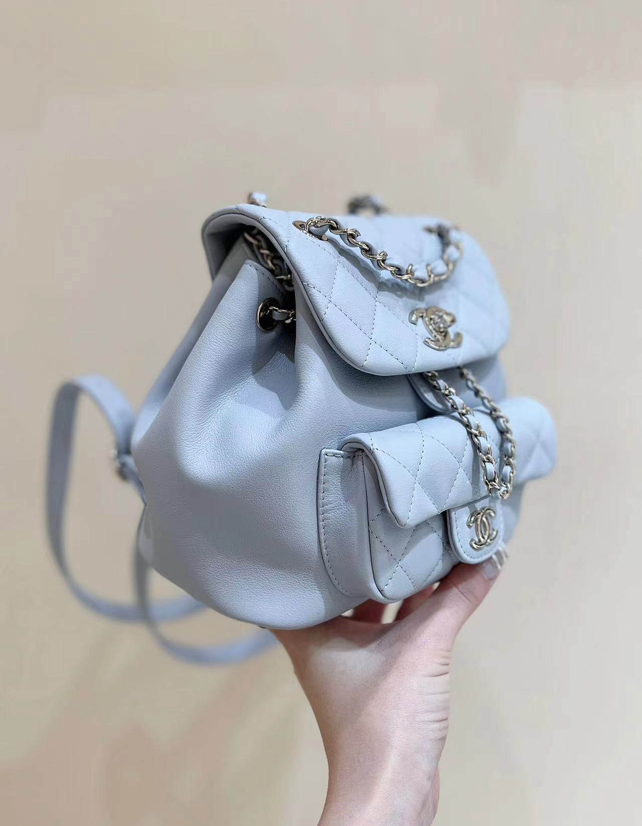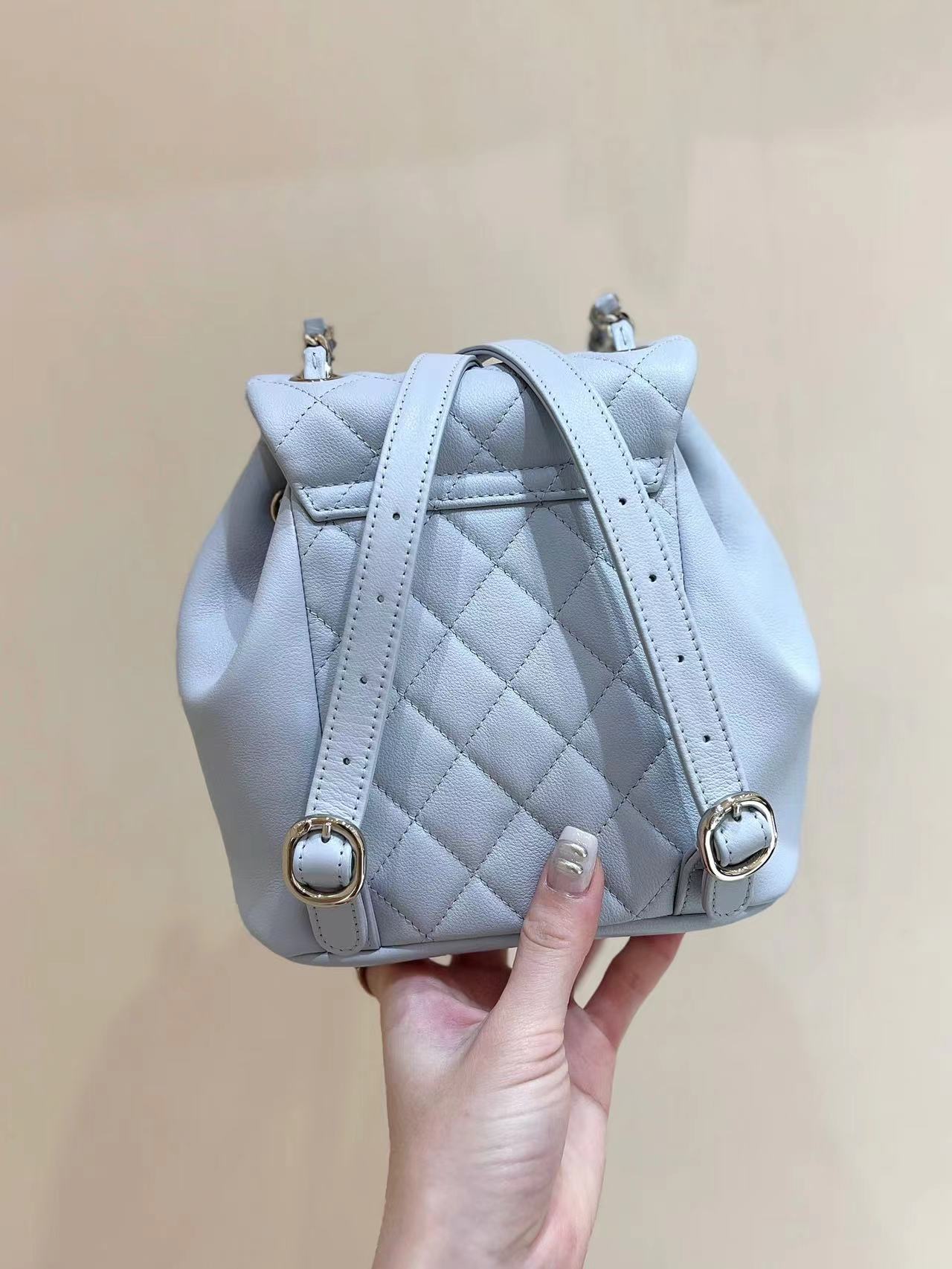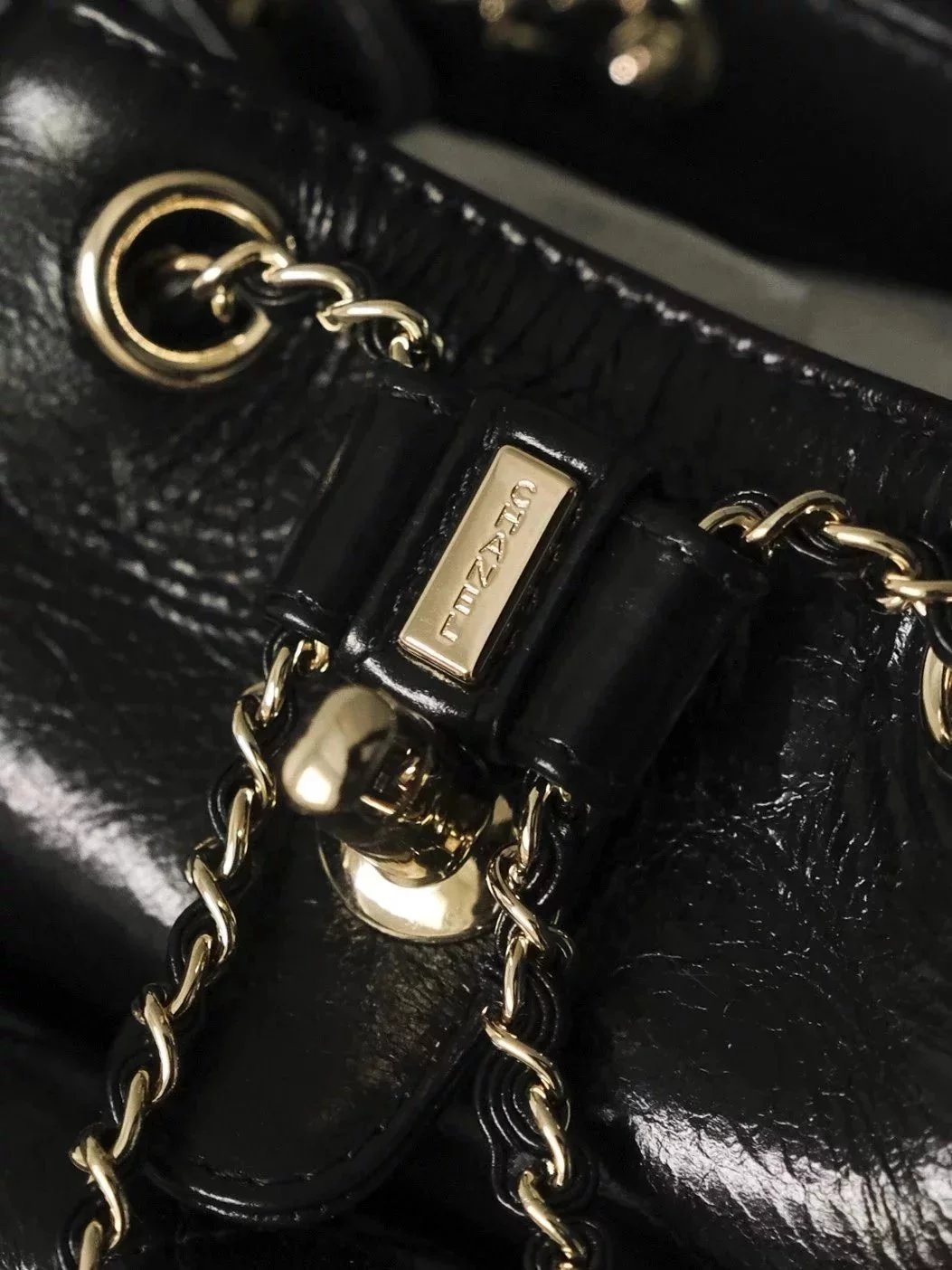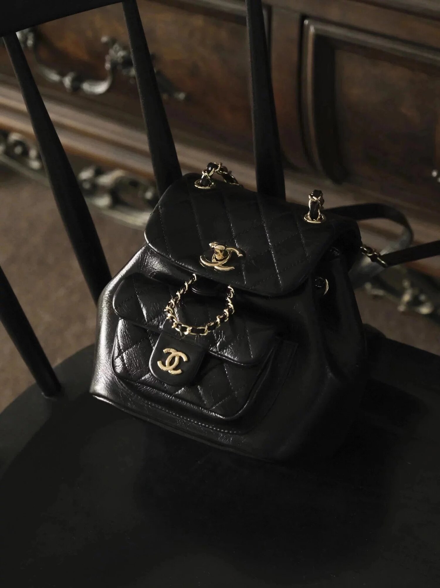 度假系列duma双肩mini小书包 别看它身材小,容量足够满足日常所需! 原厂油蜡小牛皮的质感非常好且耐造! 定制全钢的五金,非常好用! 背带的长度还可以调节,双孔位设计,还可手拎。 是这一季值得入手的包包! 尺寸:18.5x18x12cm