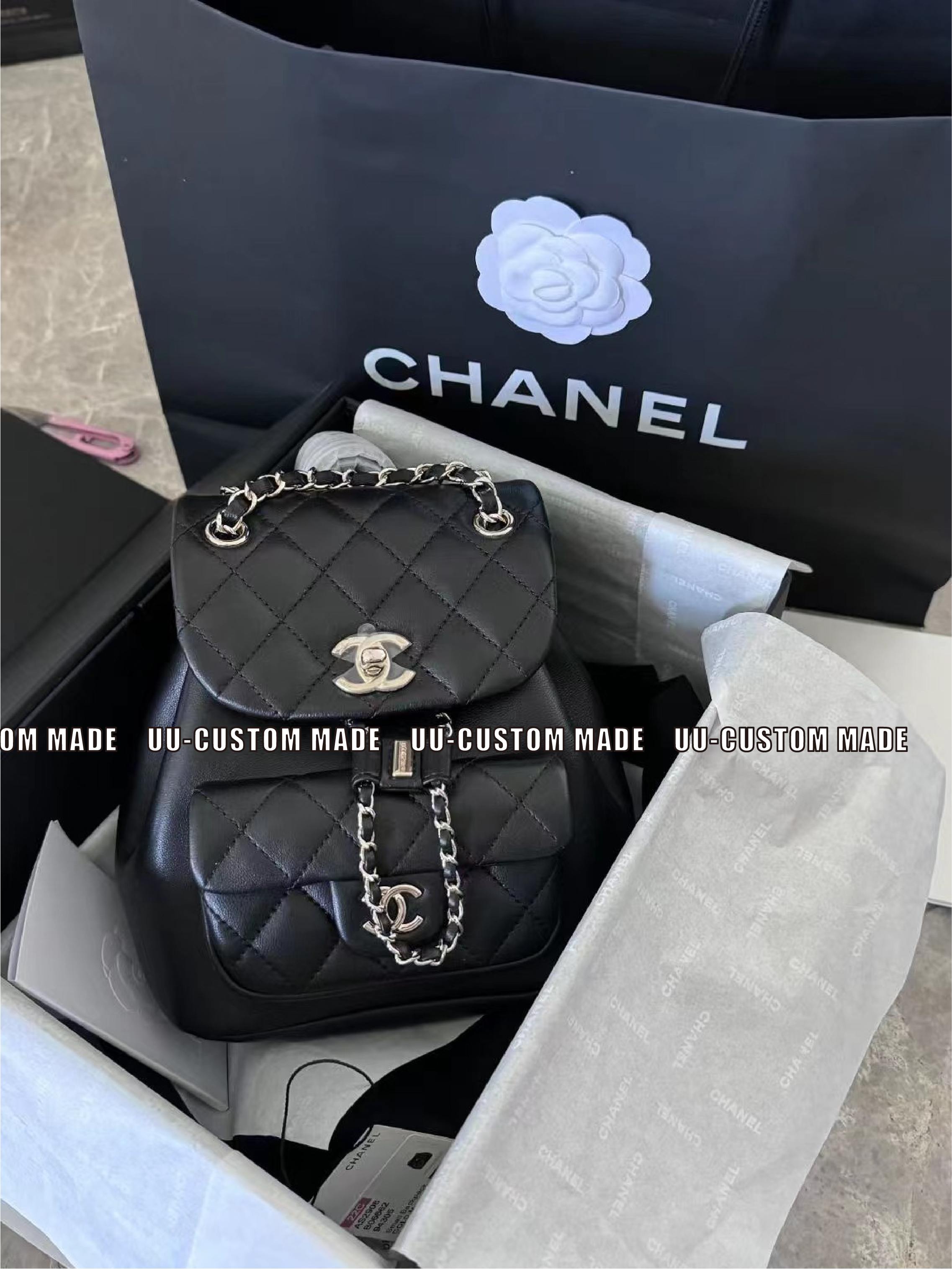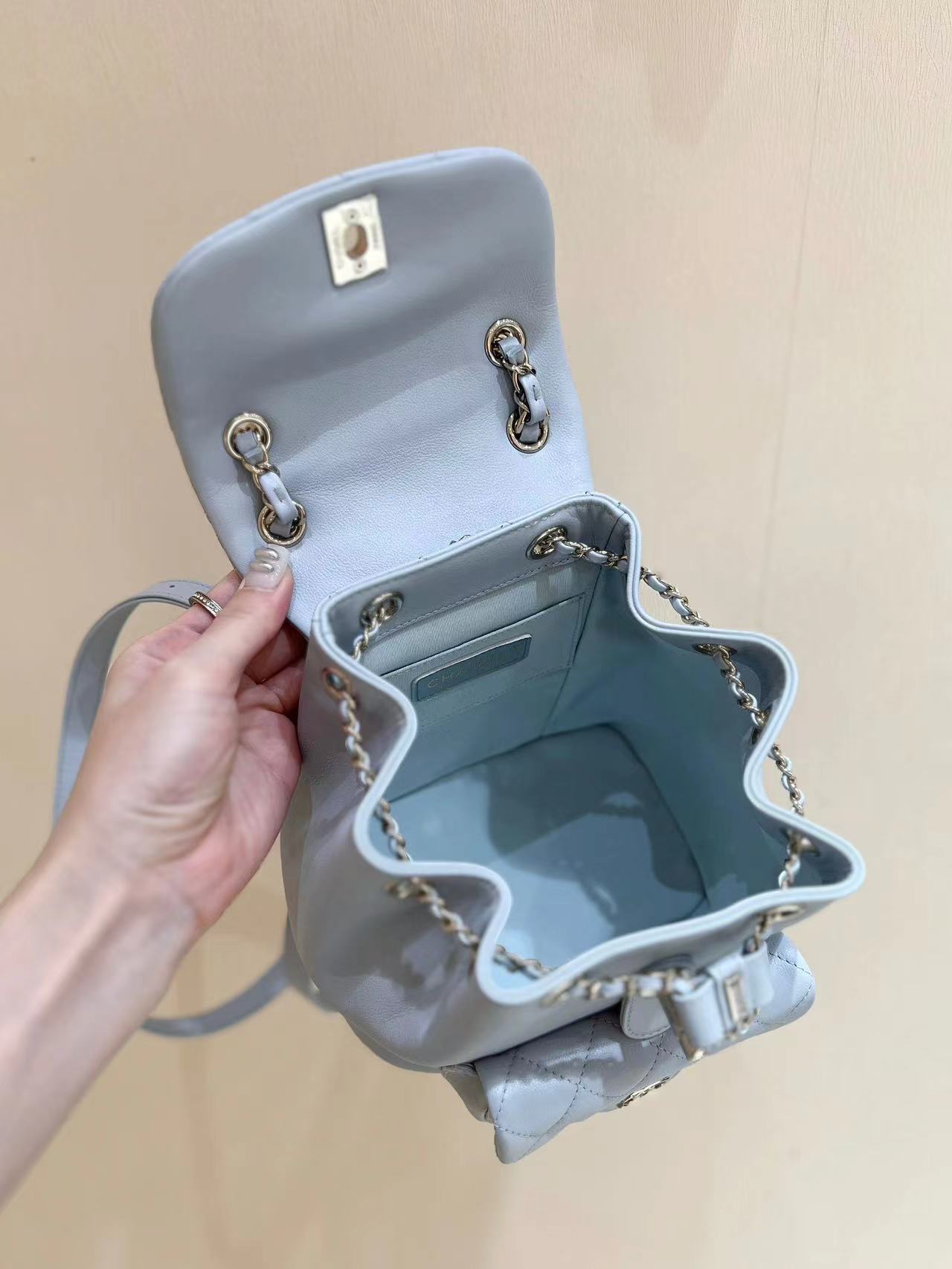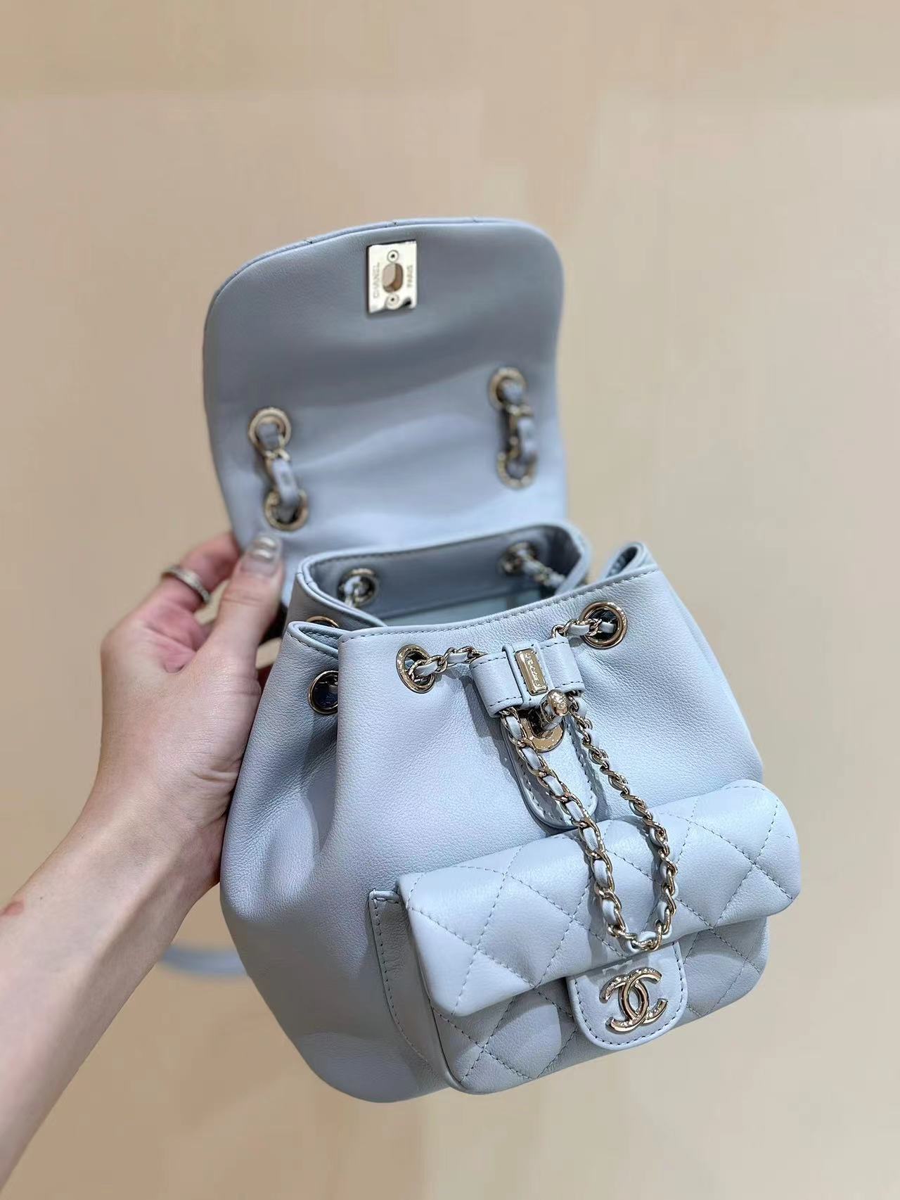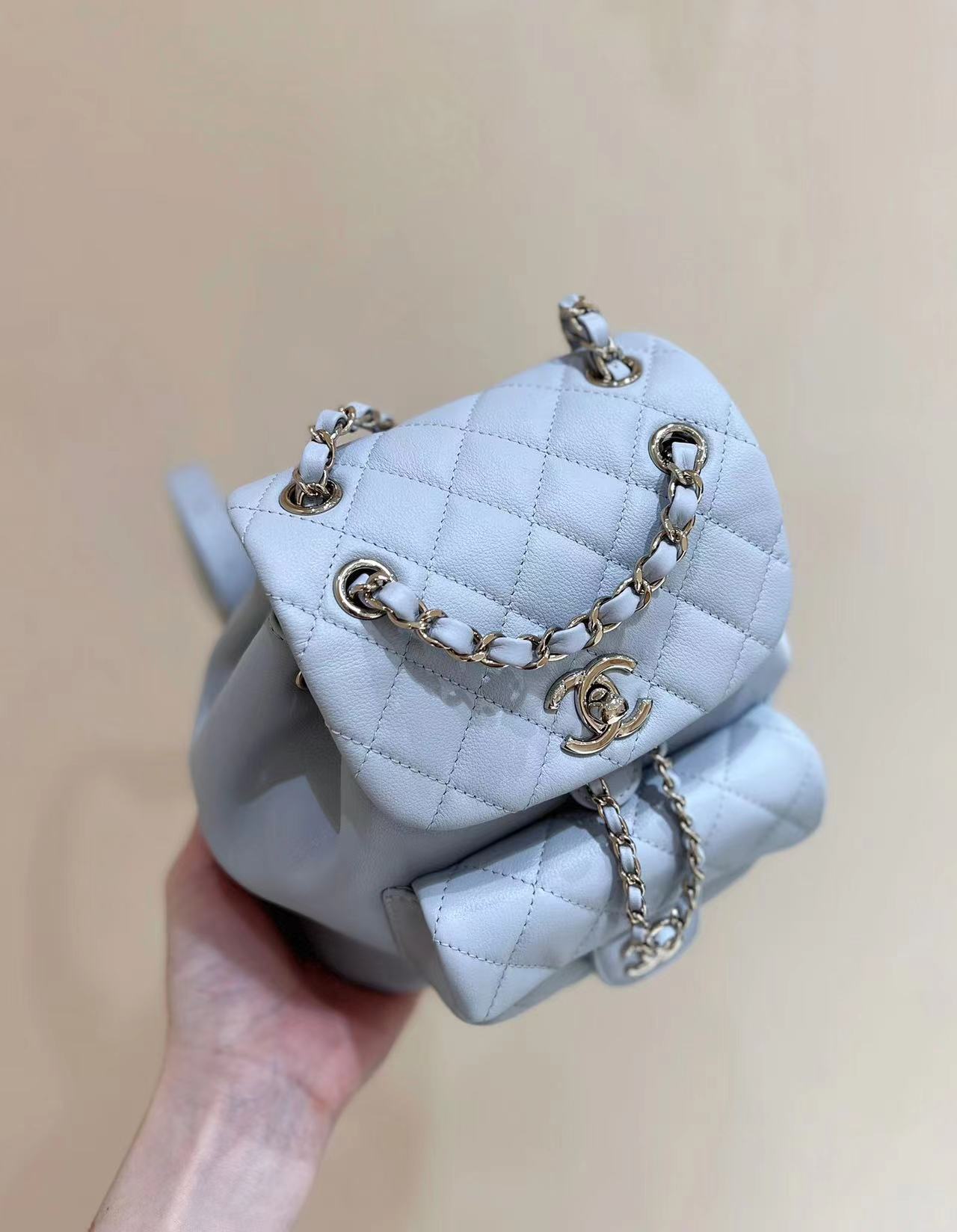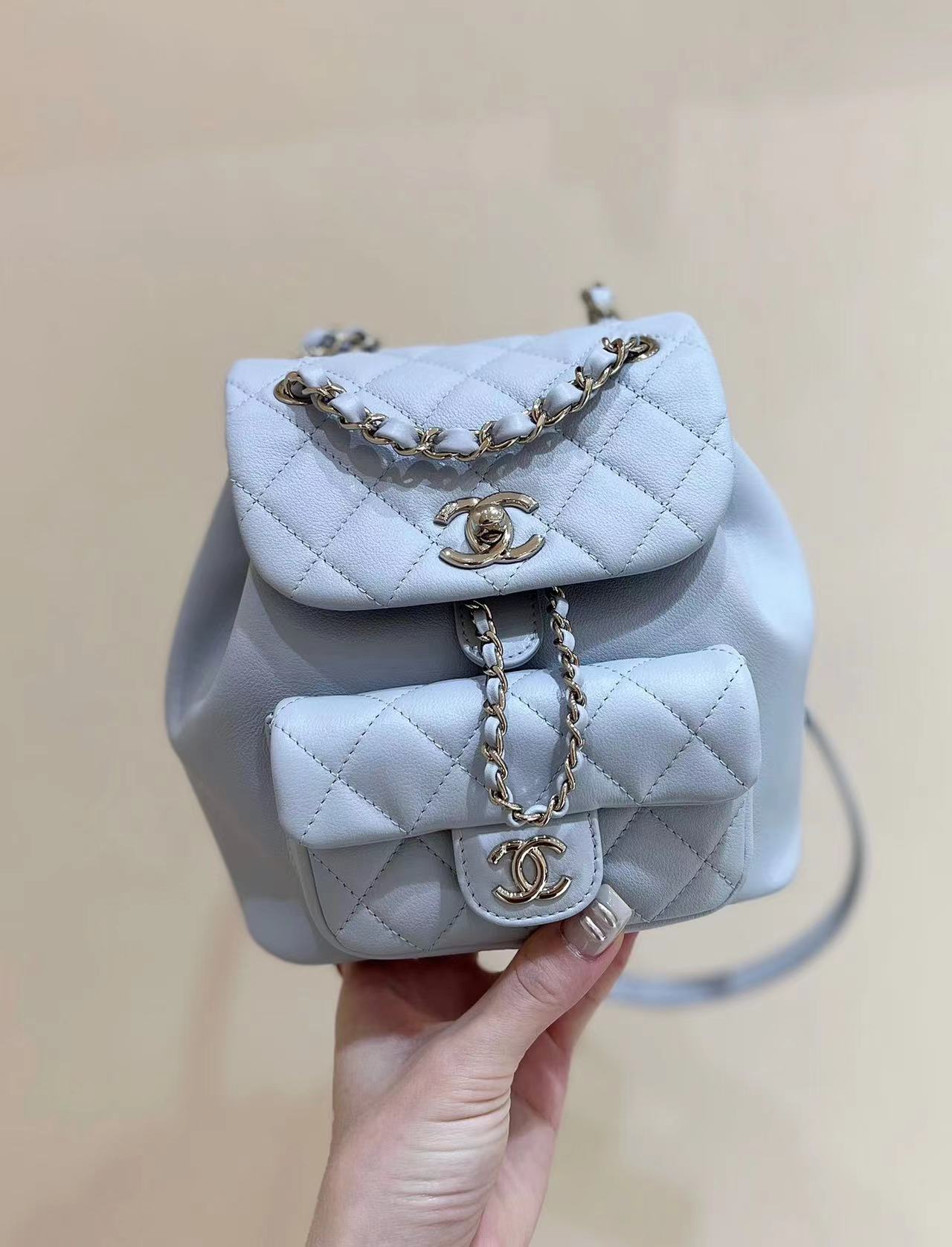 度假系列duma双肩mini小书包 别看它身材小,容量足够满足日常所需! 原厂油蜡小牛皮的质感非常好且耐造! 定制全钢的五金,非常好用! 背带的长度还可以调节,双孔位设计,还可手拎。 是这一季值得入手的包包! 尺寸:18.5x18x12cm