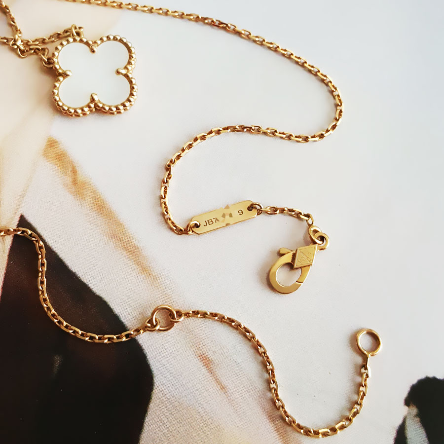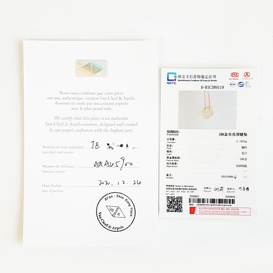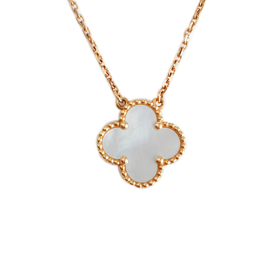 【95新】VCA梵克雅宝Vintage Alhambra系列VCARA45900 中号18K黄金镶白贝母四叶草白花项链链长约42cm女士211125NJS05