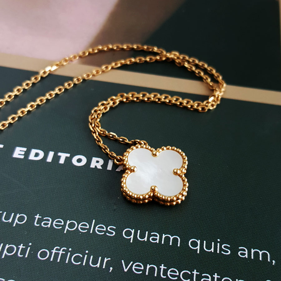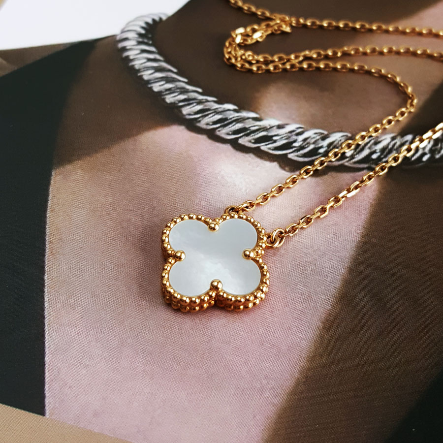款式 | 中号18K黄金镶白贝母四叶草白花项链 |