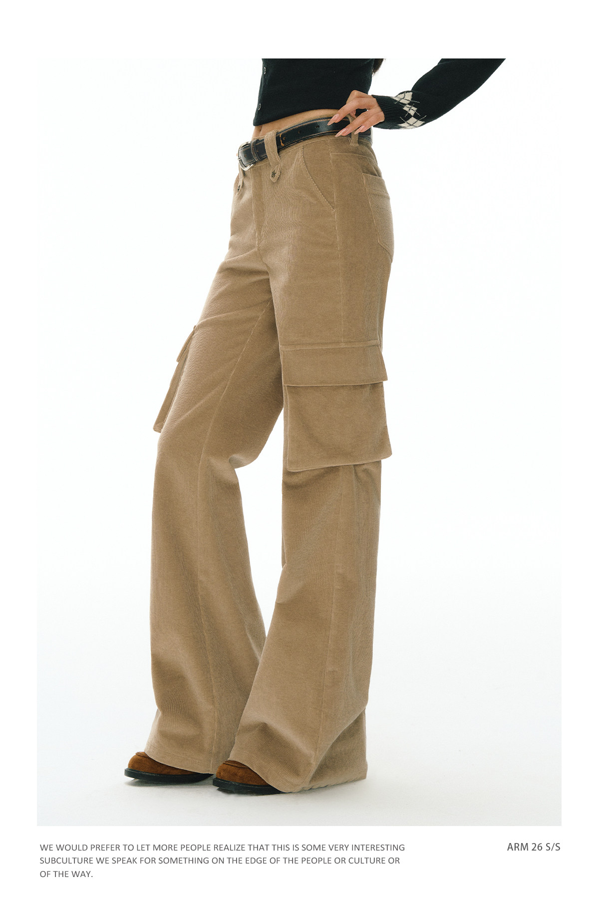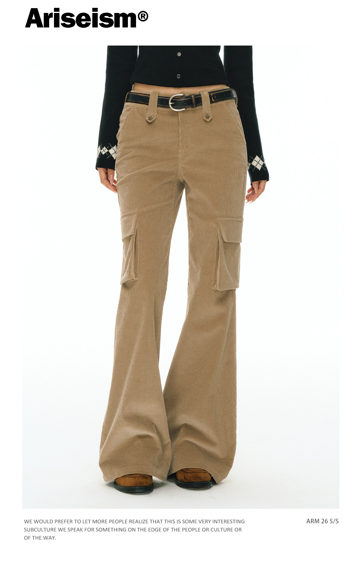 Ariseism 美式复古设计感卡其色休闲裤女春季新款工装长裤