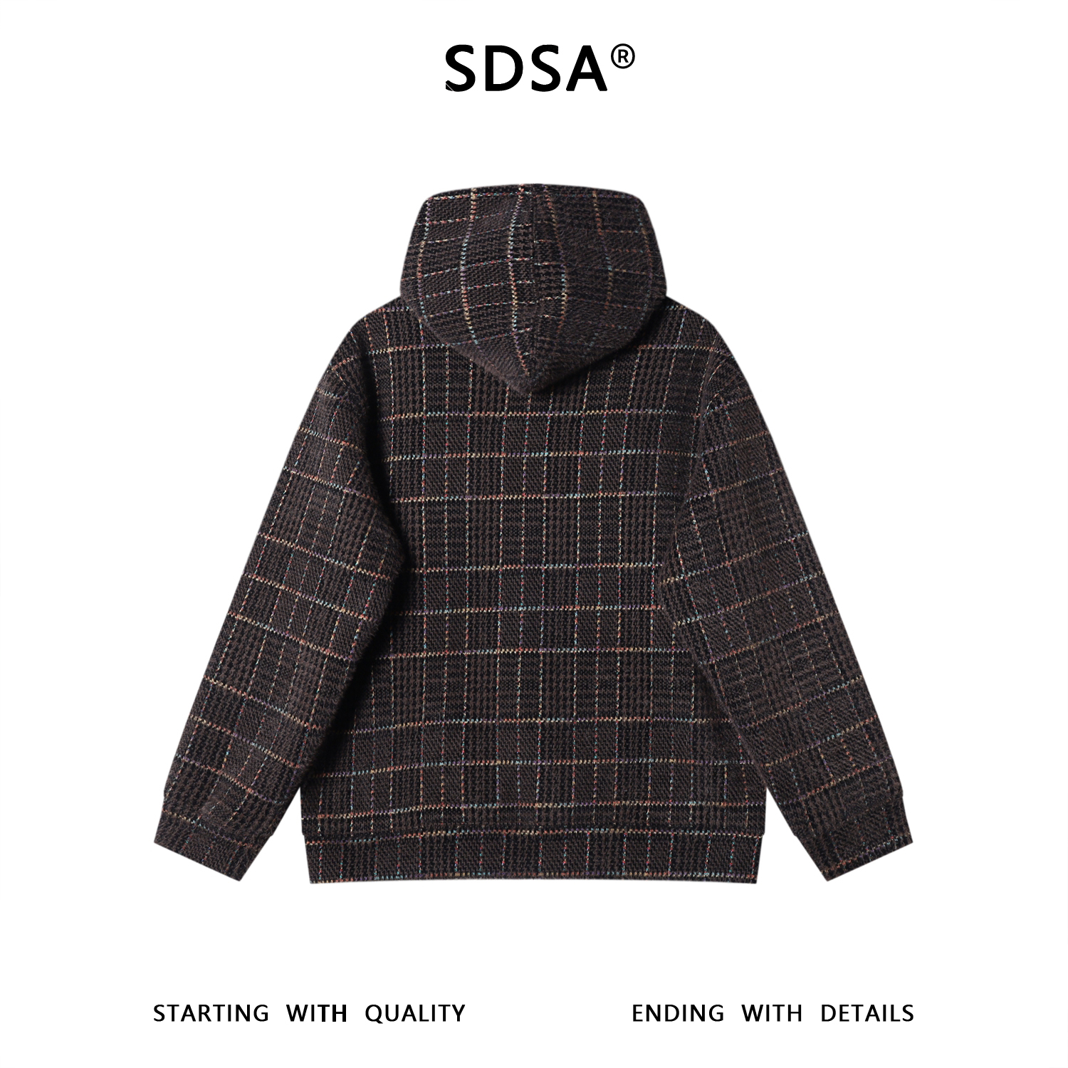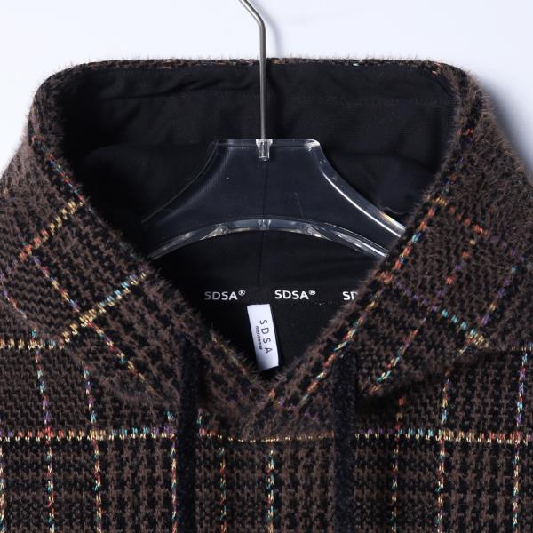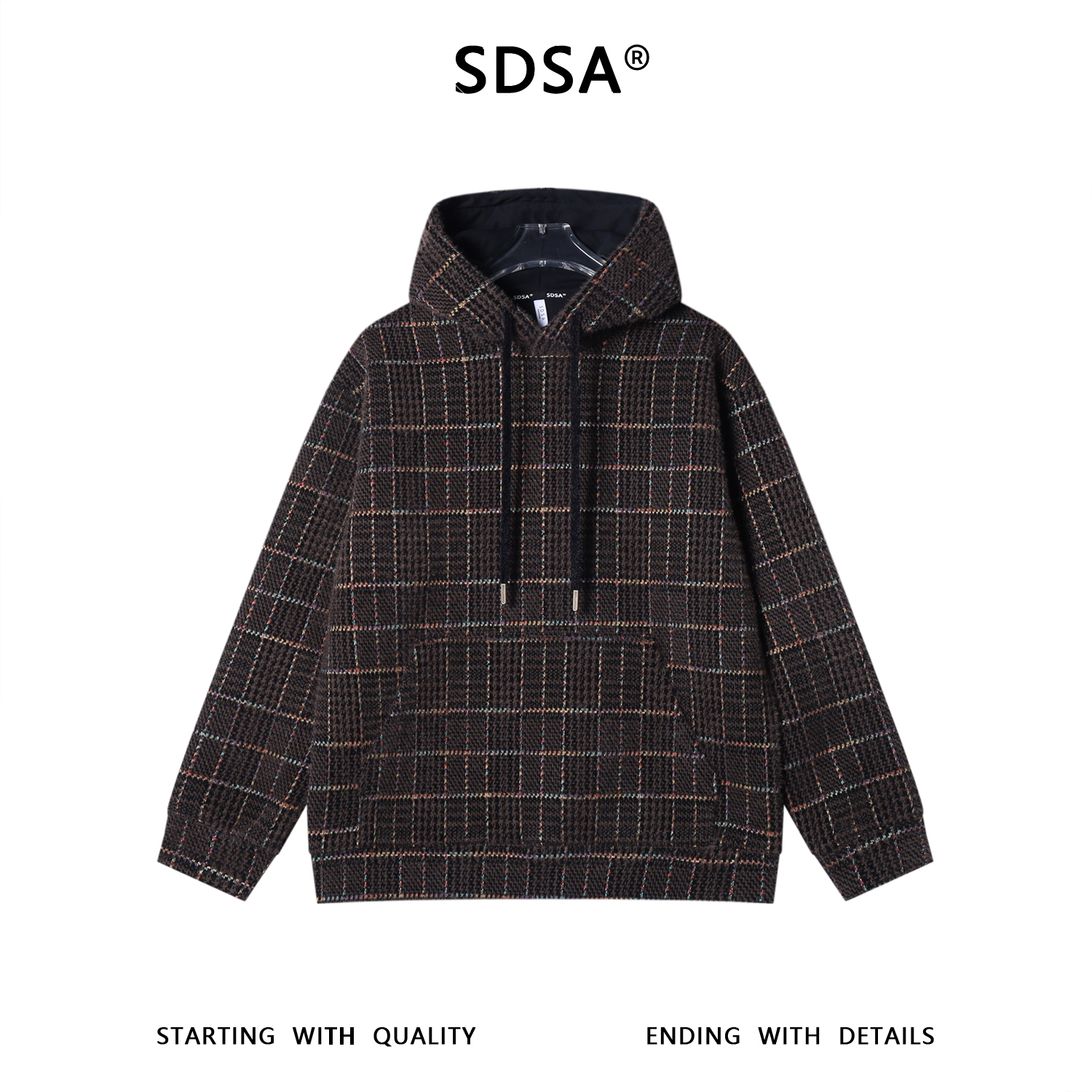WY1405SDSA男士秋冬新款痞帅男装复古彩色格纹绒毛连帽卫衣设计感百搭潮