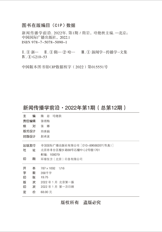 新闻传播学前沿·2022年第1期(中国国际广播出版社)