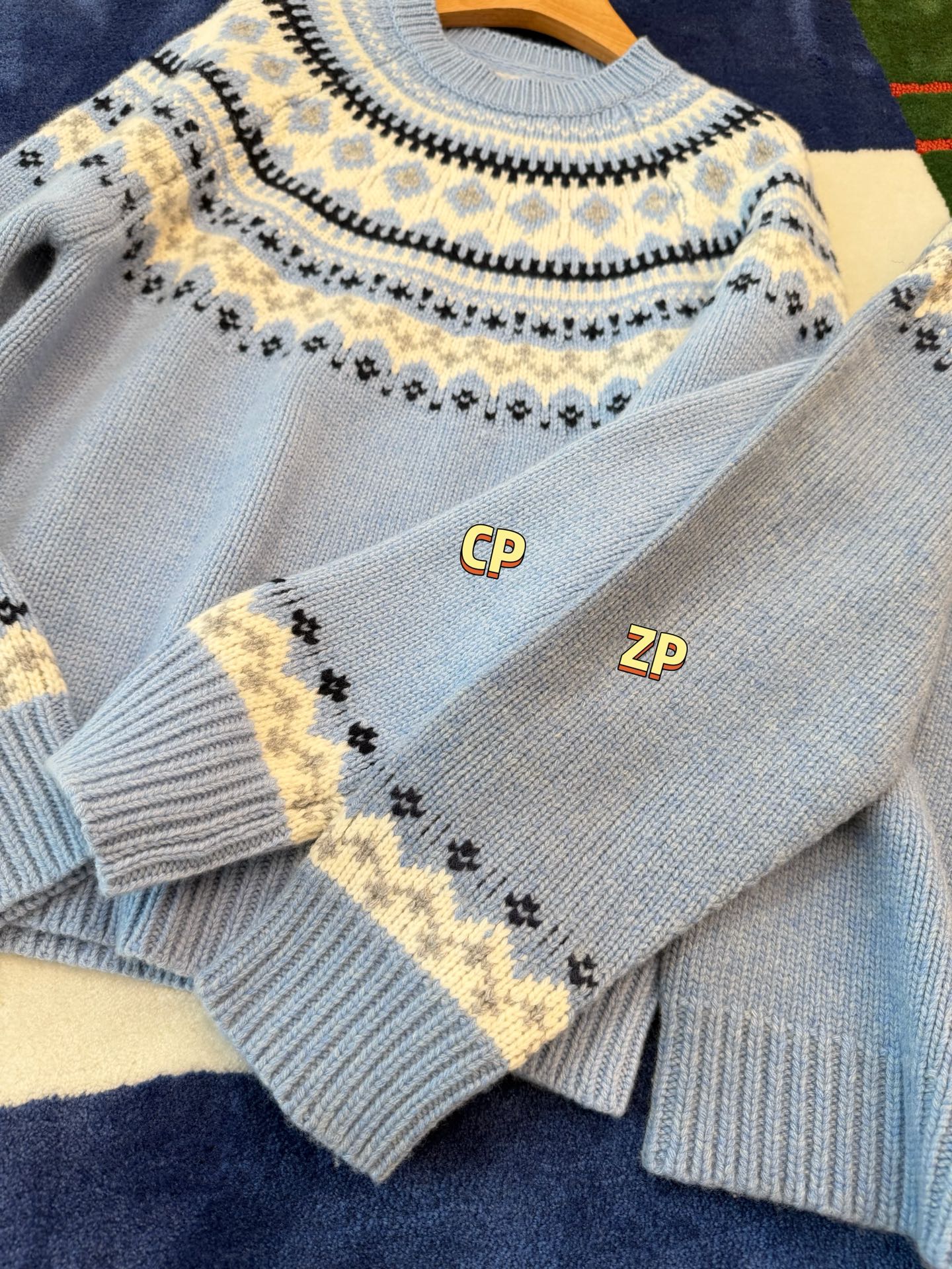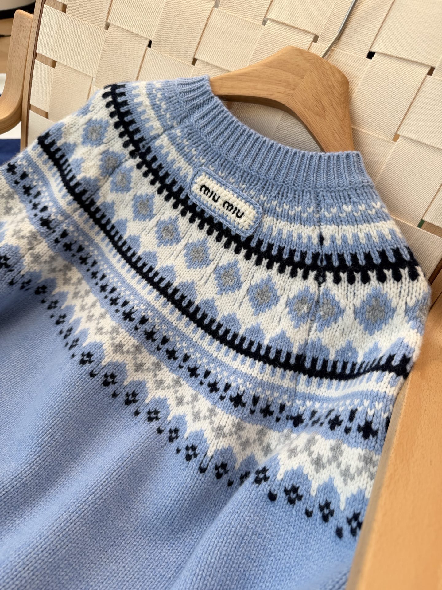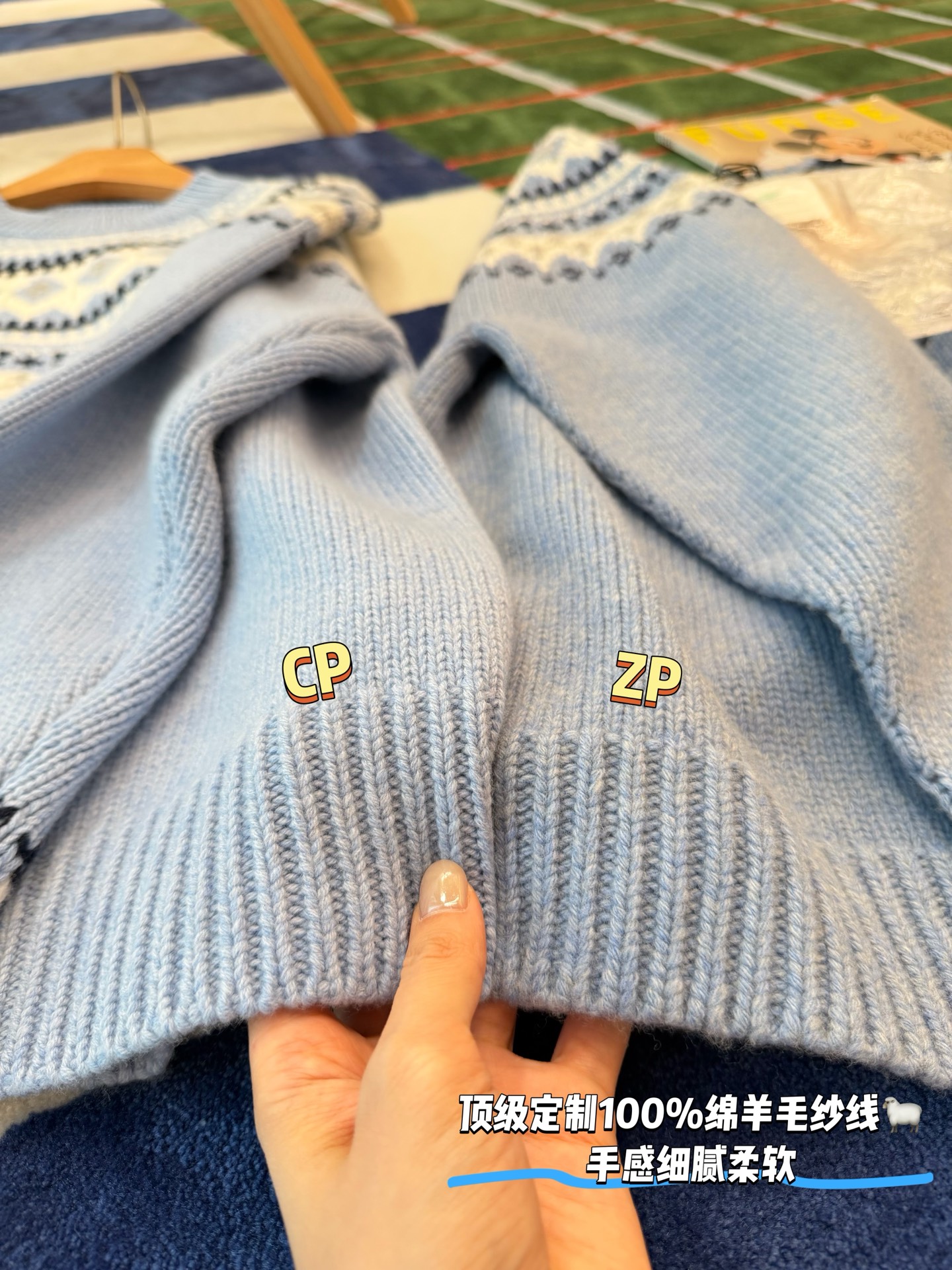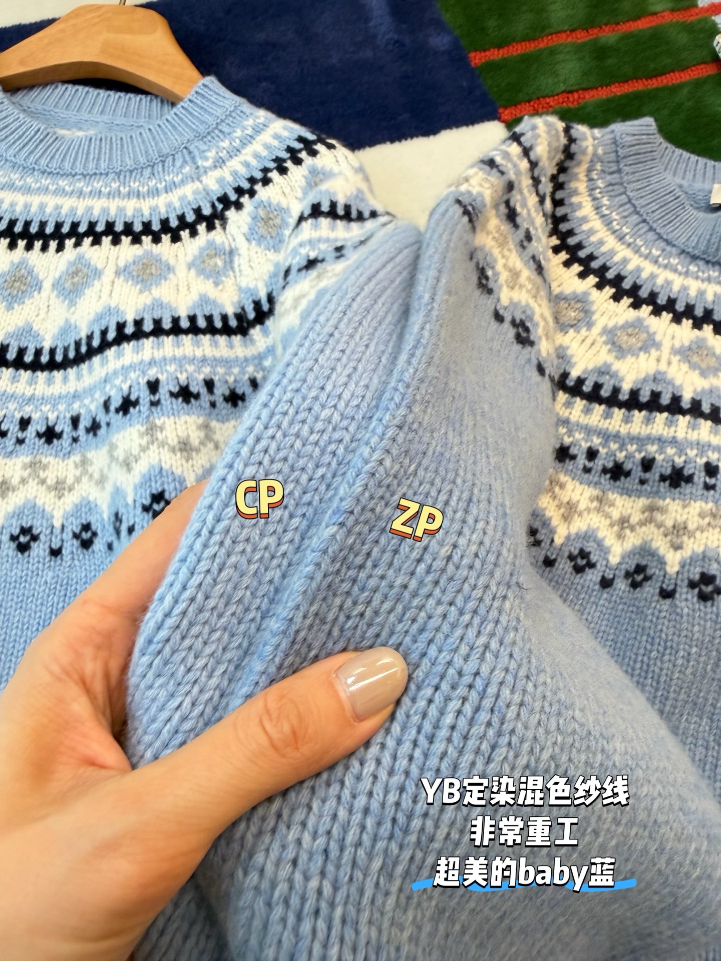 最最最新款,baby蓝费尔岛毛衣,一见倾心的奶呼呼色调,简直是温柔界的天花板, 经典苏格兰提花,线条立体,质感高级, 创新无缝编织,融合传统工匠技艺与现代科技, 定制定染纱线,色彩高级零色差0️⃣ 厚实而柔软✨完美零色差,穿起来完全不会扎,宽松版型,藏肉又显瘦, 颜值与舒适度双双在线➕必入的宝藏单品🥳码数SML