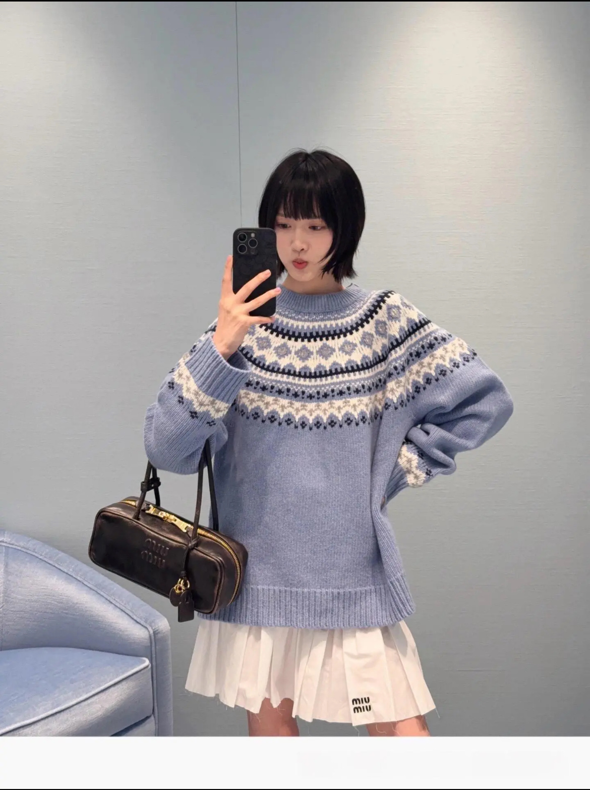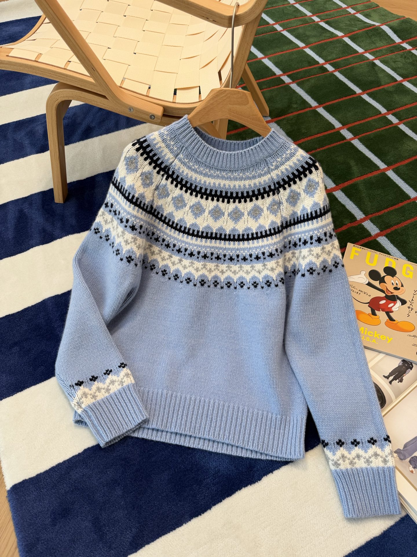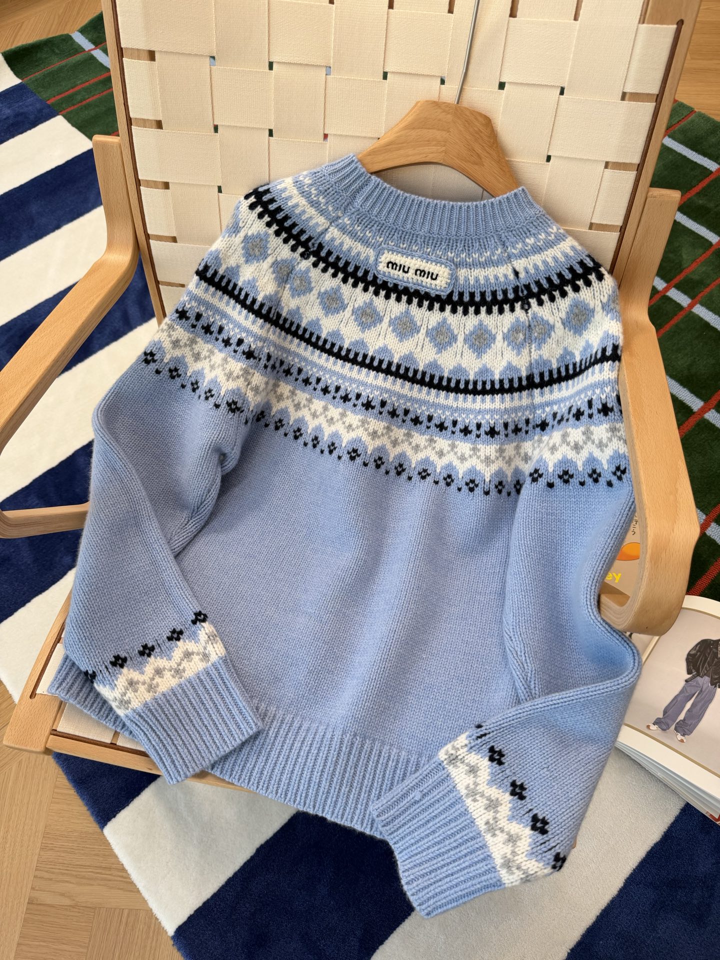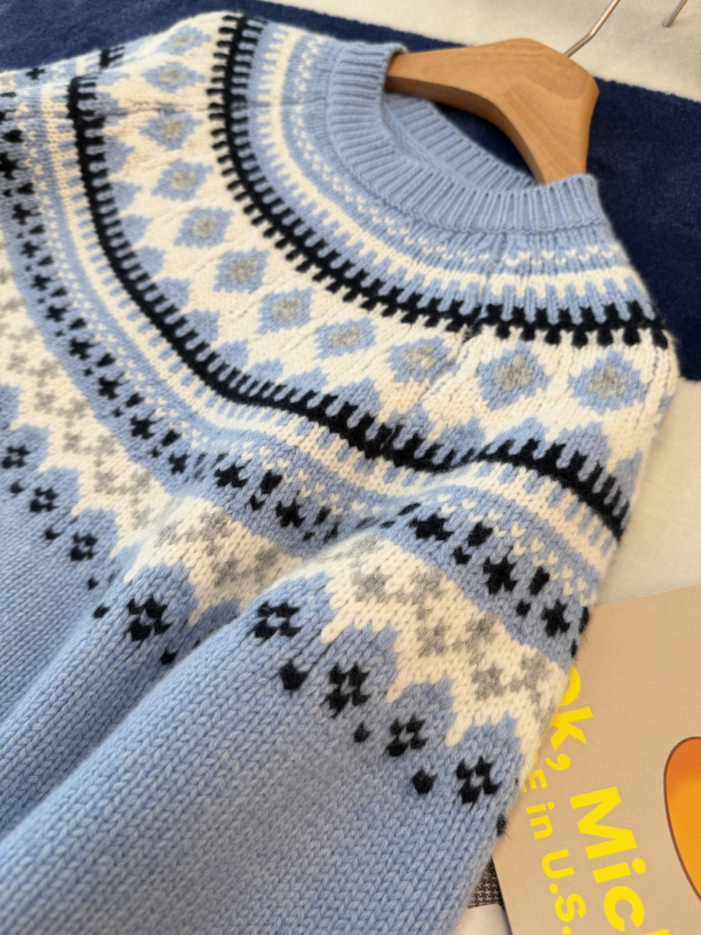 最最最新款,baby蓝费尔岛毛衣,一见倾心的奶呼呼色调,简直是温柔界的天花板, 经典苏格兰提花,线条立体,质感高级, 创新无缝编织,融合传统工匠技艺与现代科技, 定制定染纱线,色彩高级零色差0️⃣ 厚实而柔软✨完美零色差,穿起来完全不会扎,宽松版型,藏肉又显瘦, 颜值与舒适度双双在线➕必入的宝藏单品🥳码数SML