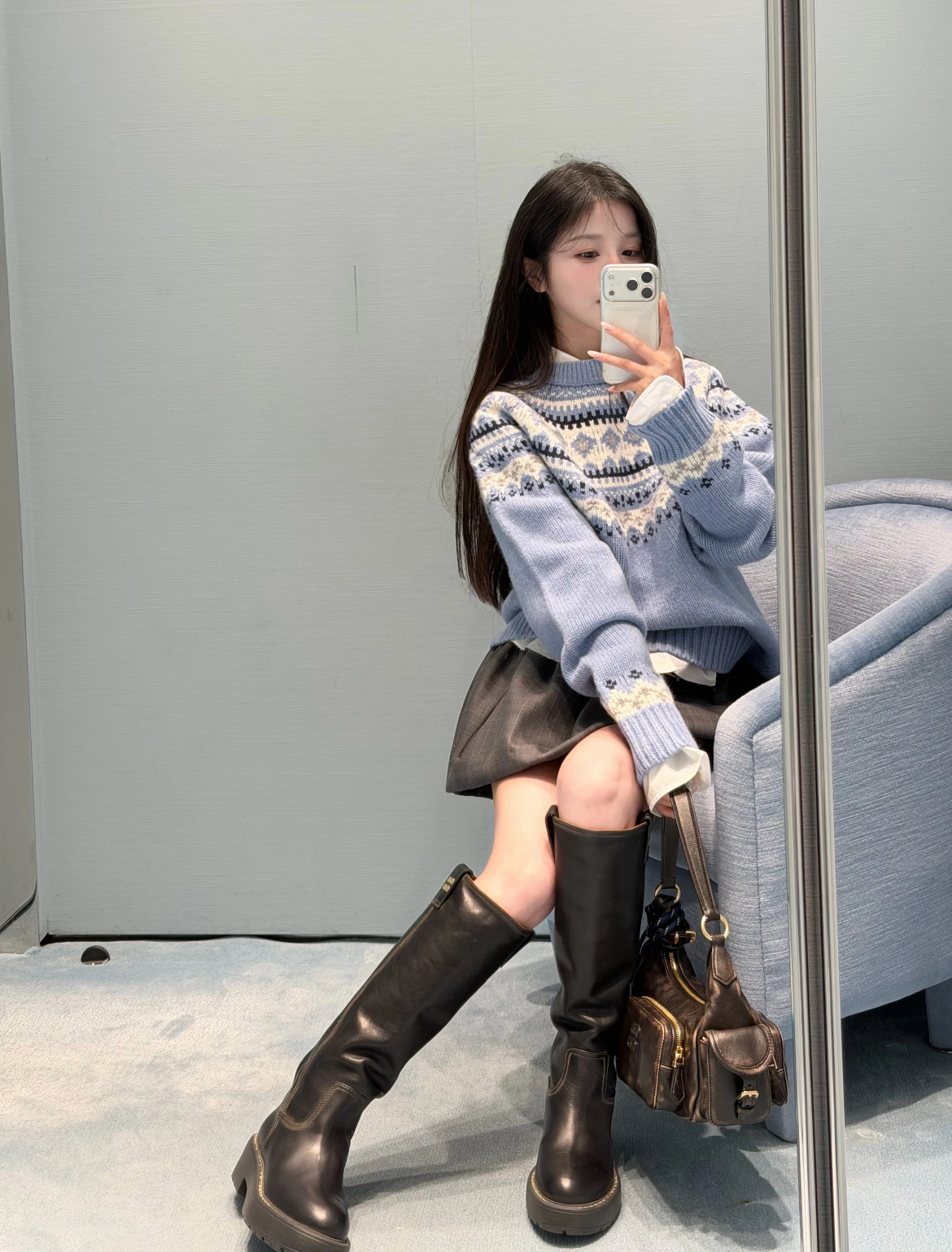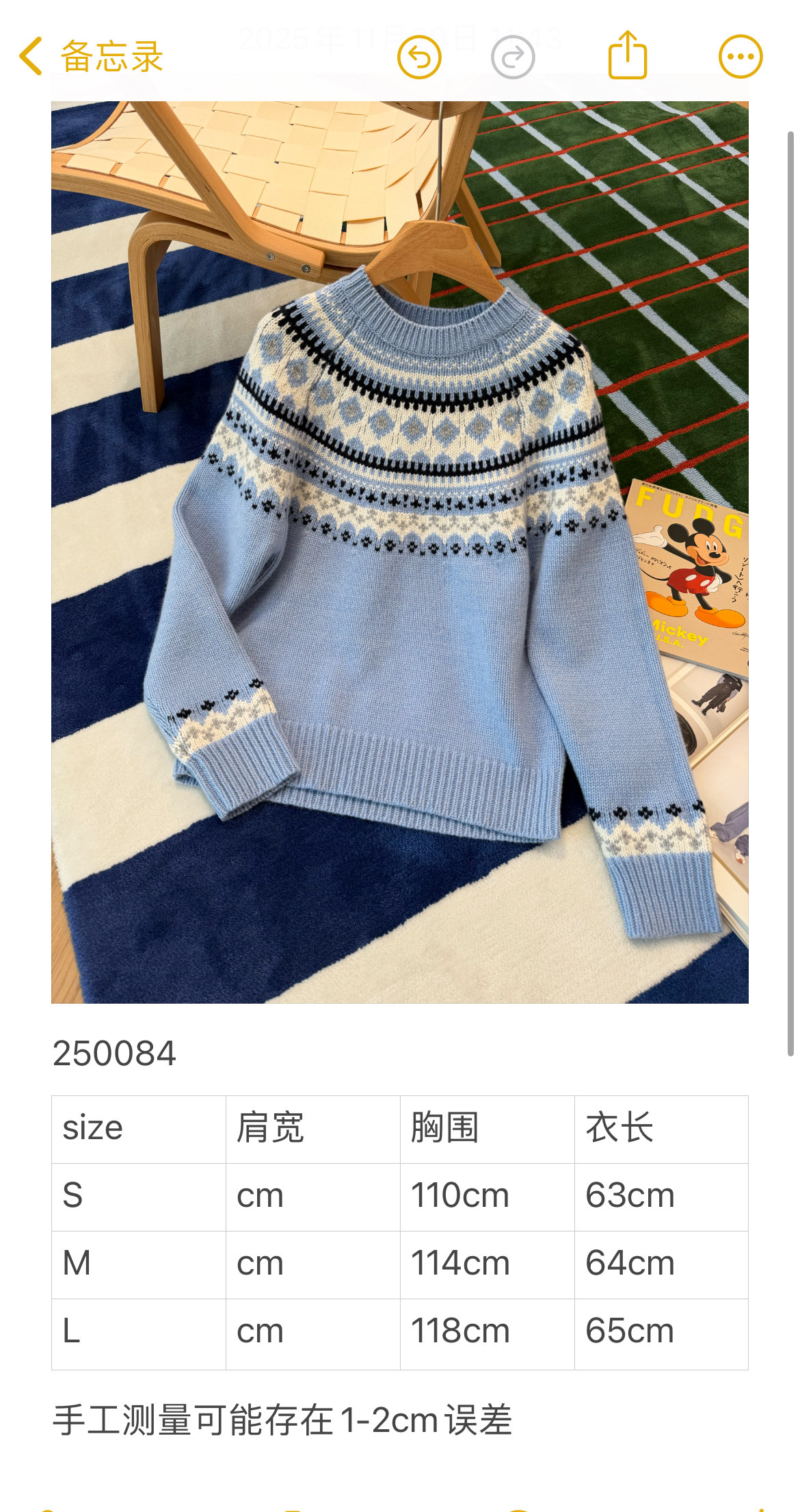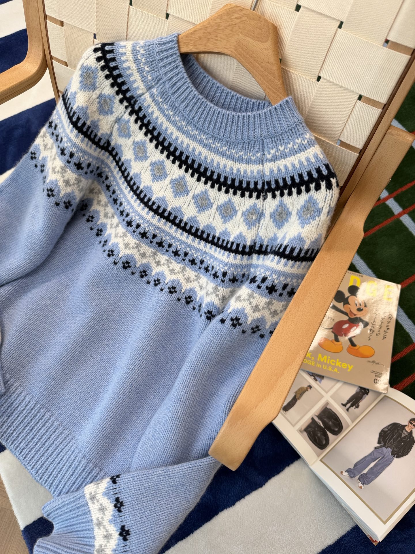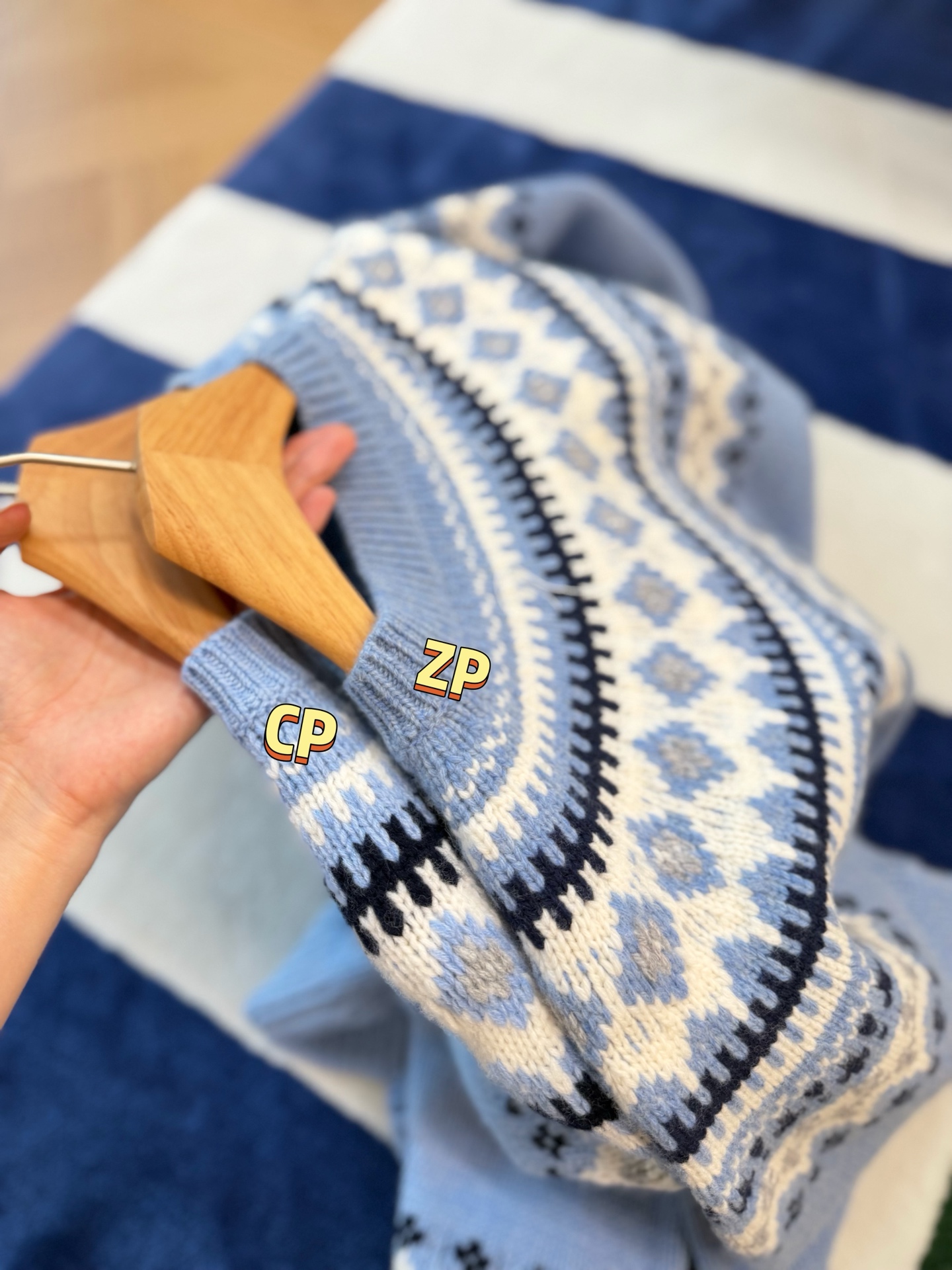 最最最新款,baby蓝费尔岛毛衣,一见倾心的奶呼呼色调,简直是温柔界的天花板, 经典苏格兰提花,线条立体,质感高级, 创新无缝编织,融合传统工匠技艺与现代科技, 定制定染纱线,色彩高级零色差0️⃣ 厚实而柔软✨完美零色差,穿起来完全不会扎,宽松版型,藏肉又显瘦, 颜值与舒适度双双在线➕必入的宝藏单品🥳码数SML