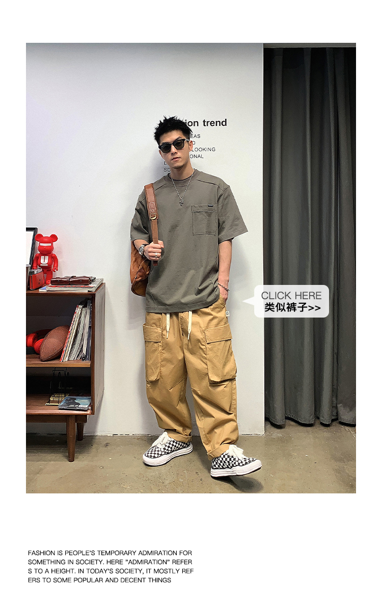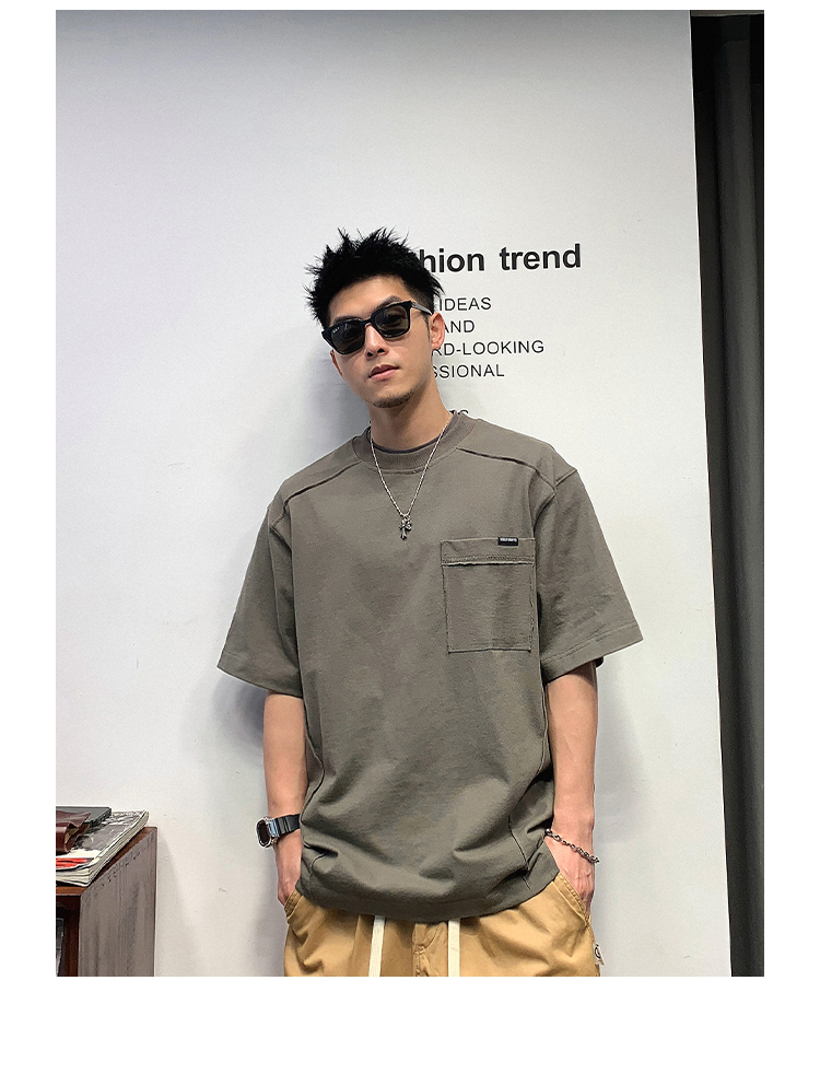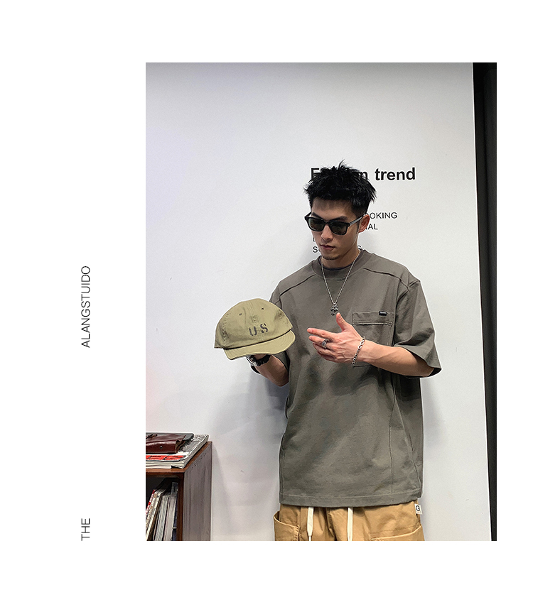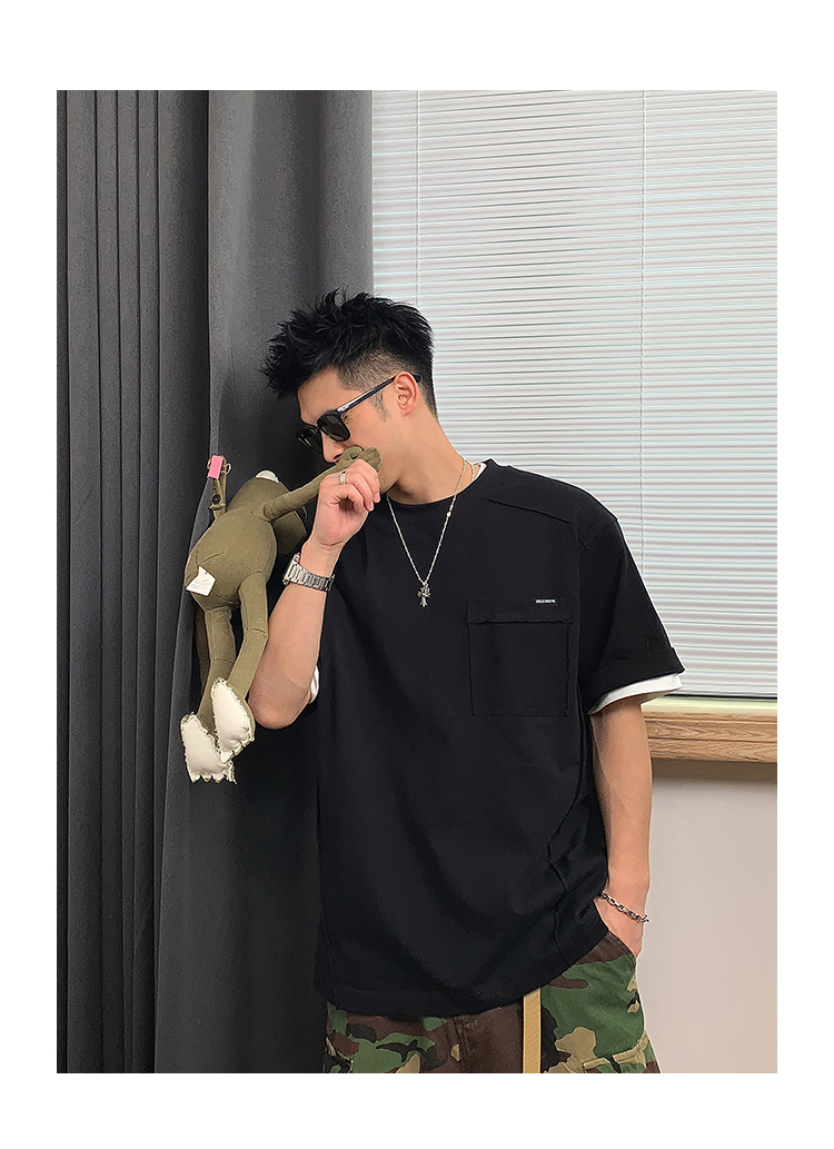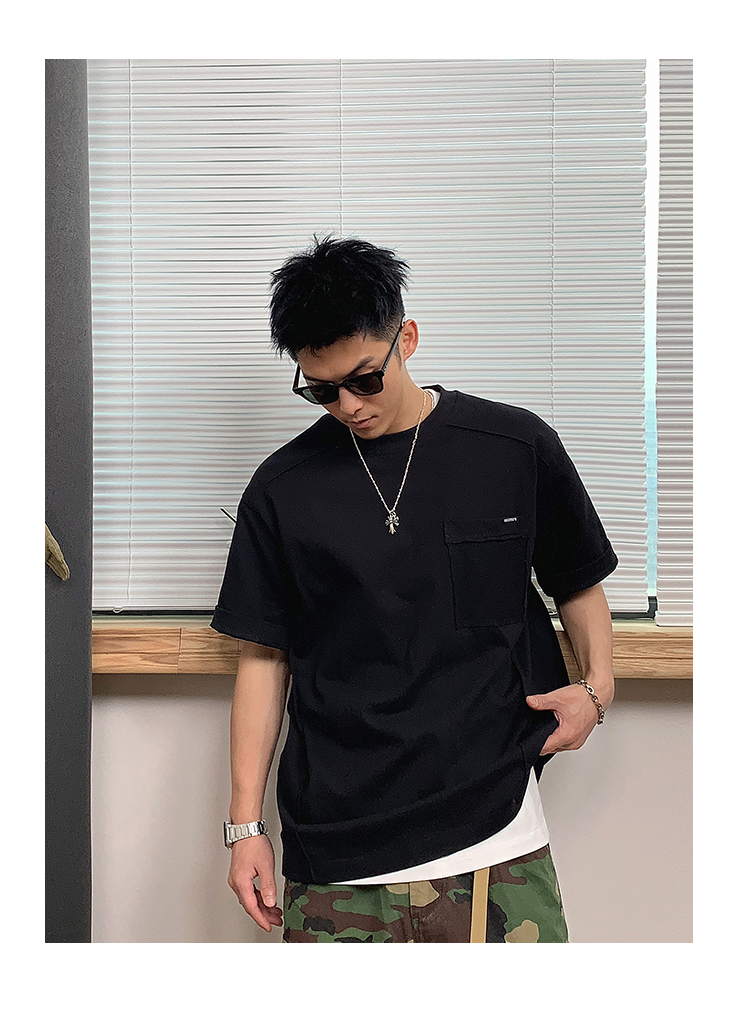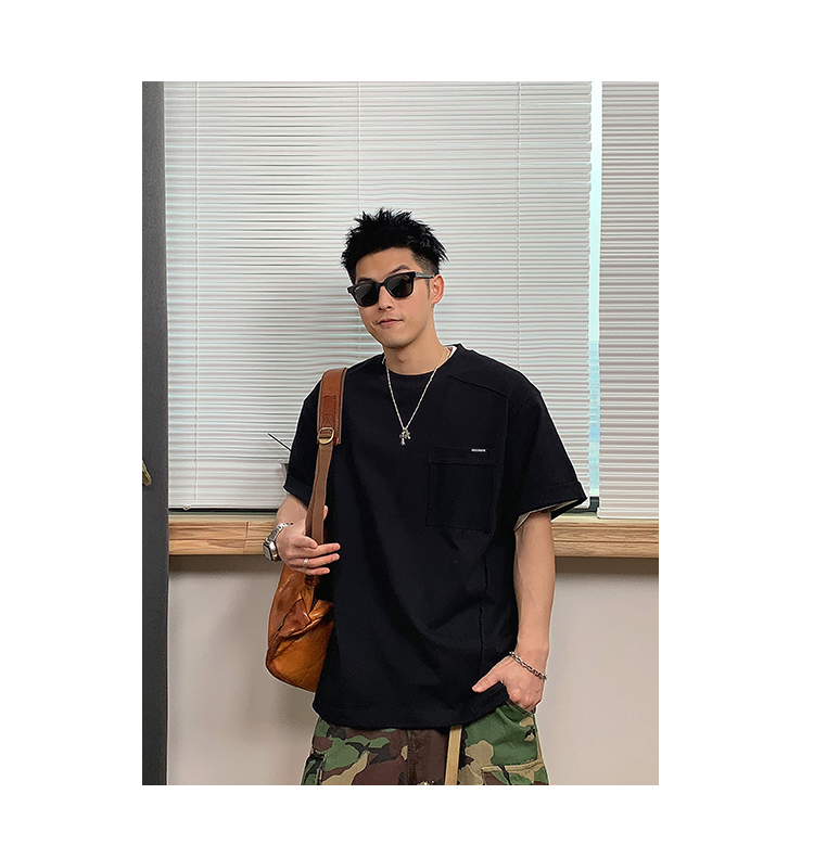 徐太浪复古拼接口袋短袖T恤男夏季薄款纯棉凉感缉明线设计感上衣