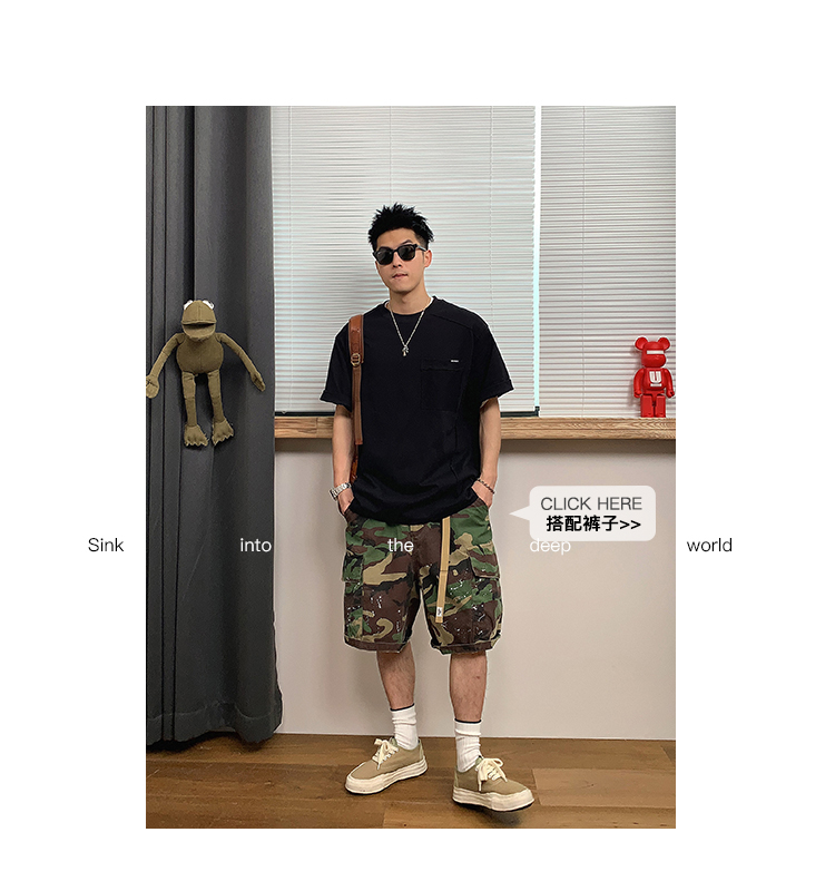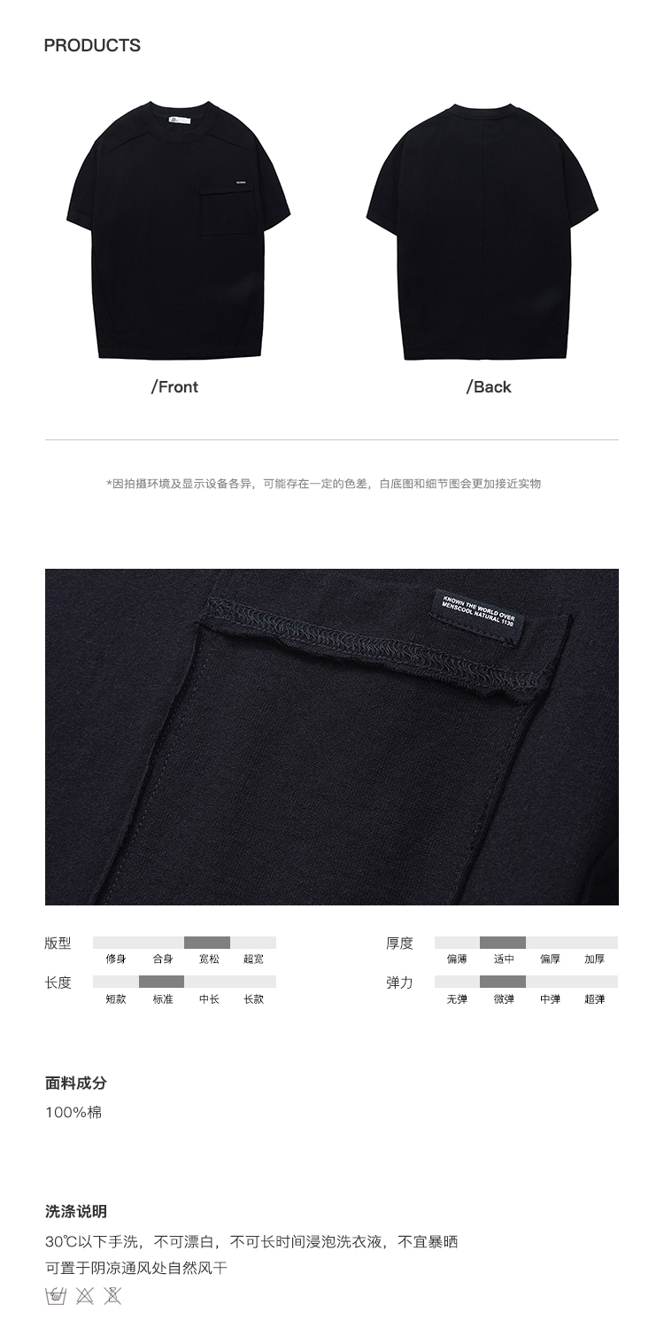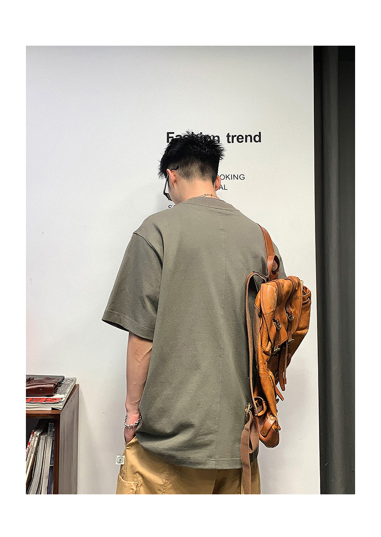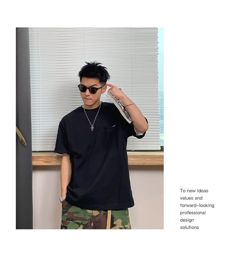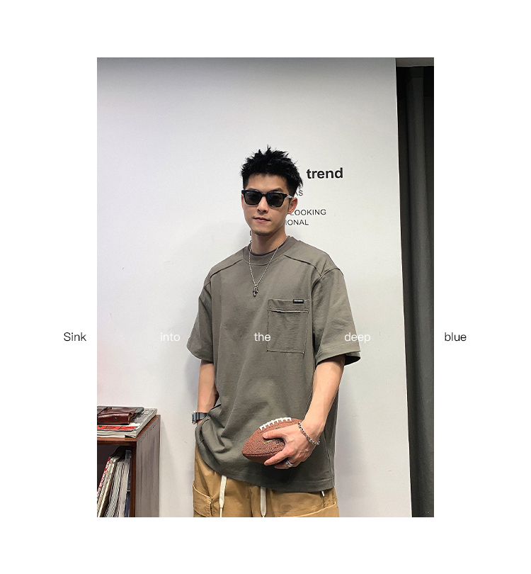 徐太浪复古拼接口袋短袖T恤男夏季薄款纯棉凉感缉明线设计感上衣