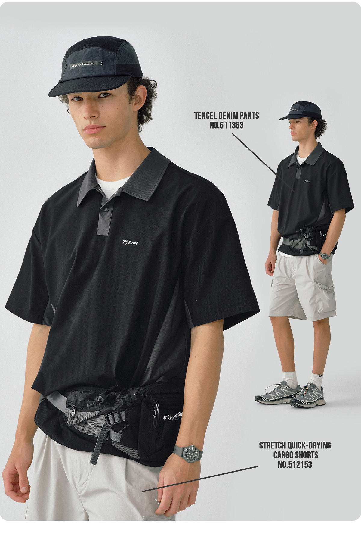 714street四面弹拼接凉感POLO衫男夏季户外轻薄速干衣防晒短袖T恤