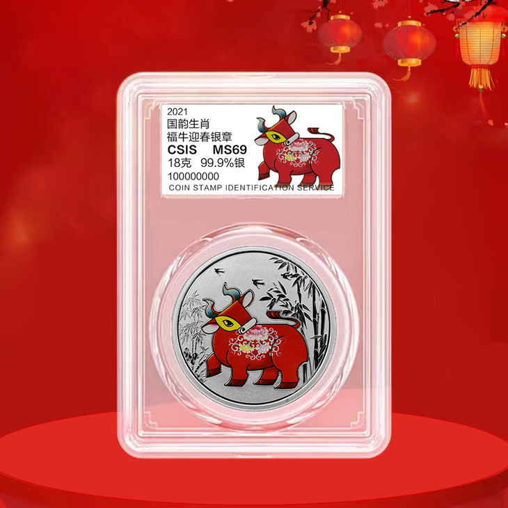 牛年彩色银章 含纯银18克 封装评级 带礼盒