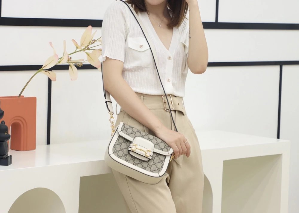 搭配同色的棕色皮革肩带,呈现出低调优雅气息