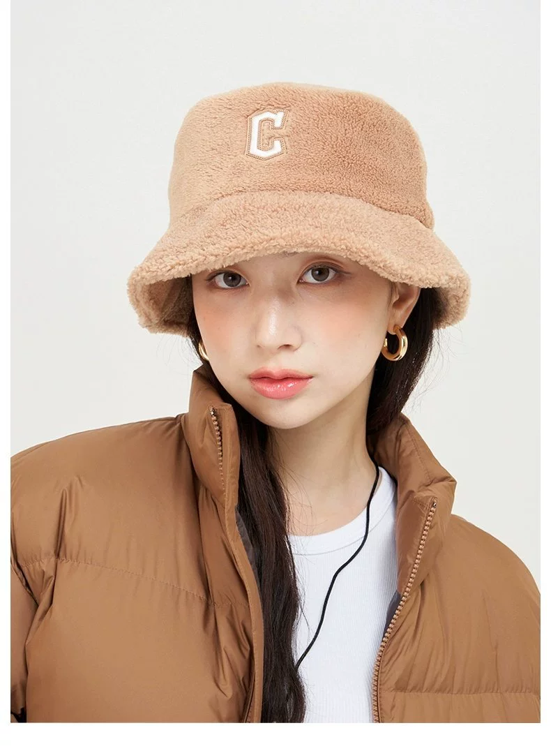 MLB仿羊羔绒渔夫帽(适合头围:头围57cm):奶油色-B/奶油色-NY/浅驼色/卡其色