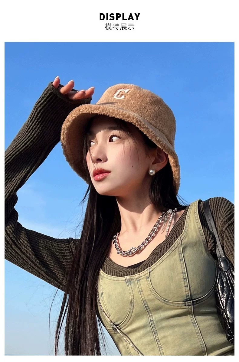 【材质】MLB仿羊羔绒渔夫帽材质:棉