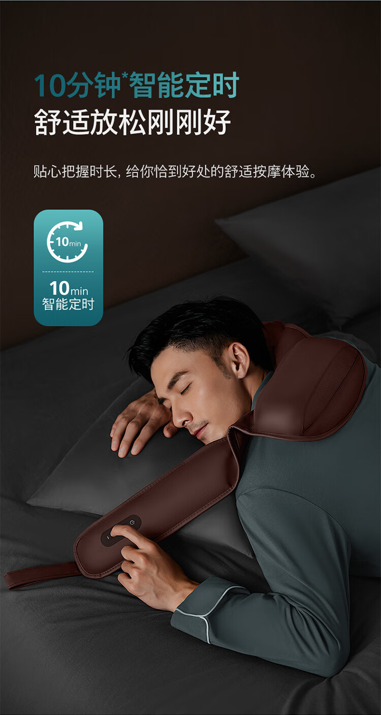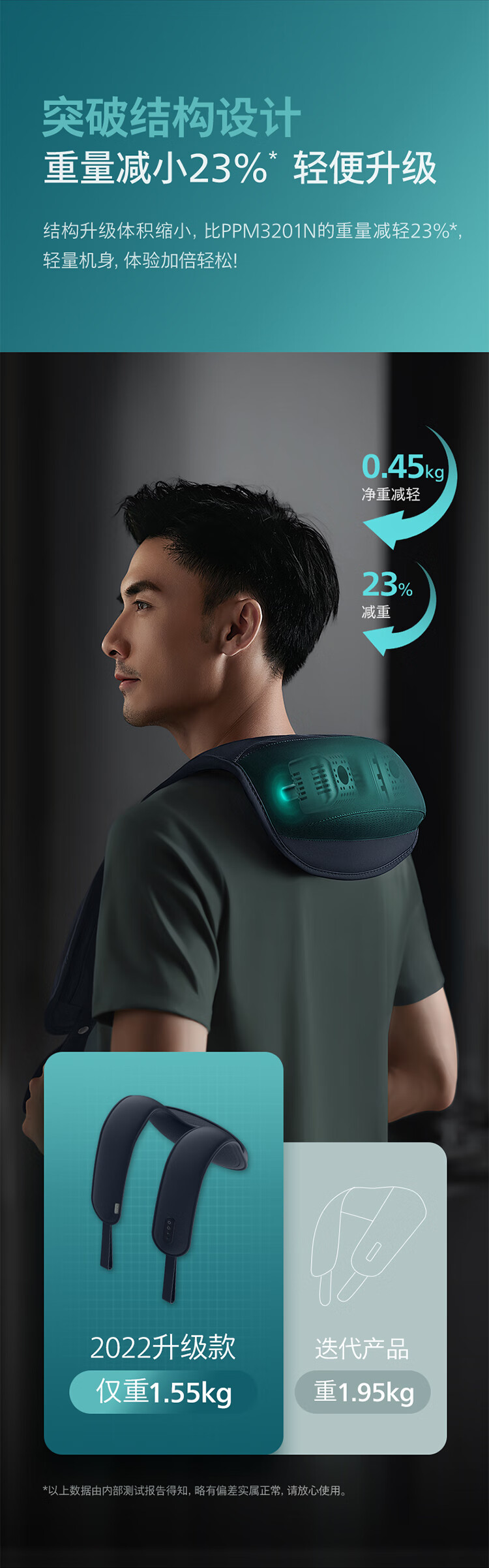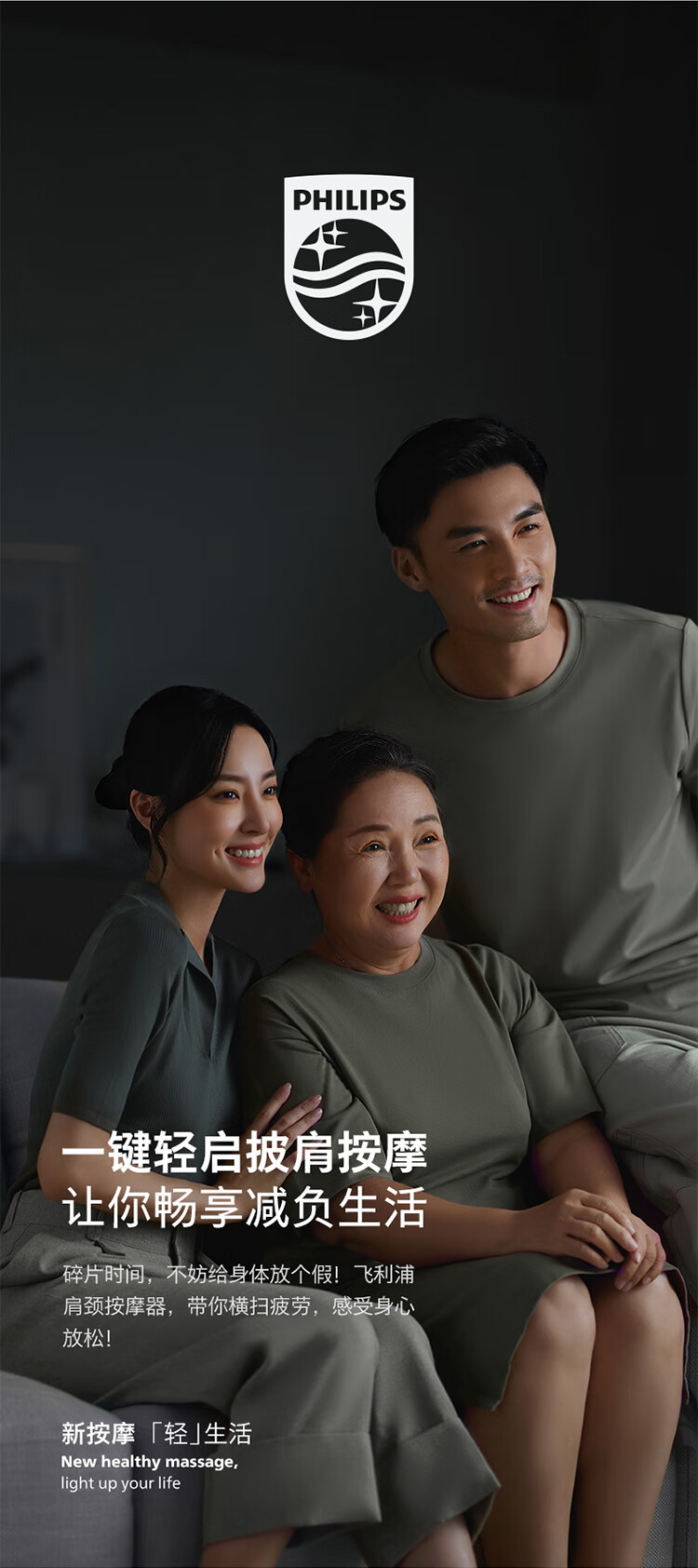 飞利浦(PHILIPS)肩部按摩器 按摩披肩 颈部背部肩颈热敷一体捶背器力度可调节颈椎按摩仪 中秋节礼物送父母 送长辈 PPM3201N按摩披肩( 灰色)