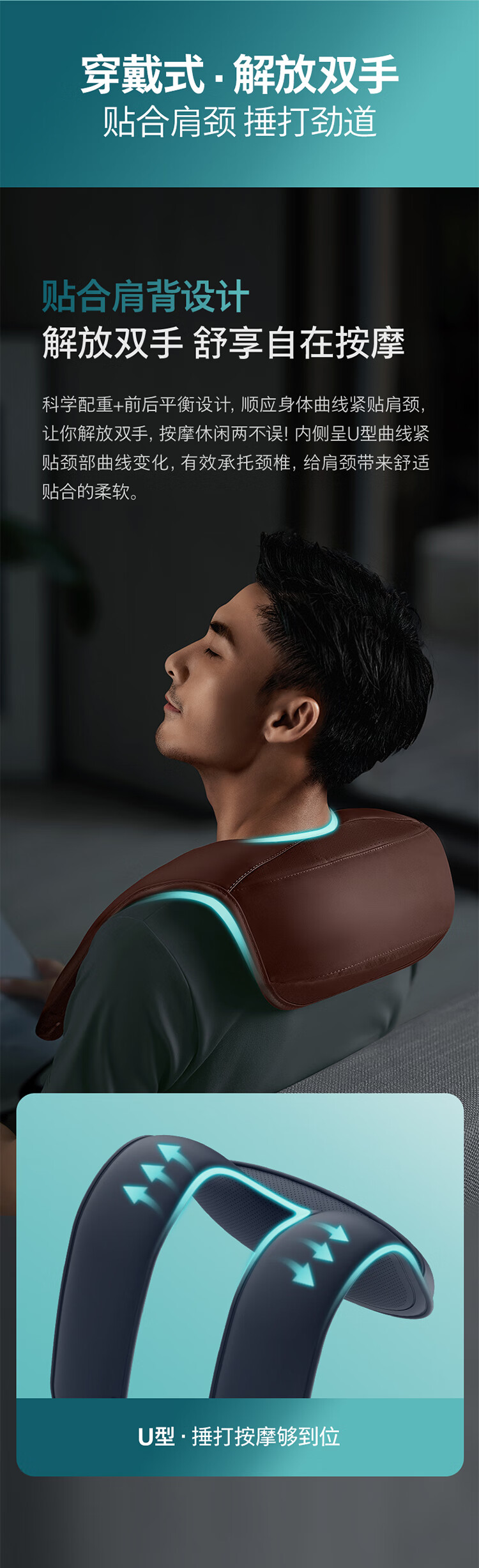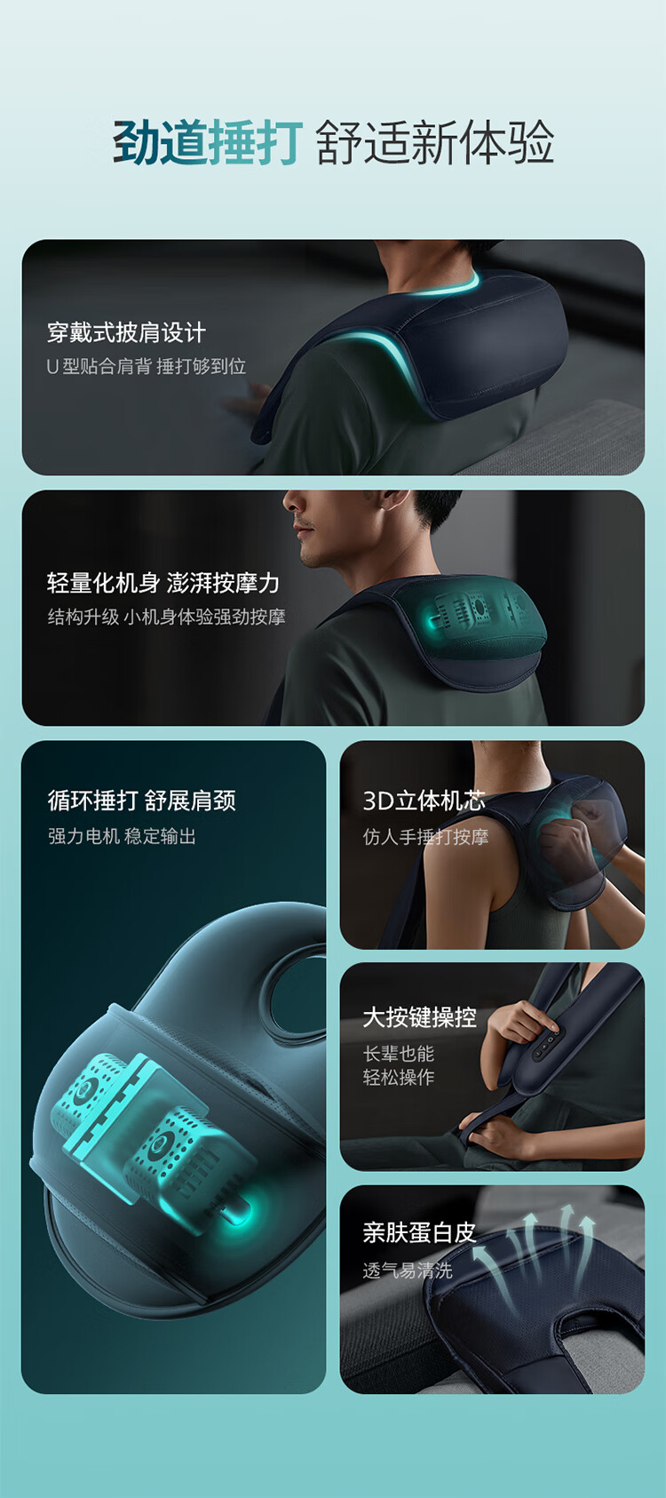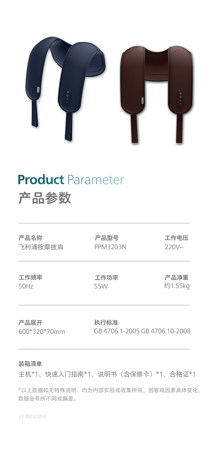 飞利浦(PHILIPS)肩部按摩器 按摩披肩 颈部背部肩颈热敷一体捶背器力度可调节颈椎按摩仪 中秋节礼物送父母 送长辈 PPM3201N按摩披肩( 灰色)