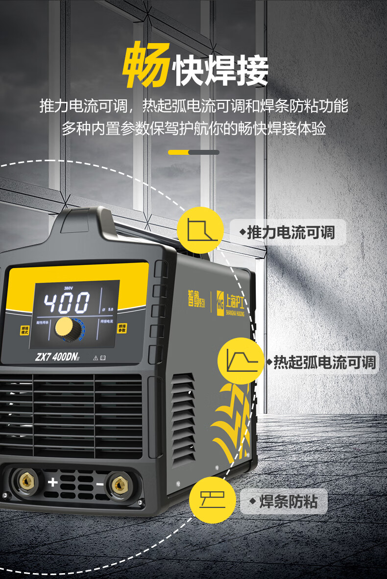 上海沪工 ZX7-400DN III电焊机5.0焊条长焊 220v 380v 智能双电压两用全自动逆变工业极电焊机