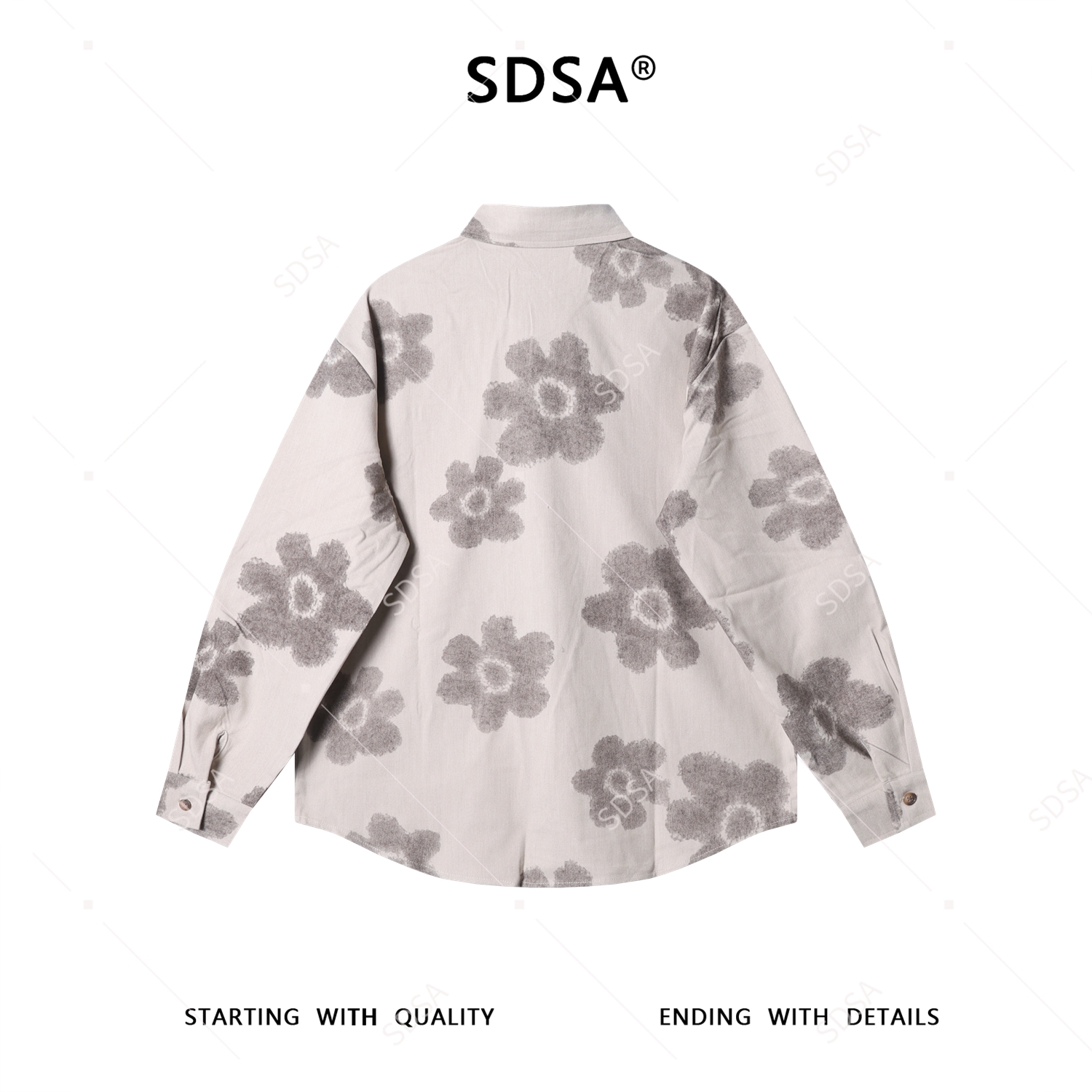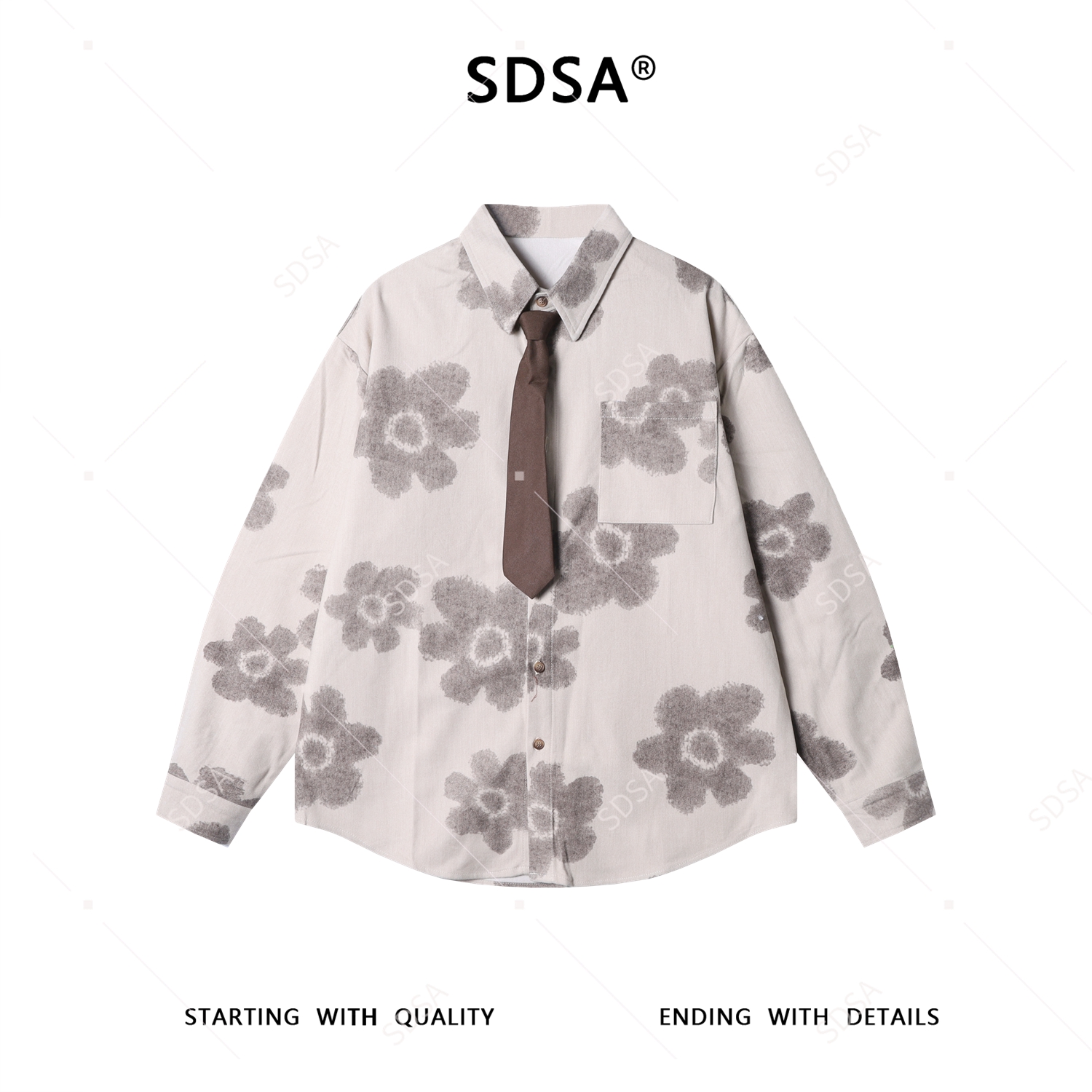 2741SDSA男士秋冬新款痞帅男装潮牌撞色花朵印花翻领领带衬衫百搭时尚