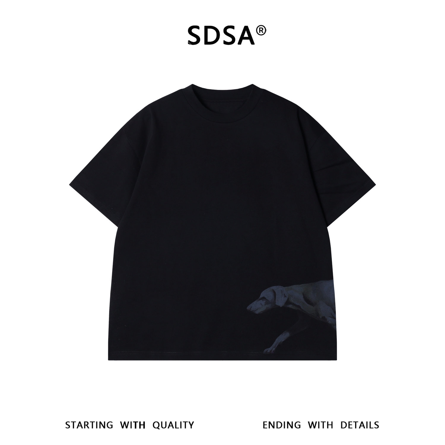 SDSA男装2026新款高贵轻奢小众设计动物印花圆领短袖T恤宽松百搭