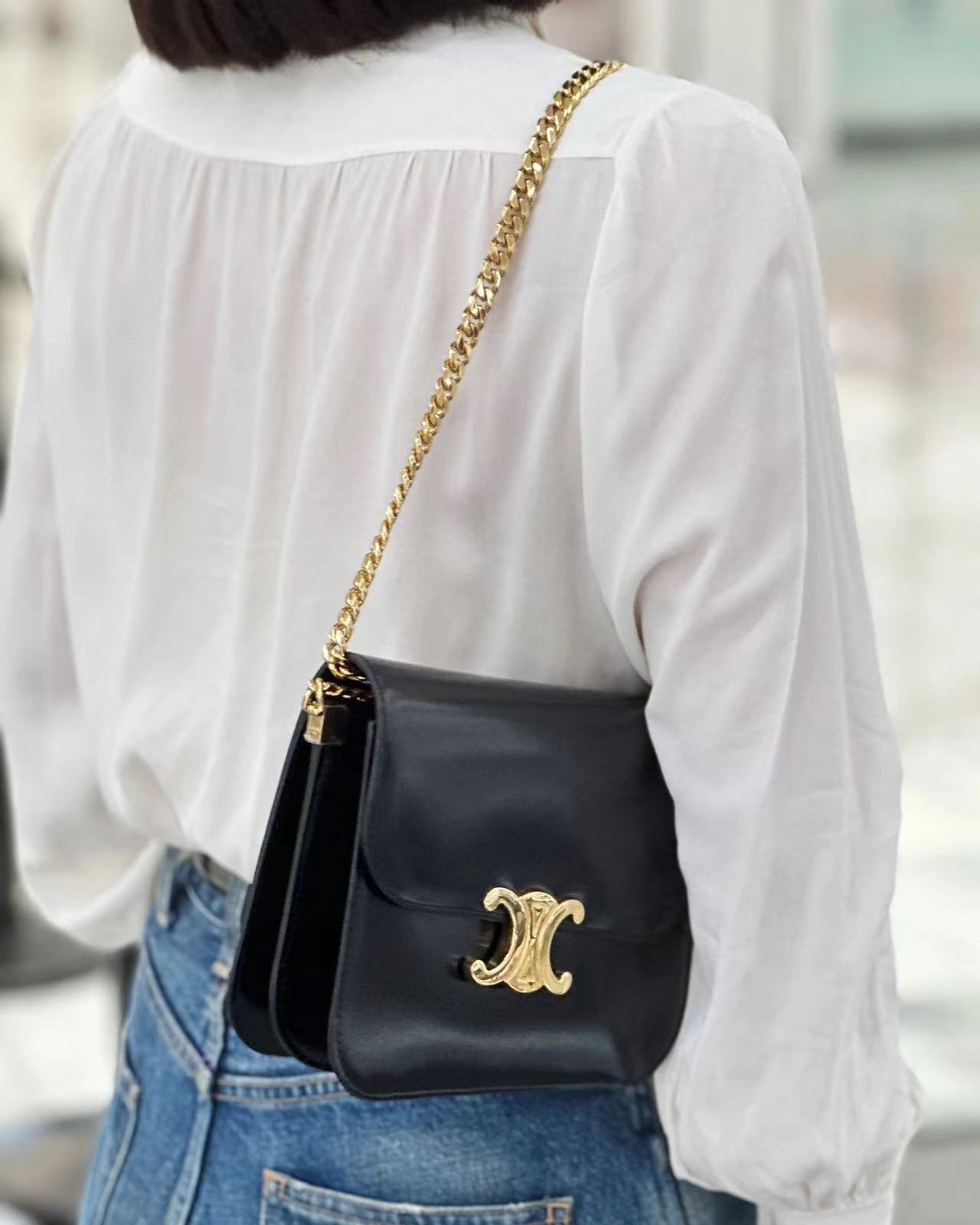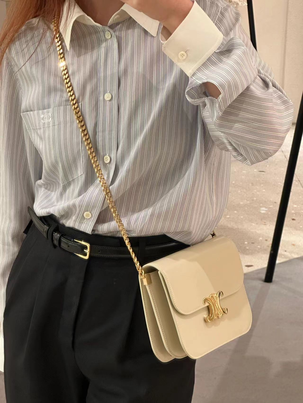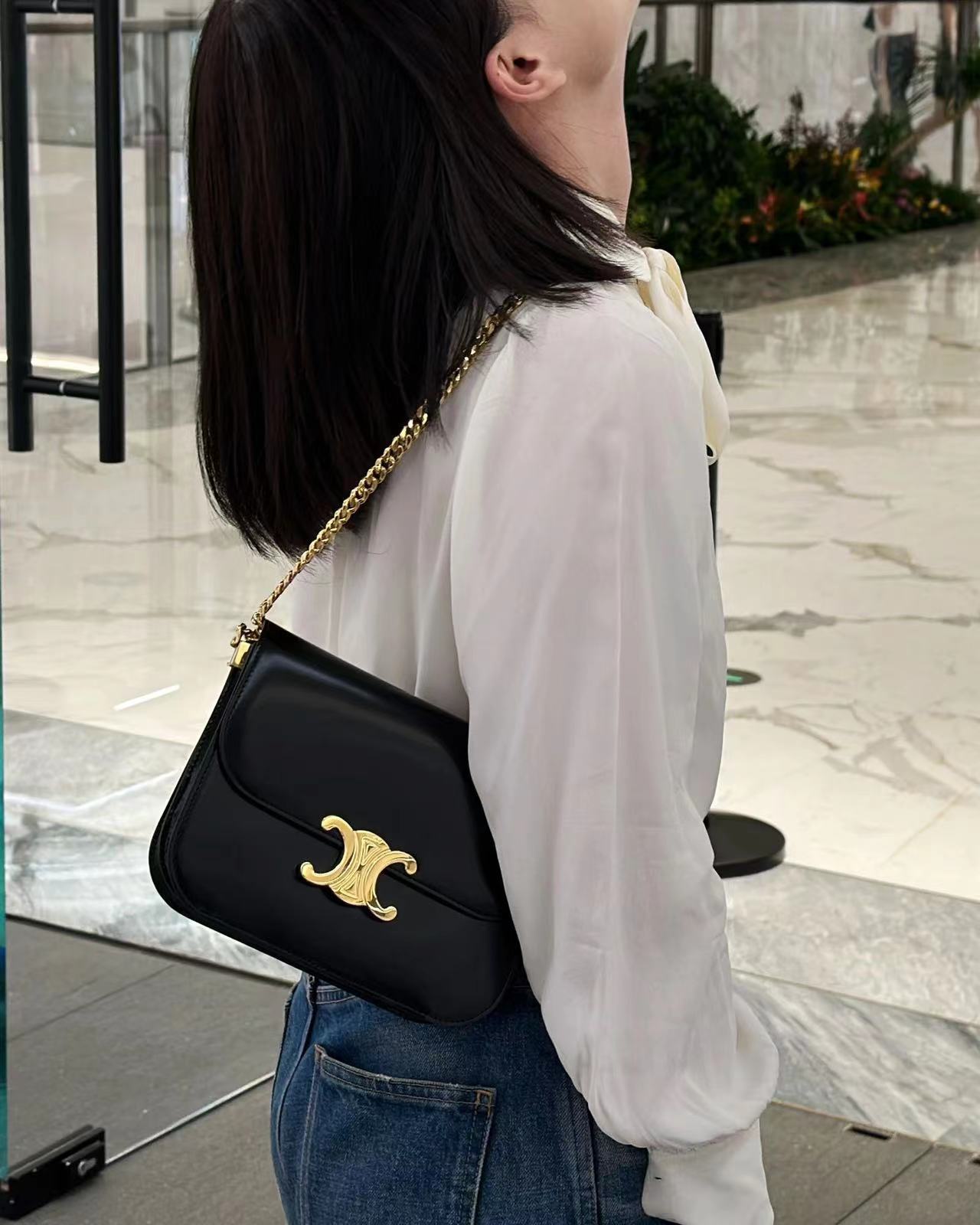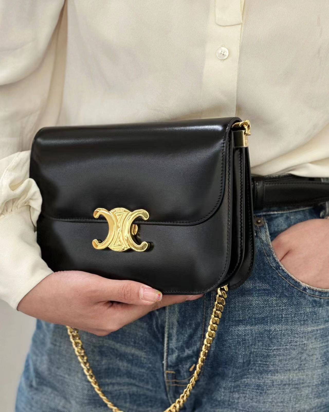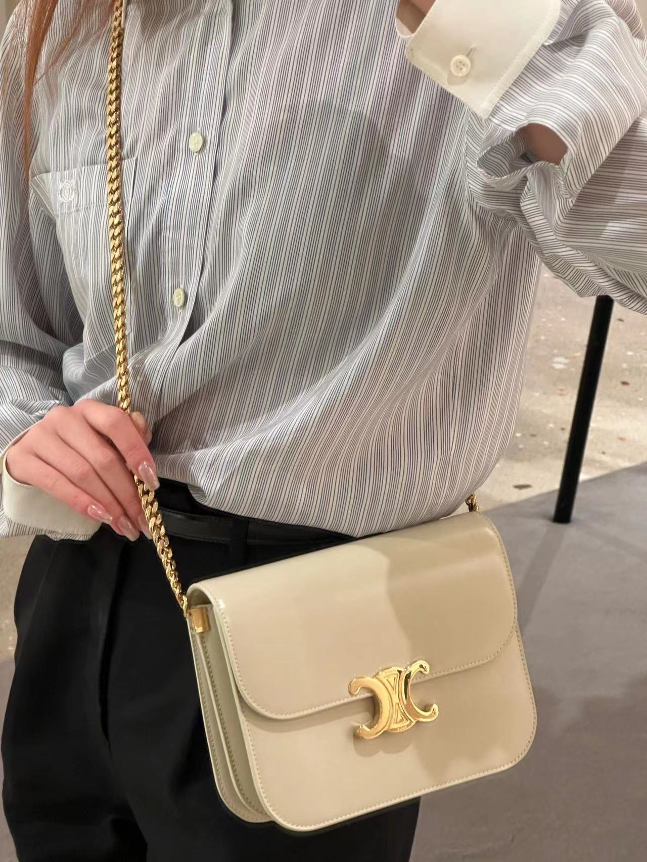 CELINE 23s秋冬新品|COLLEGE TRIOMPHE亮泽牛皮革链条手袋