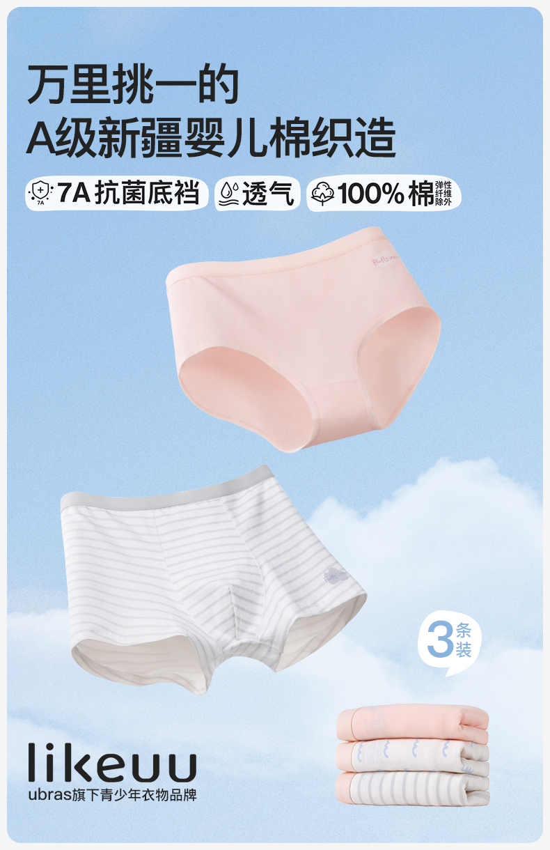 likeuu儿童新疆A类婴儿棉纯棉内裤(3条装)LC3251113