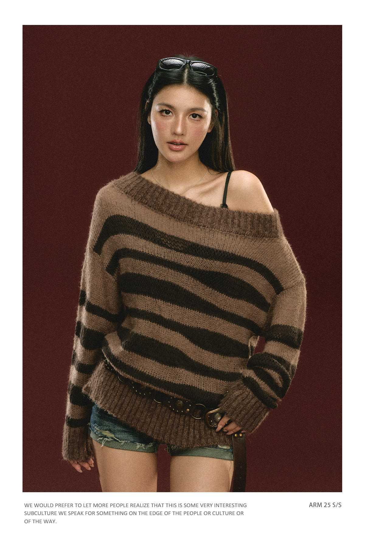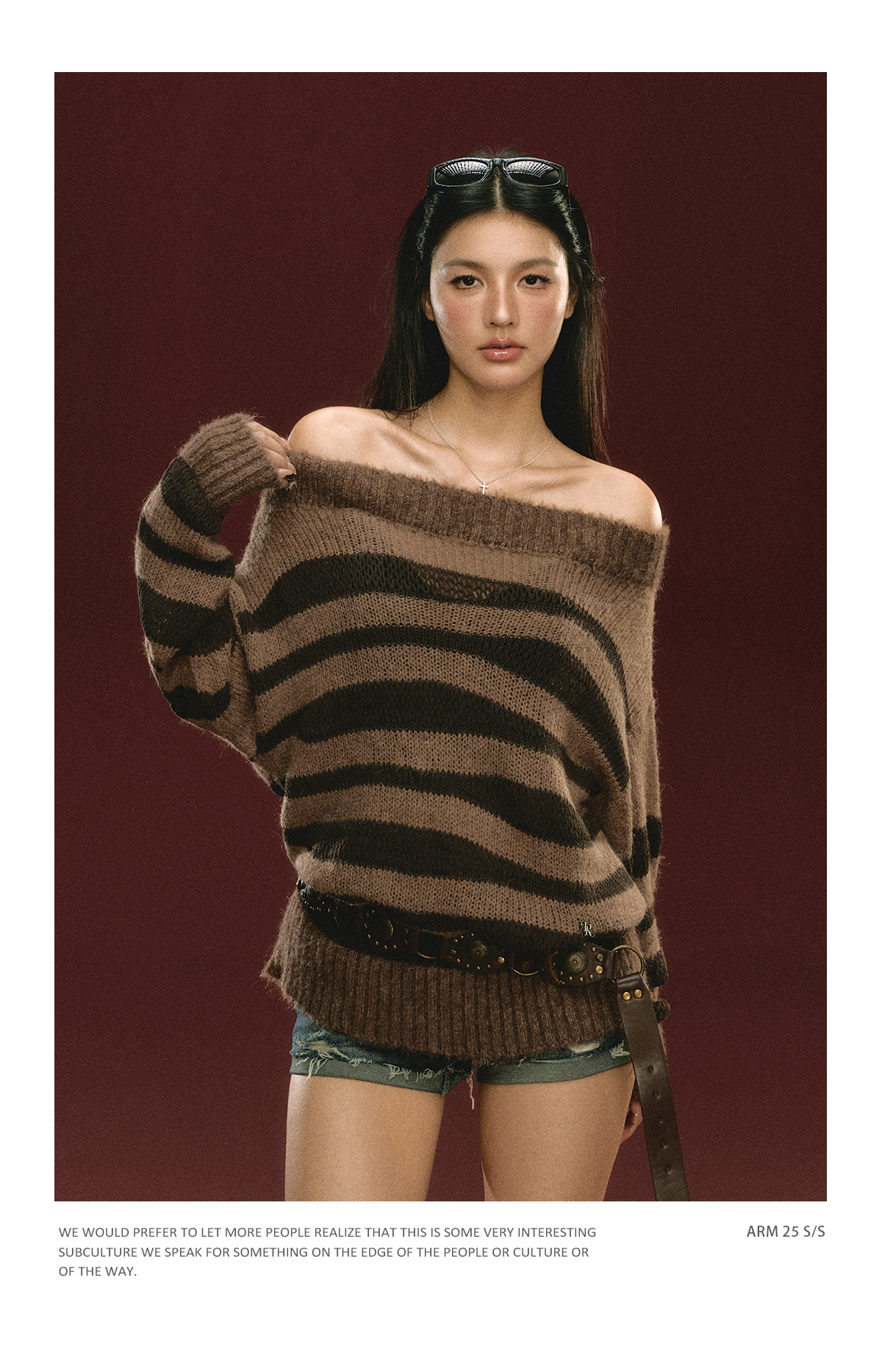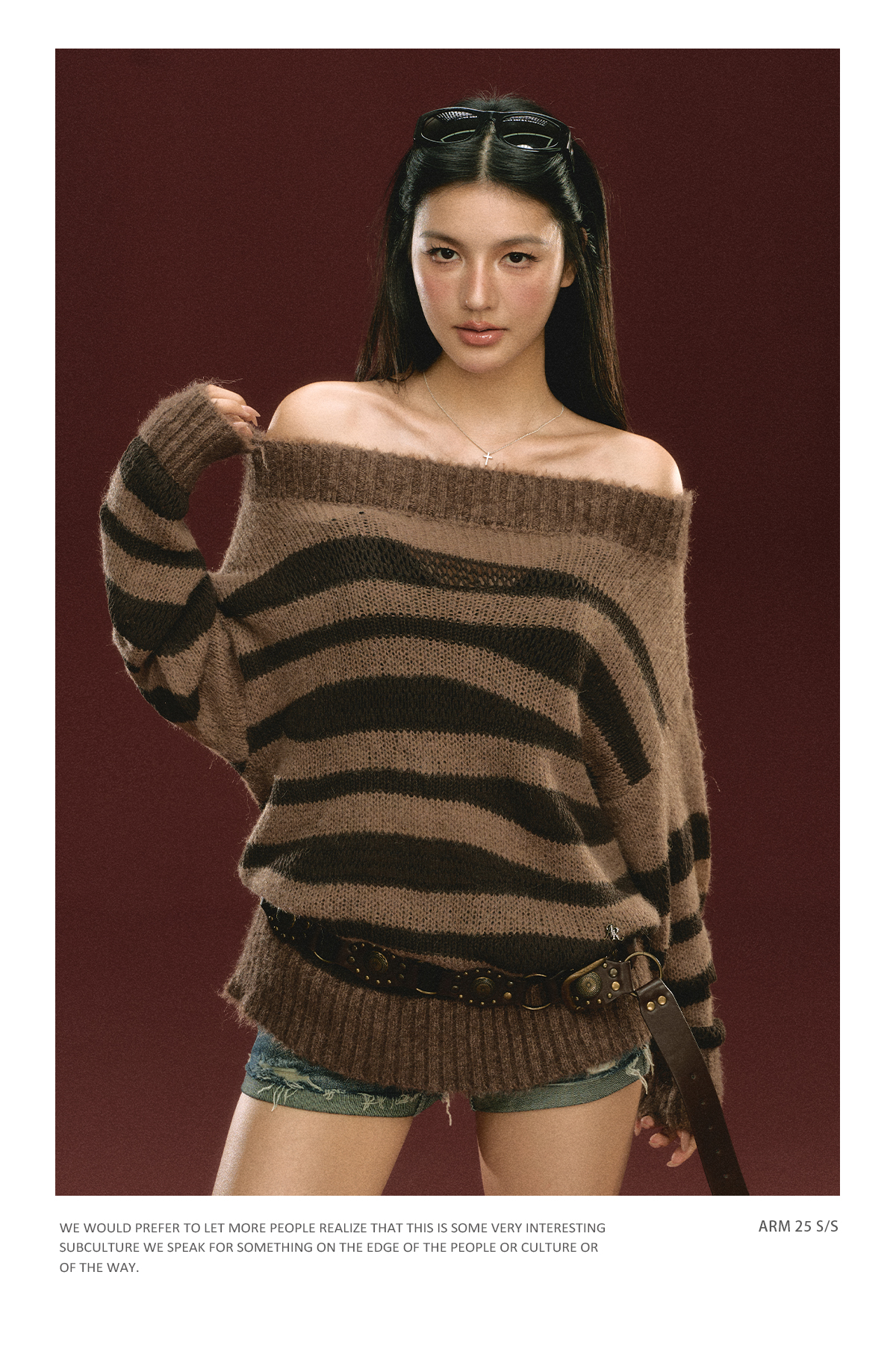 Ariseism美式复古高级感一字肩长袖针织衫女春季新款内搭打底上衣