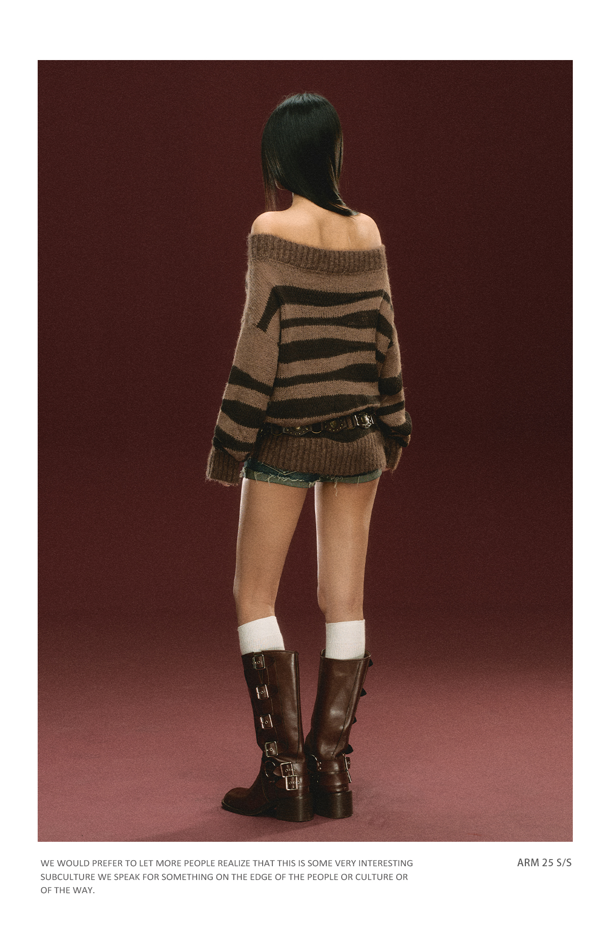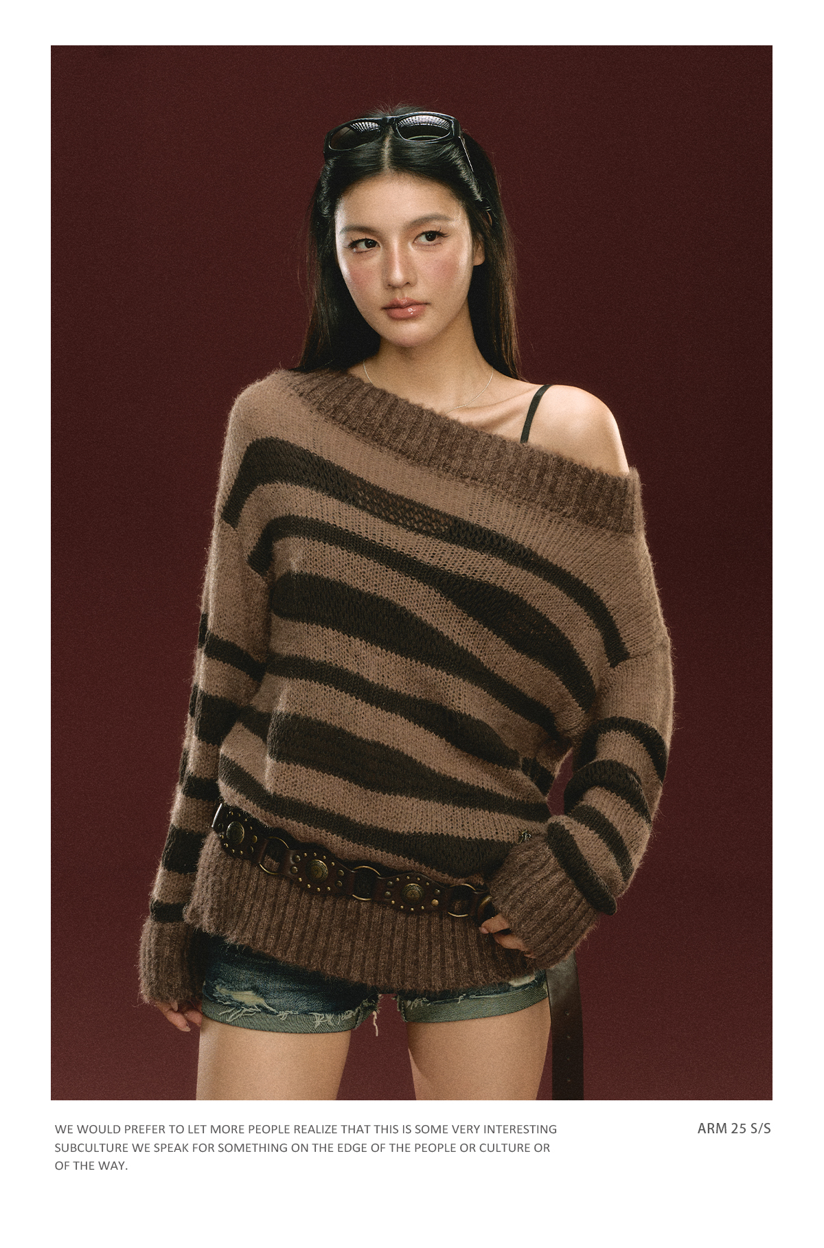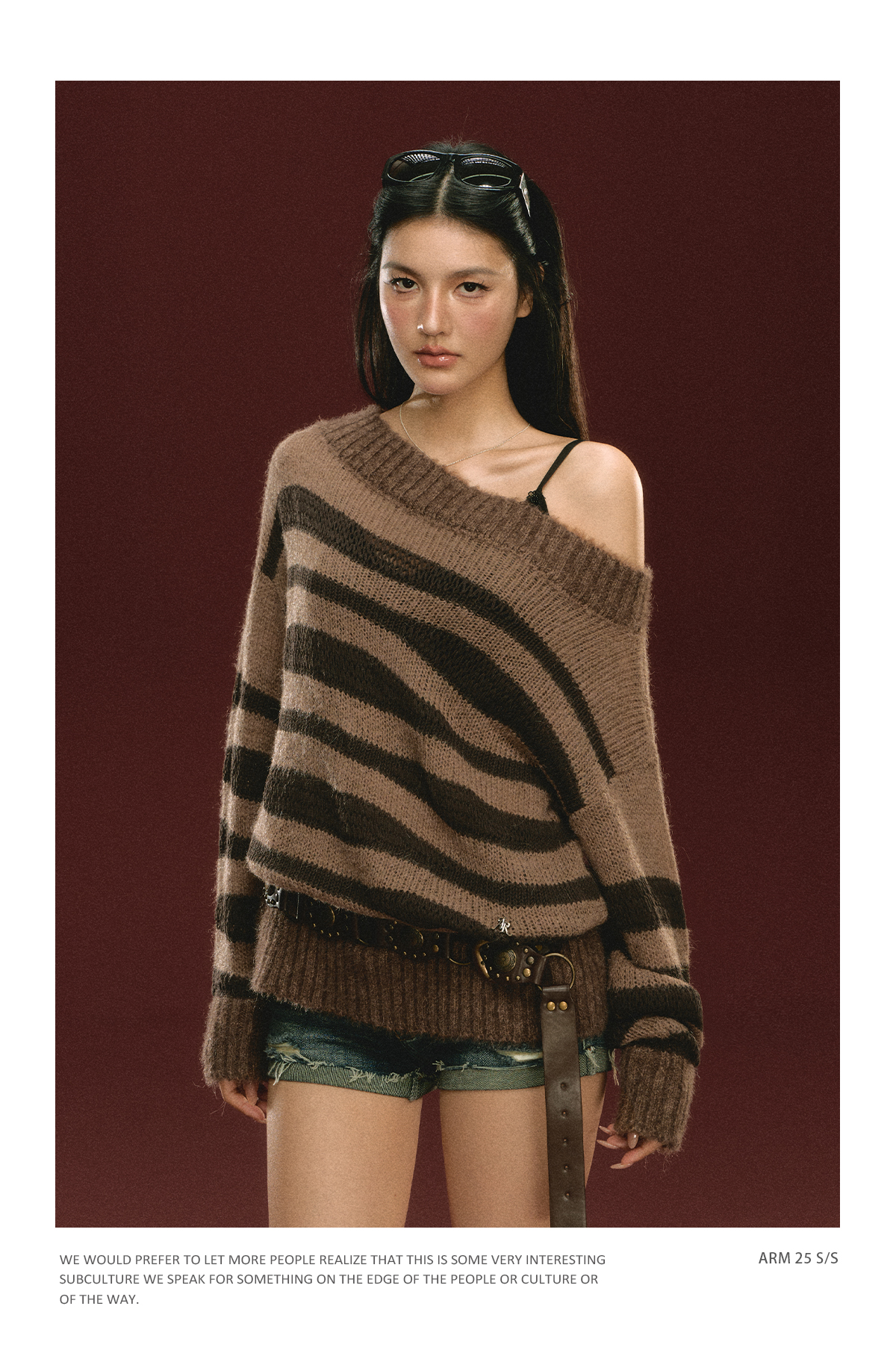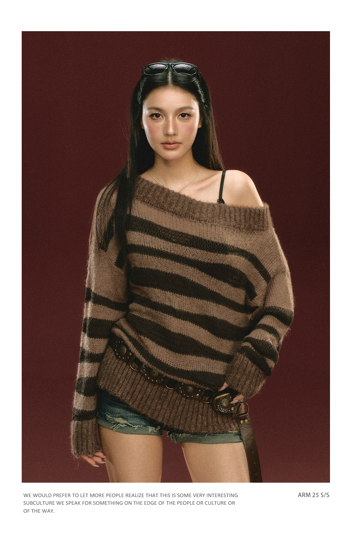 Ariseism美式复古高级感一字肩长袖针织衫女春季新款内搭打底上衣