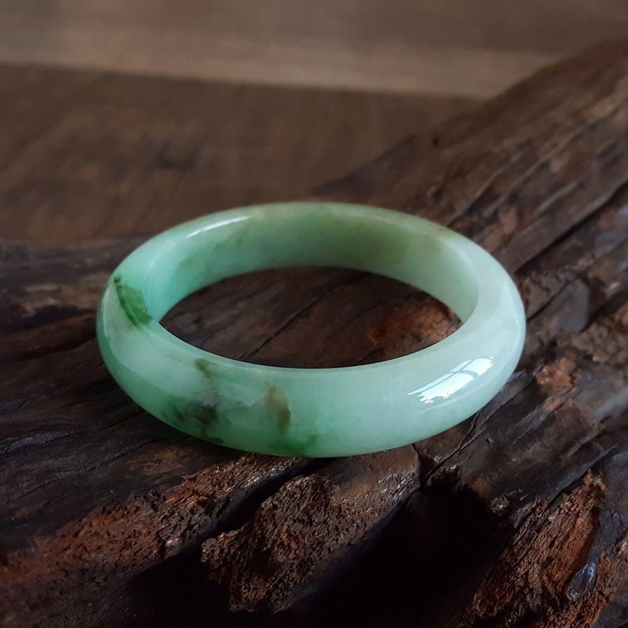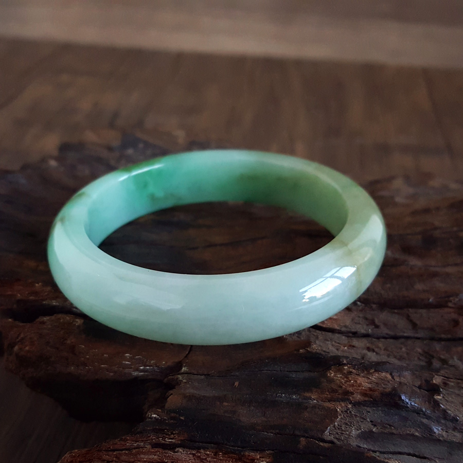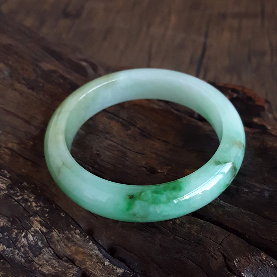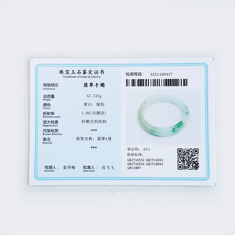 名称 | 天然正桩细腻飘绿飘黄(福、寿)糯种55号翡翠手镯 |